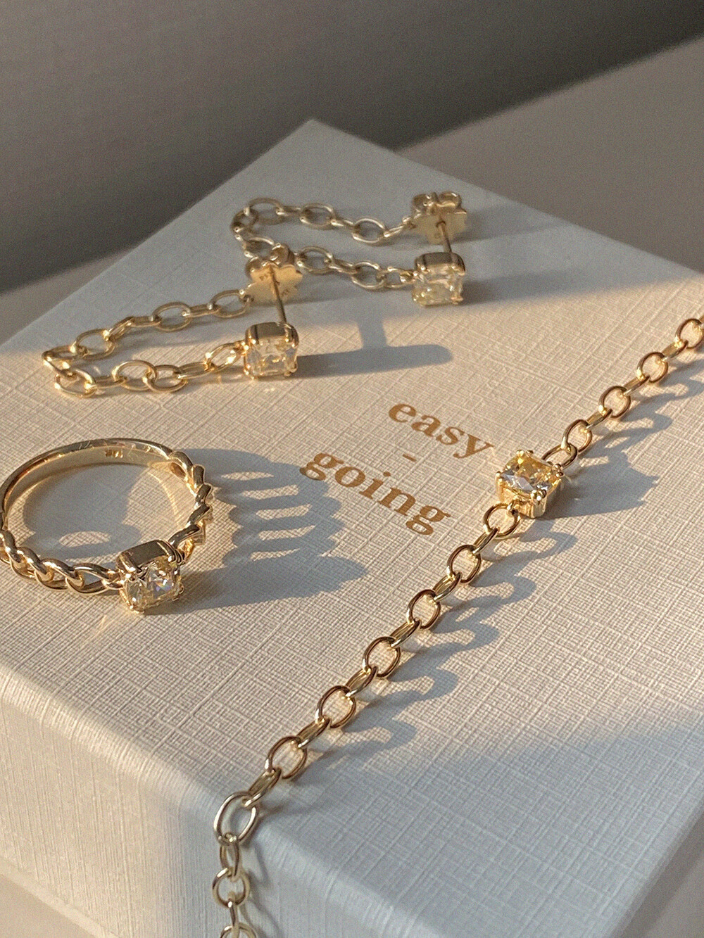 - 은은한 라이트옐로우 큐빅이라 실제로 더욱 고급스러운데요 끝에 딸랑이 참이나 붕어잠금 장식까지 퀄리티 좋고 세련된 디자인이라 착용하시면 어떤 룩이든 좀 더 우아하게 업그레이드 되실 거예요:)