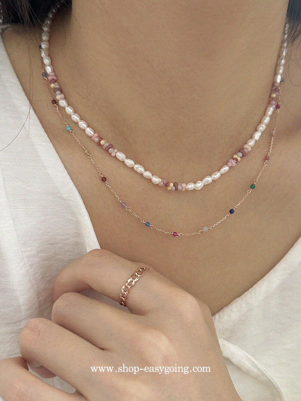천연석, 진주 : 소재 특성상 미세한 스크래치, 형태의 차이가 있을 수 있습니다. 세척액을 사용하지 마시고(진주:진주전용세척액 제외) 열과 염소성분에 노출되지 않도록 주의해주세요. 직사광선에 오랜시간 노출되면 손상될 수 있습니다 (사우나, 샤워시 절대 착용하지 마시고 제품 착용 후에는 마른 천으로 닦아 보관해주세요) / 진주 비드, 원석 비드 목걸이 중 와이어로 제작한 제품들의 와이어 마감 부속품은 14k gold 가 아닙니다.(공장에 따라 9k, 혹은 신주에 도금 / SR잠금+에이바+오링 = 14k gold)