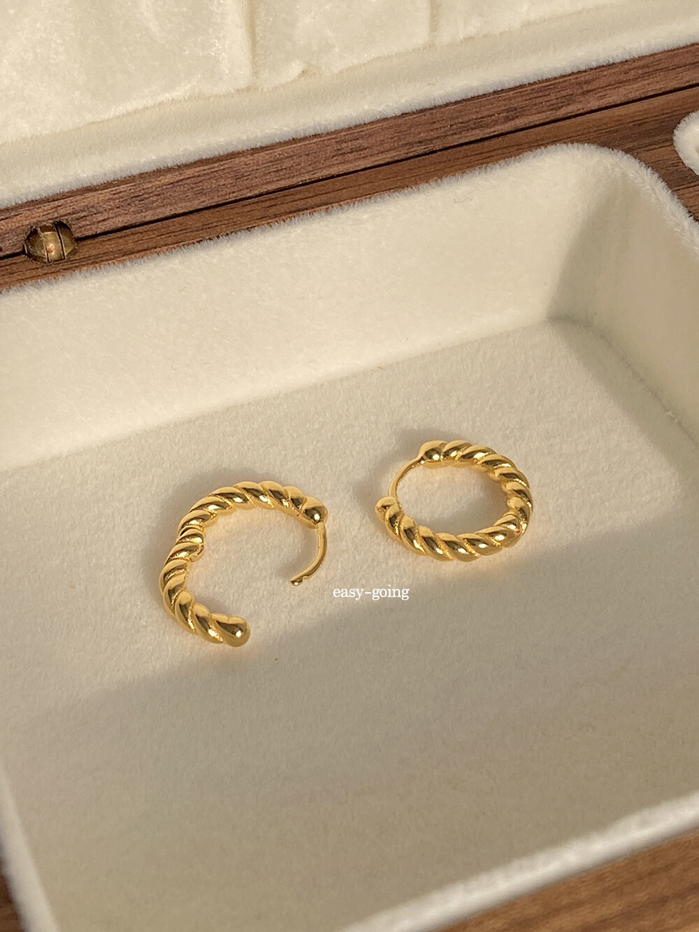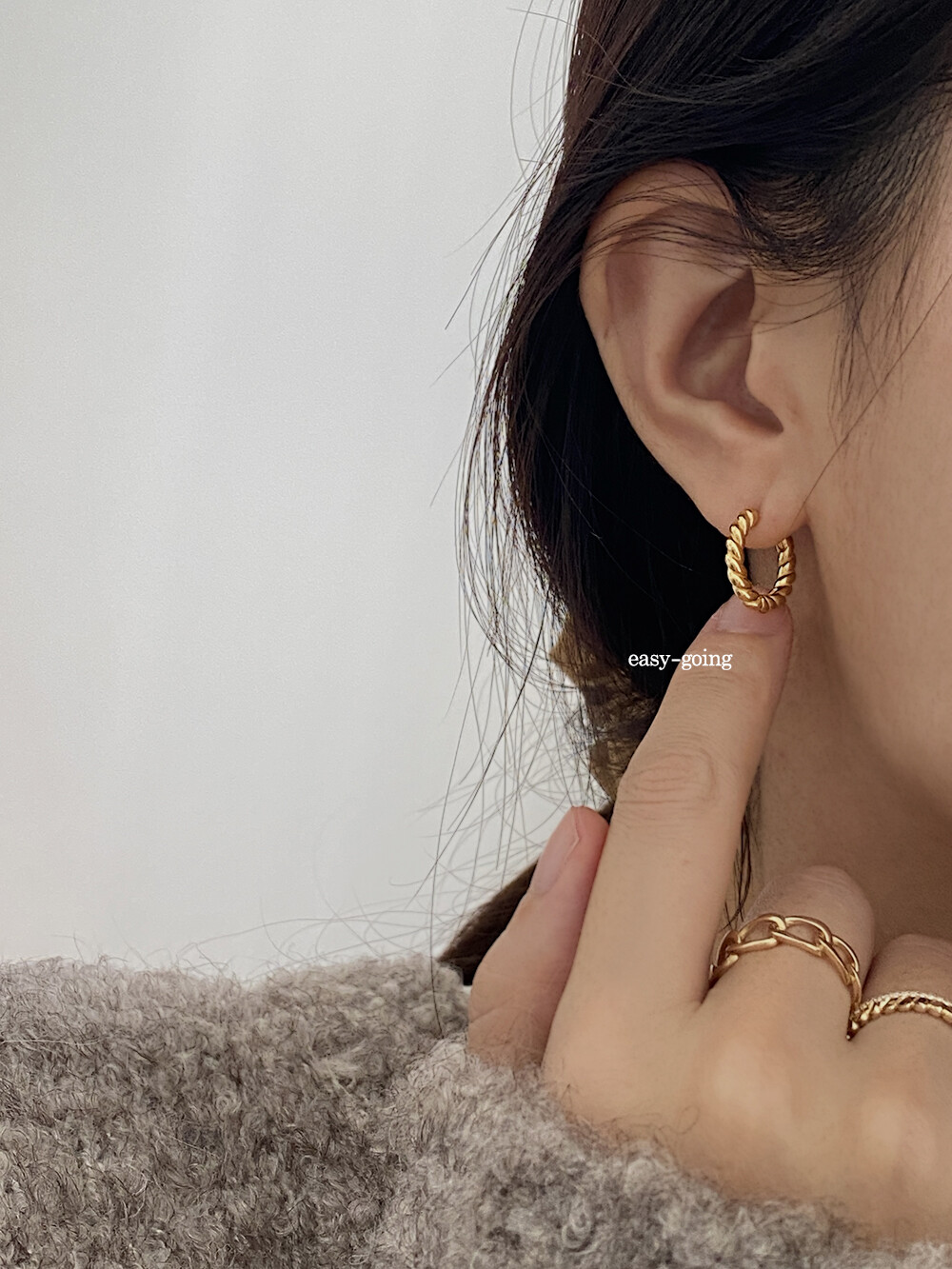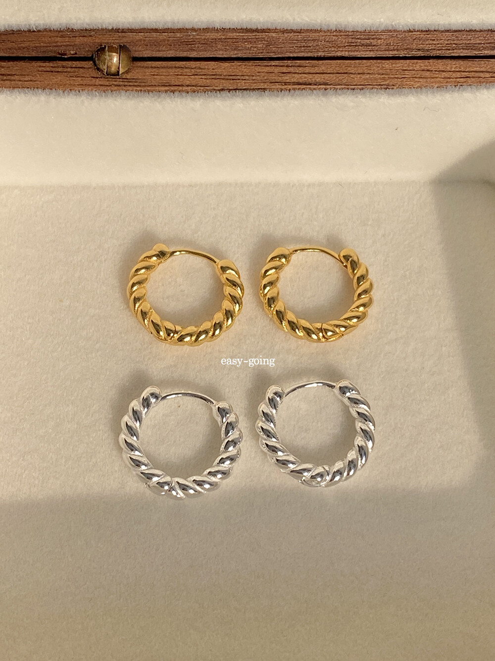 금, 순은의 특성상 강하게 힘을 가하면 침 부분이 구부러 질 수 있으므로 위치를 잘 맞춘 후 가볍게 눌러 착용해주세요.