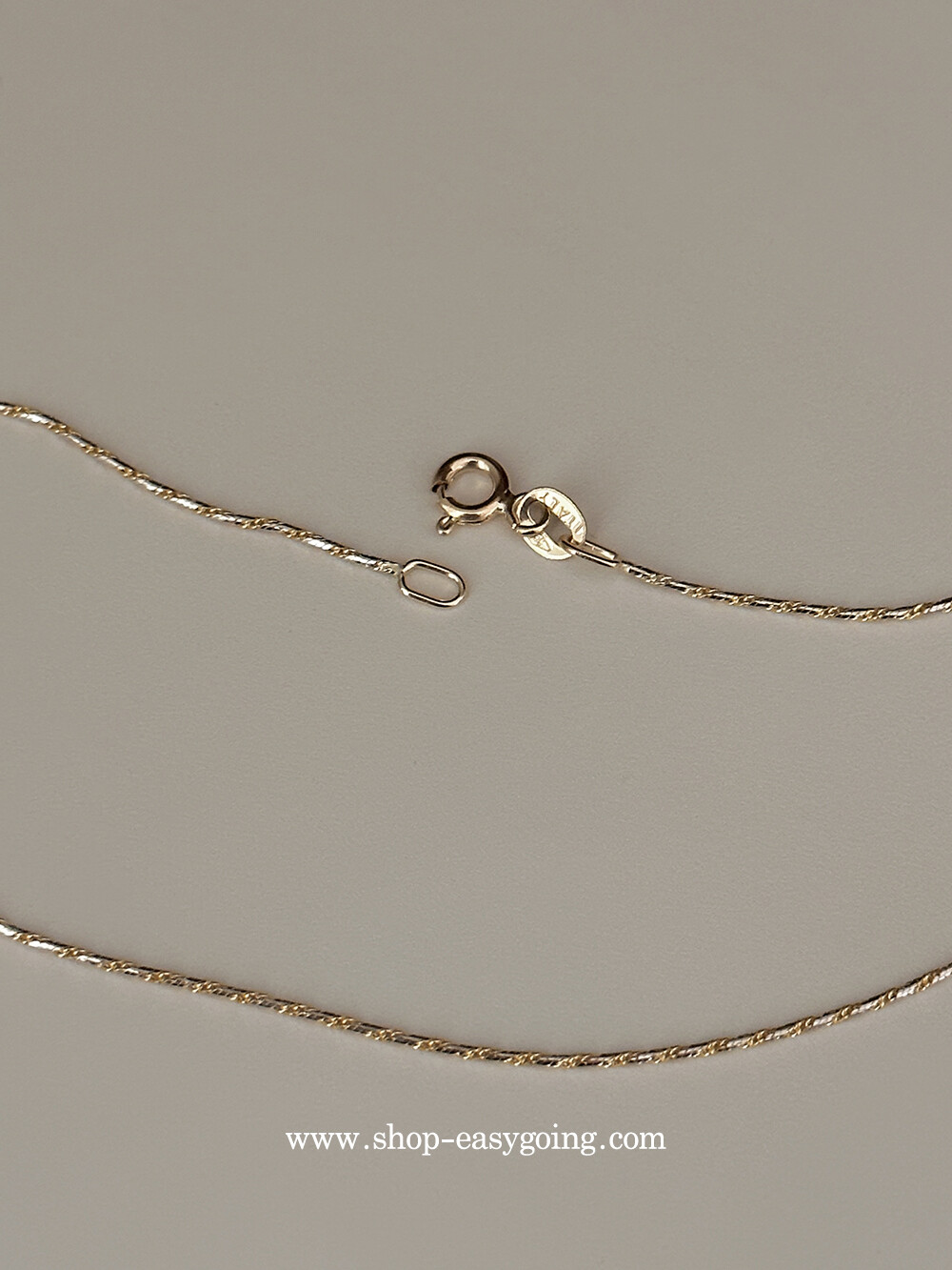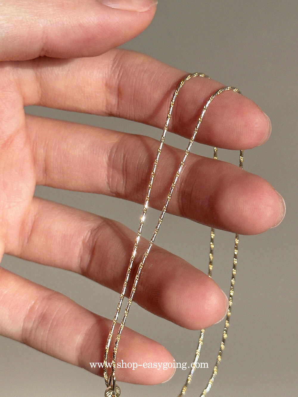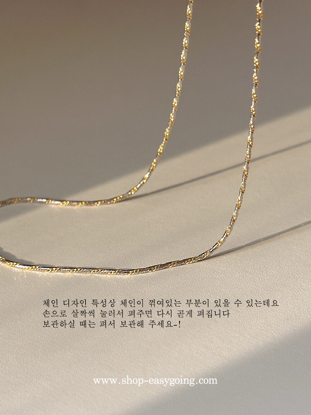 - 꺾임에 약한 디자인이며, 얇은 실목걸이라 데일리 착용보다는 외출 시에 잠깐씩 착용해 주시고(취침 시 착용X) 목걸이는 꼭 펴서 보관해 주세요-!