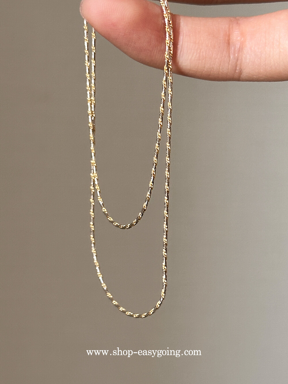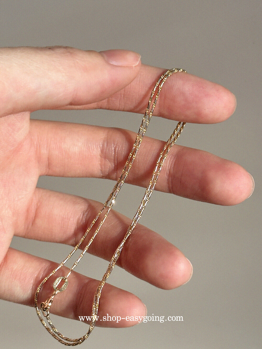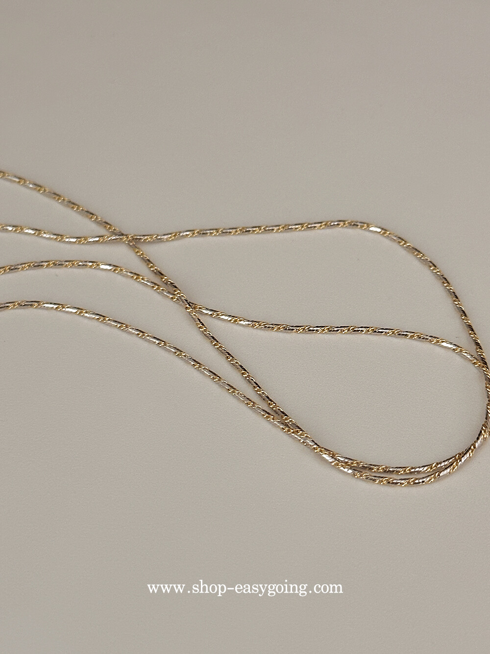 - 꺾임에 약한 디자인이며, 얇은 실목걸이라 데일리 착용보다는 외출 시에 잠깐씩 착용해 주시고(취침 시 착용X) 목걸이는 꼭 펴서 보관해 주세요-!