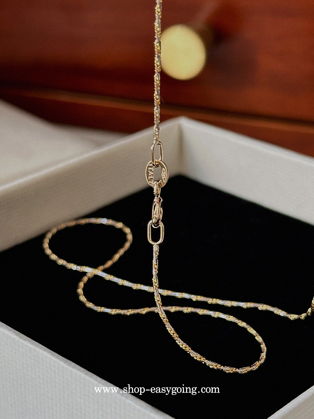 14k,18k gold 및 귀금속 : 금은 열에 약하고 무른편에 속하는 소재이므로 제품관리시 유의해 주세요. 특히 얇은 체인은 힘에 의해 끊어 질 수 있습니다 이 부분은 a/s가 불가하니 착용시 조심해 주세요. 또한 변함없이 착용이 가능한 소재이지만 겉면의 스크레치, 염소성분, 염분에 의해 광택이 사라지고 탁해질 수 있습니다. 초음파 세척이나 금세척으로 관리해주시면 광택을 오래 유지하실 수 있으며, 벗어 놓을 때는 마른 천으로 닦고 파우치에 담아 습하지 않은 곳에 보관하시는 게 좋습니다.