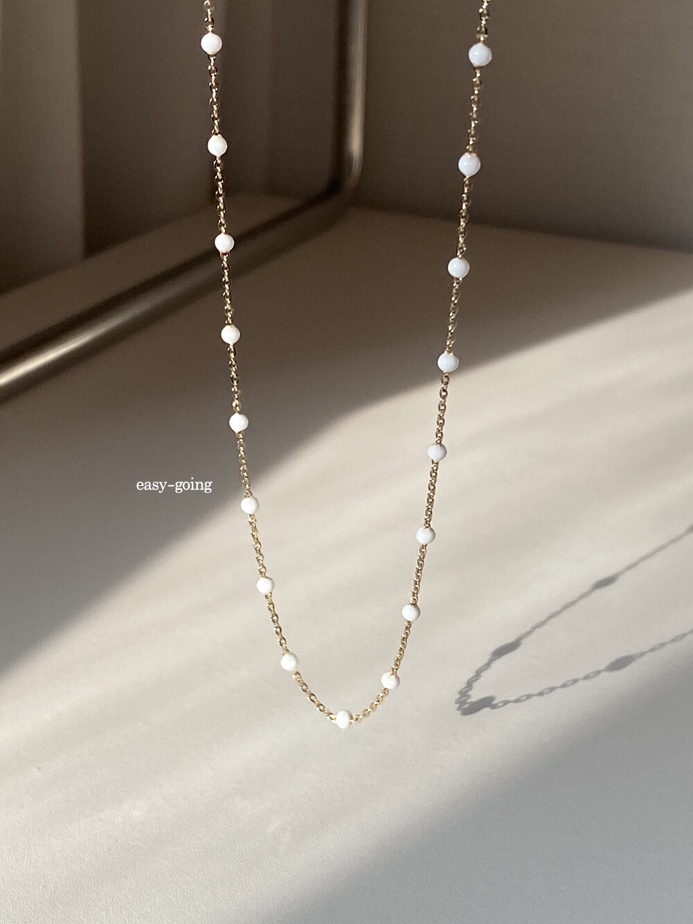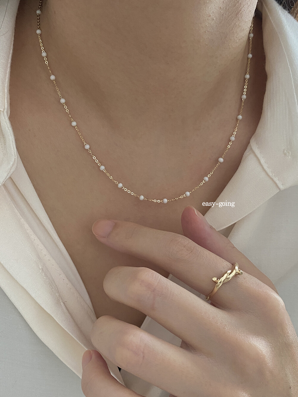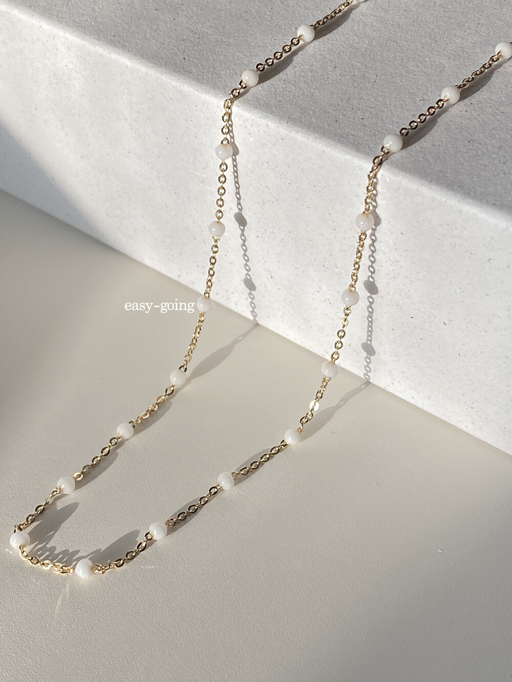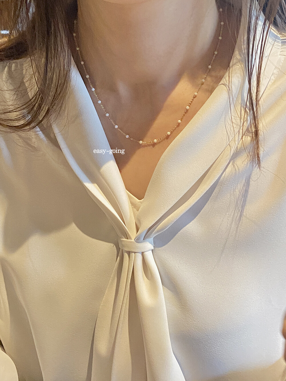 - 착용 제품은 목걸이: 14k 골드 - 화이트/ 42cm(40영고리)