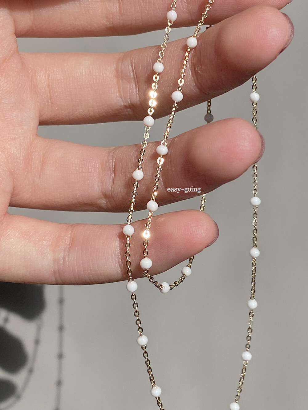 - 반짝임이 예쁜 3푼 함마체인이라 착용했을 때 더욱 고급스러워 보였고요 붕어잠금으로 좀 더 튼튼하게 마무리 했어요