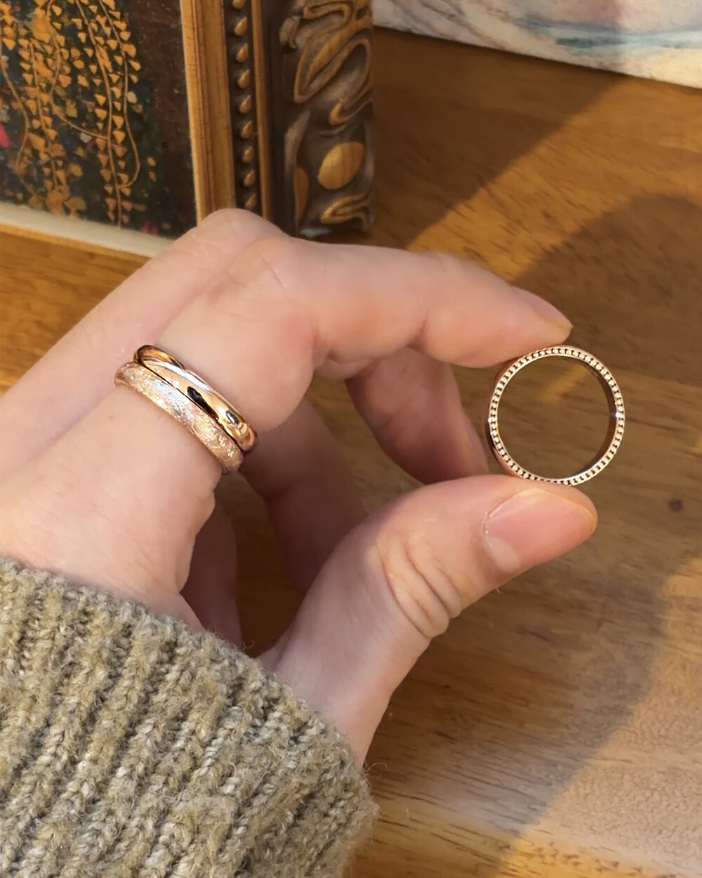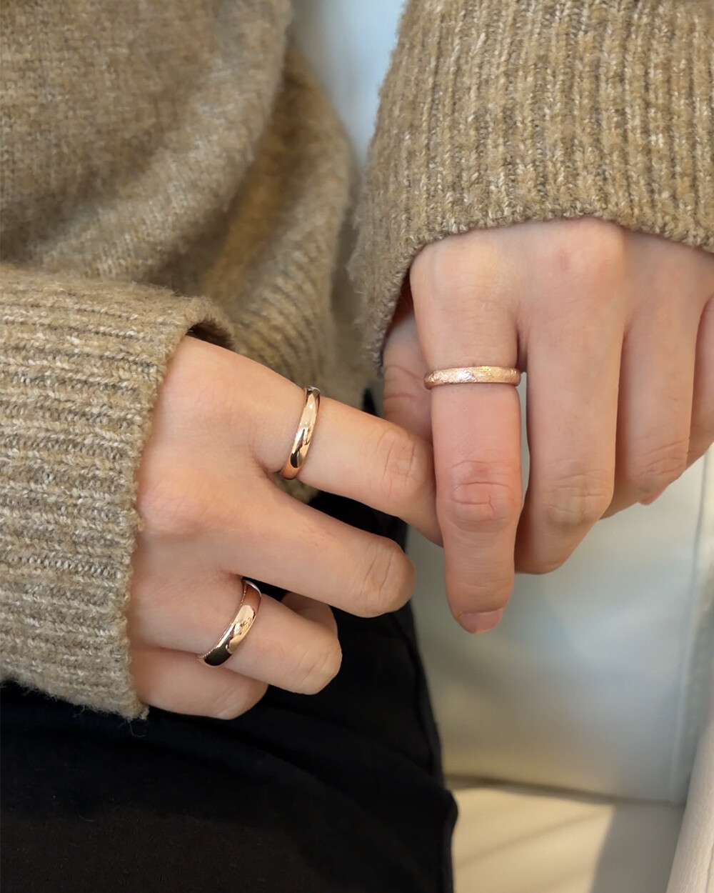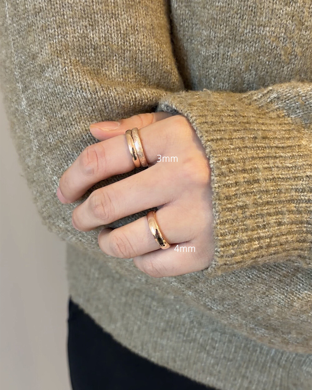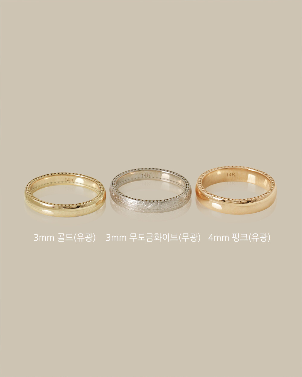 - 매끈한 유광, 빈티지한 느낌의 무광(스지) 두가지 스타일이라 같이 레이어드 하셔도 정말 예쁘고요 3mm, 4mm 두가지 사이즈라 깔끔한 커플링으로 맞추셔도 좋아요♡