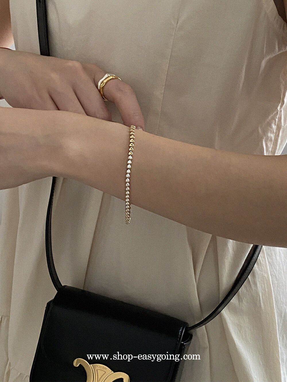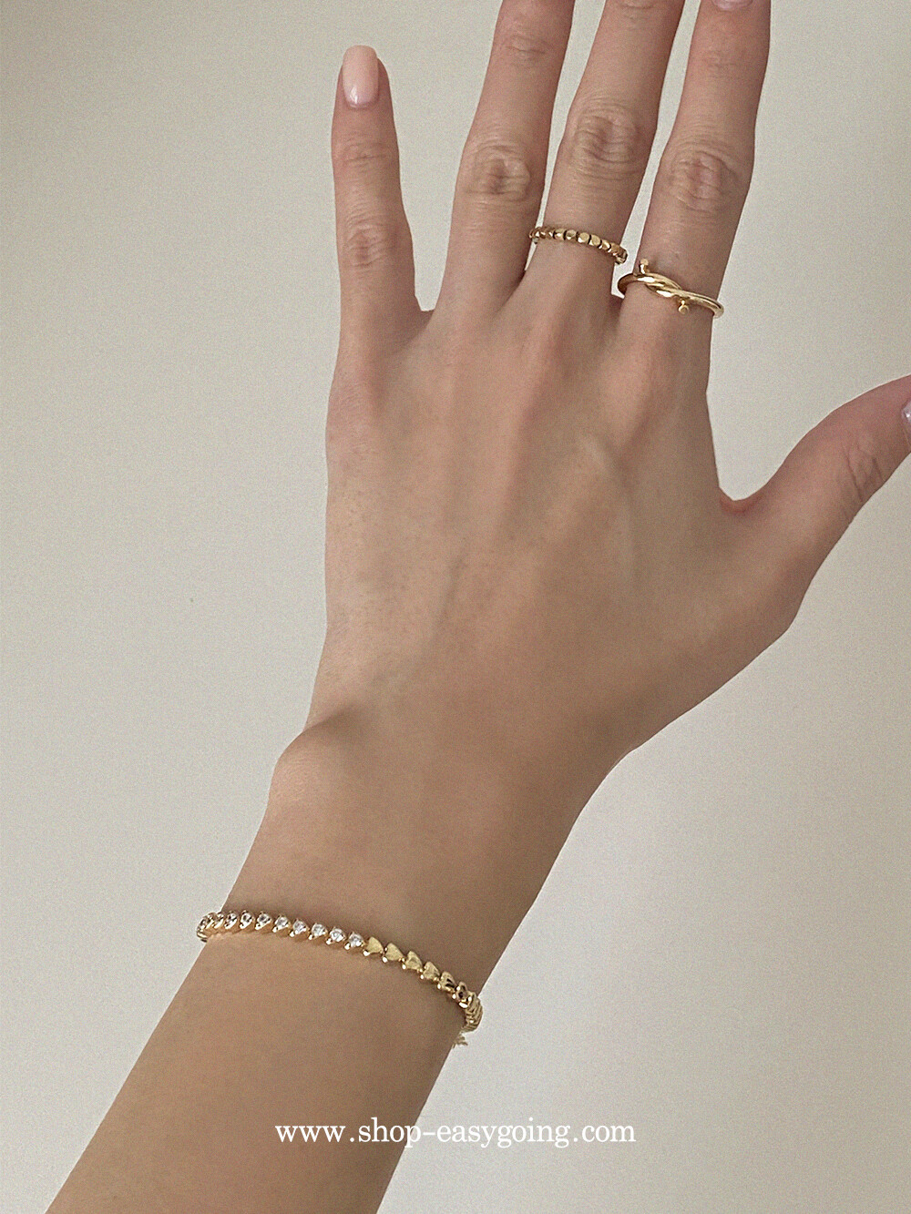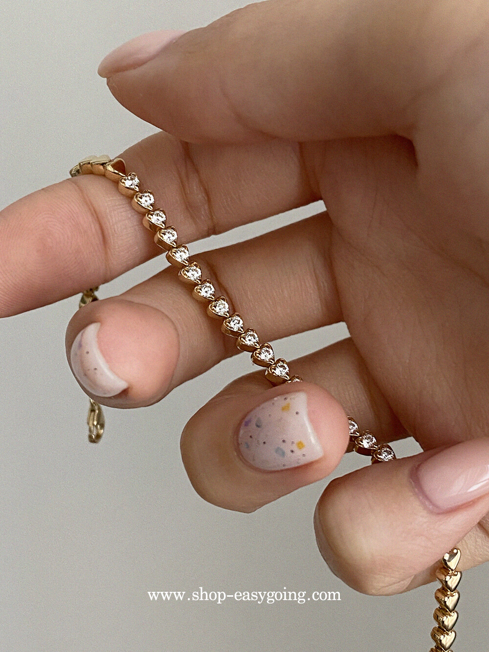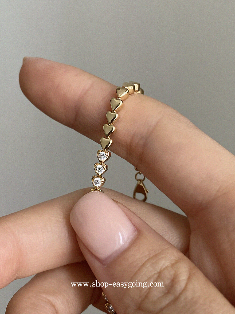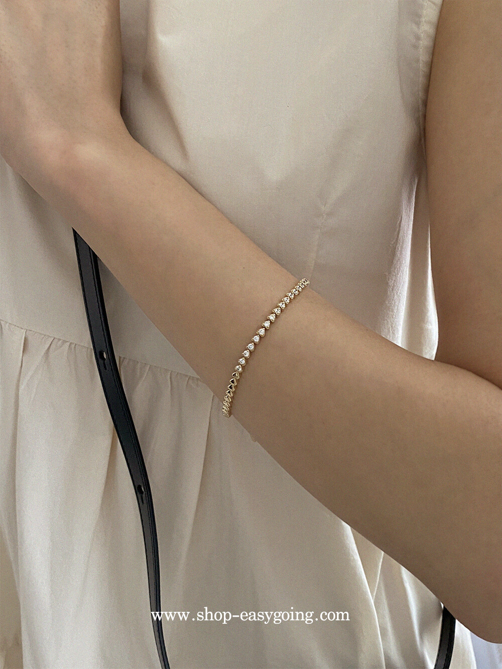 - 러블리한 미니하트가 쪼르르 이어진 팔찌예요 중앙 부분은 큐빅이 세팅되어 테니스 팔찌 느낌도 나는 제품이였어요 하트 안쪽은 비워서 중량은 낮춰주었습니다