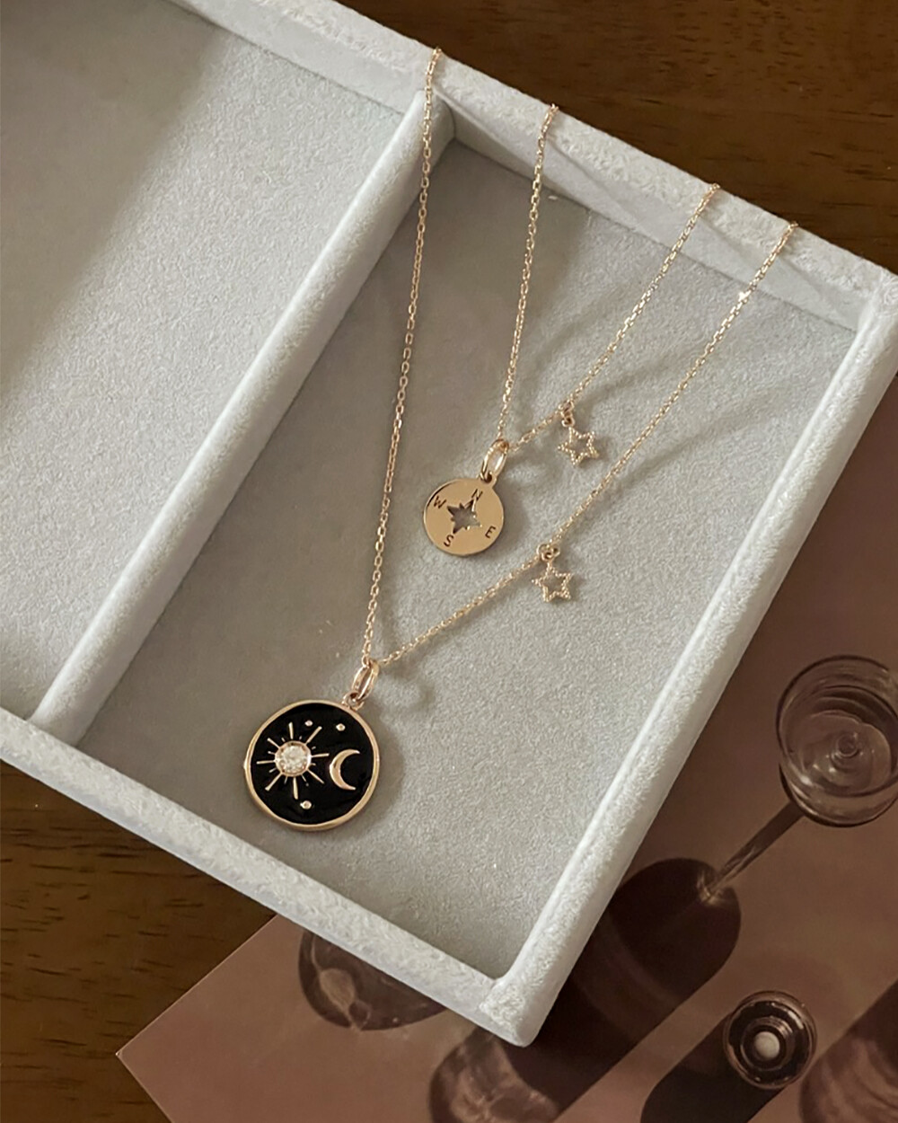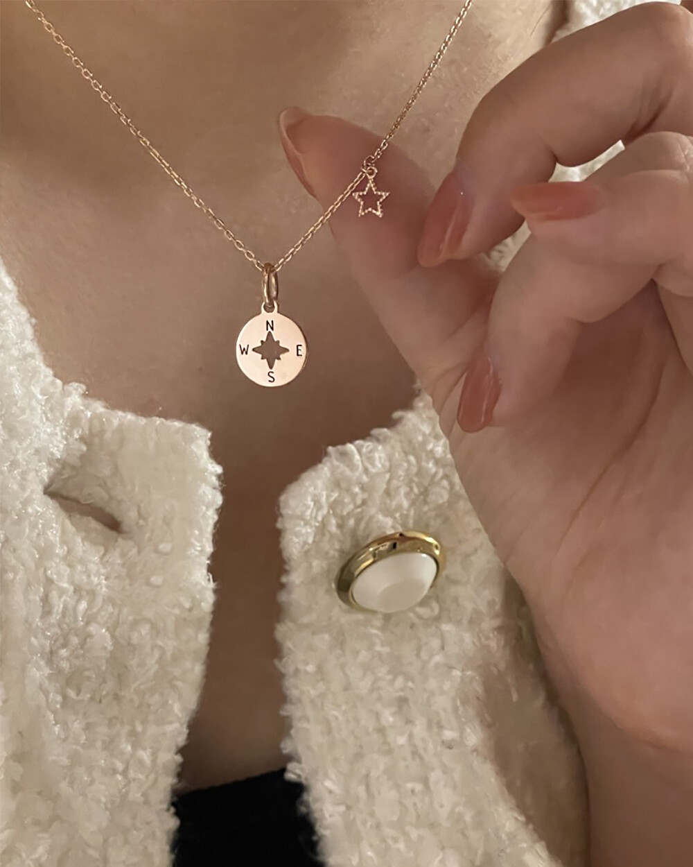 - 귀엽게 포인트 주기 좋은 나침반 네크리스예요 나침반 펜던트만 별도 구매도 가능해서 소장하신 목걸이 체인에 연결해서 착용하실 수 있어요