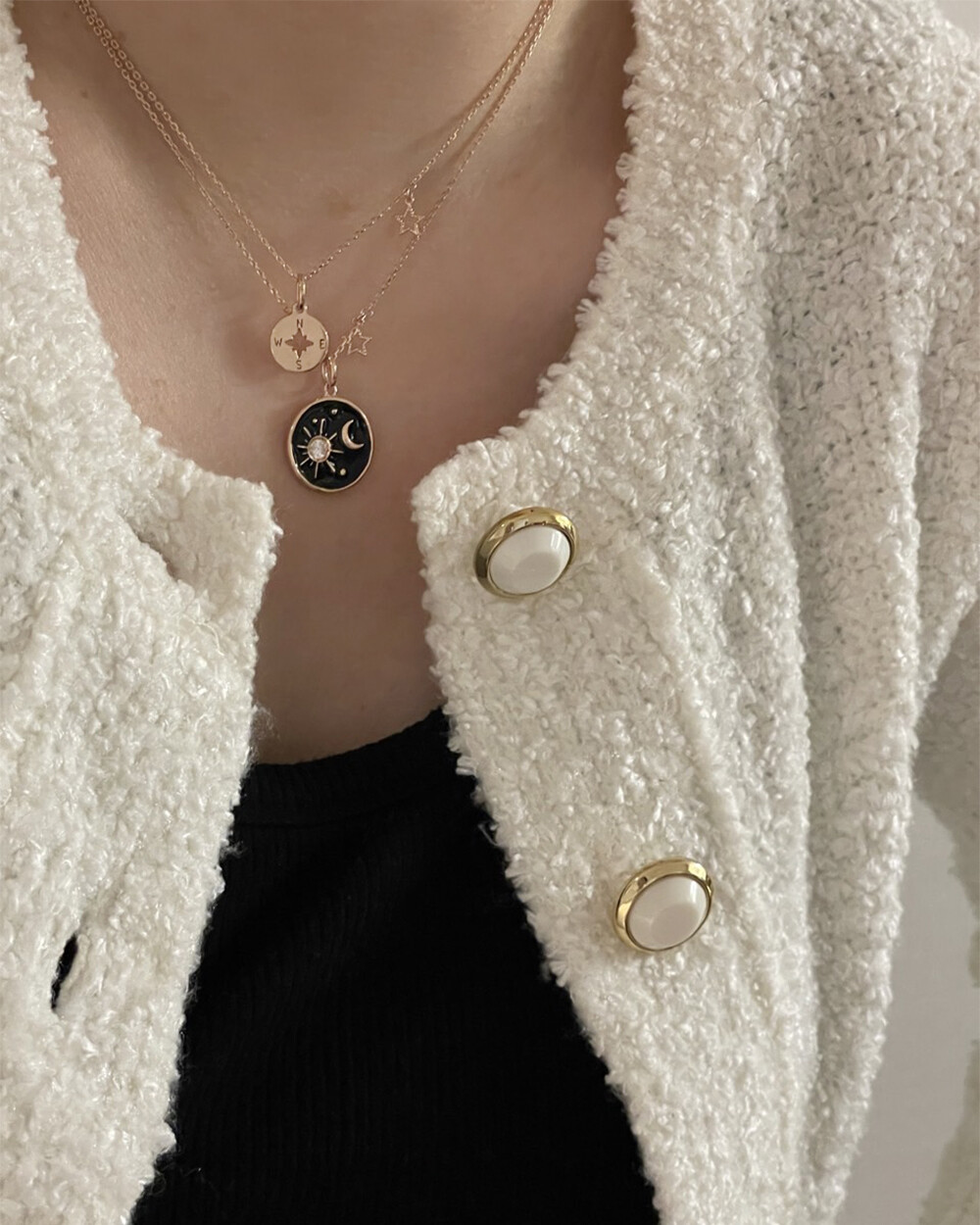 큼직한 펜던트 네크리스와 레이어드 하셔도 좋아요