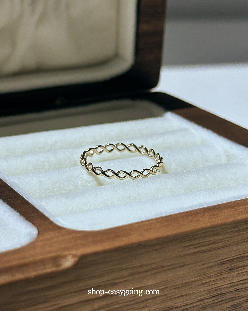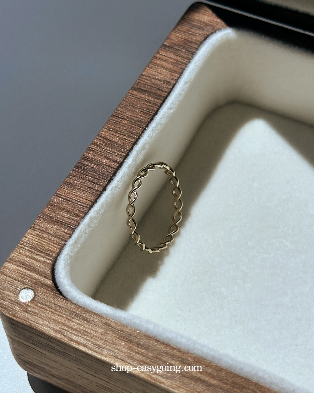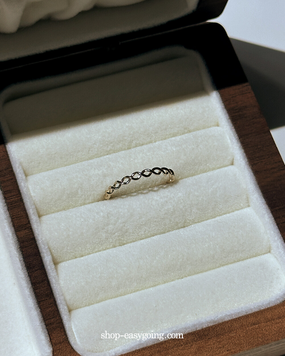 - 여리여리한 주얼리 좋아하신다면 추천드리는 제품입니다. 슬림한 꼬임 디자인으로 우대가 따로 없이 전체로 이어져 더욱 유니크했던 반지예요