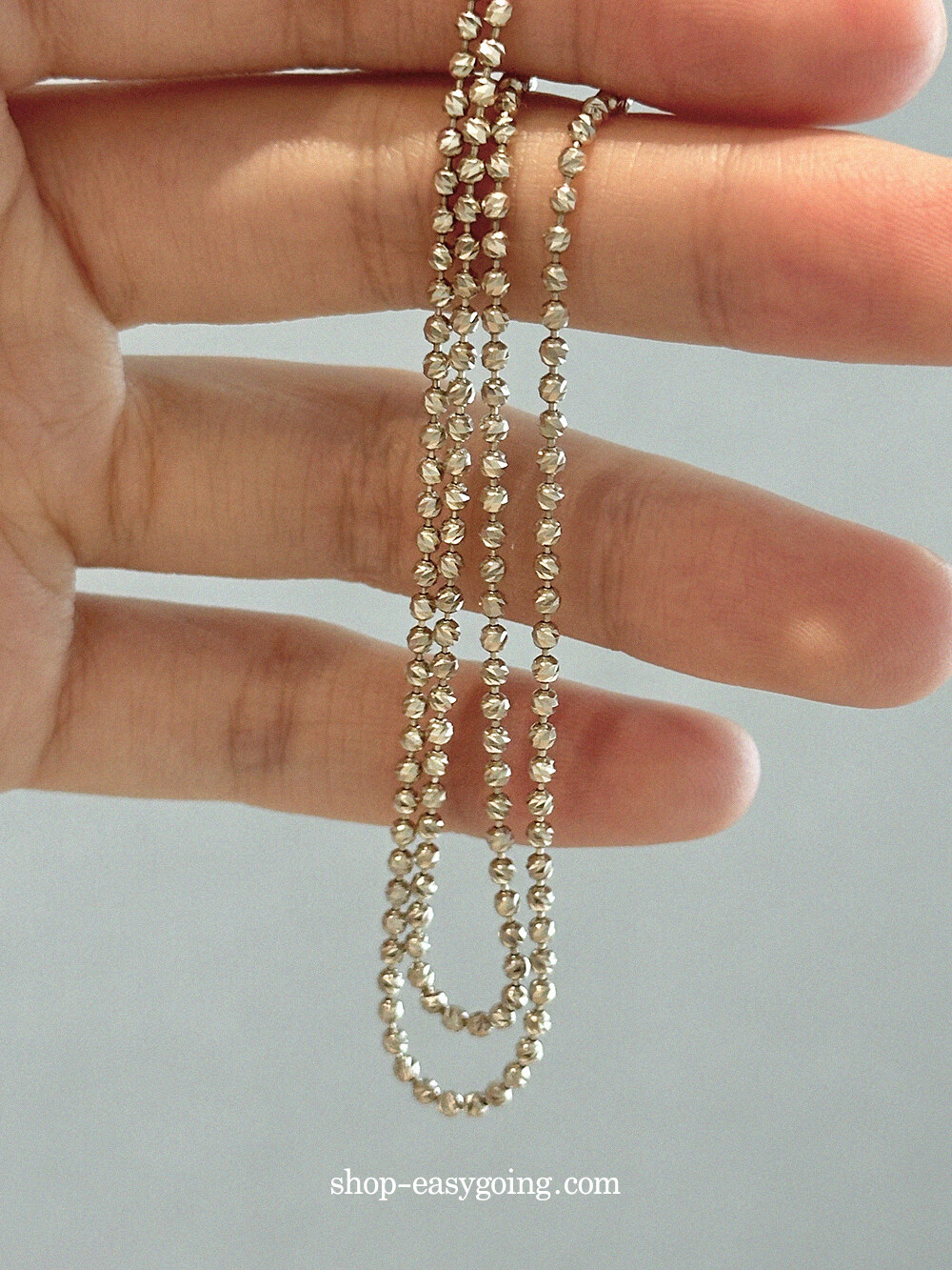 - 2.0mm 컷팅볼 체인으로 은은한 반짝임이 고급스러운 네크리스예요 붕어잠금으로 더욱 튼튼하게 제작되었고요 데일리로 착용하셔도 부담없는 사이즈랍니다:)