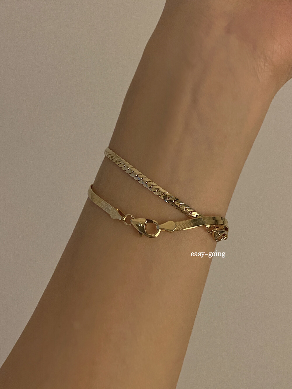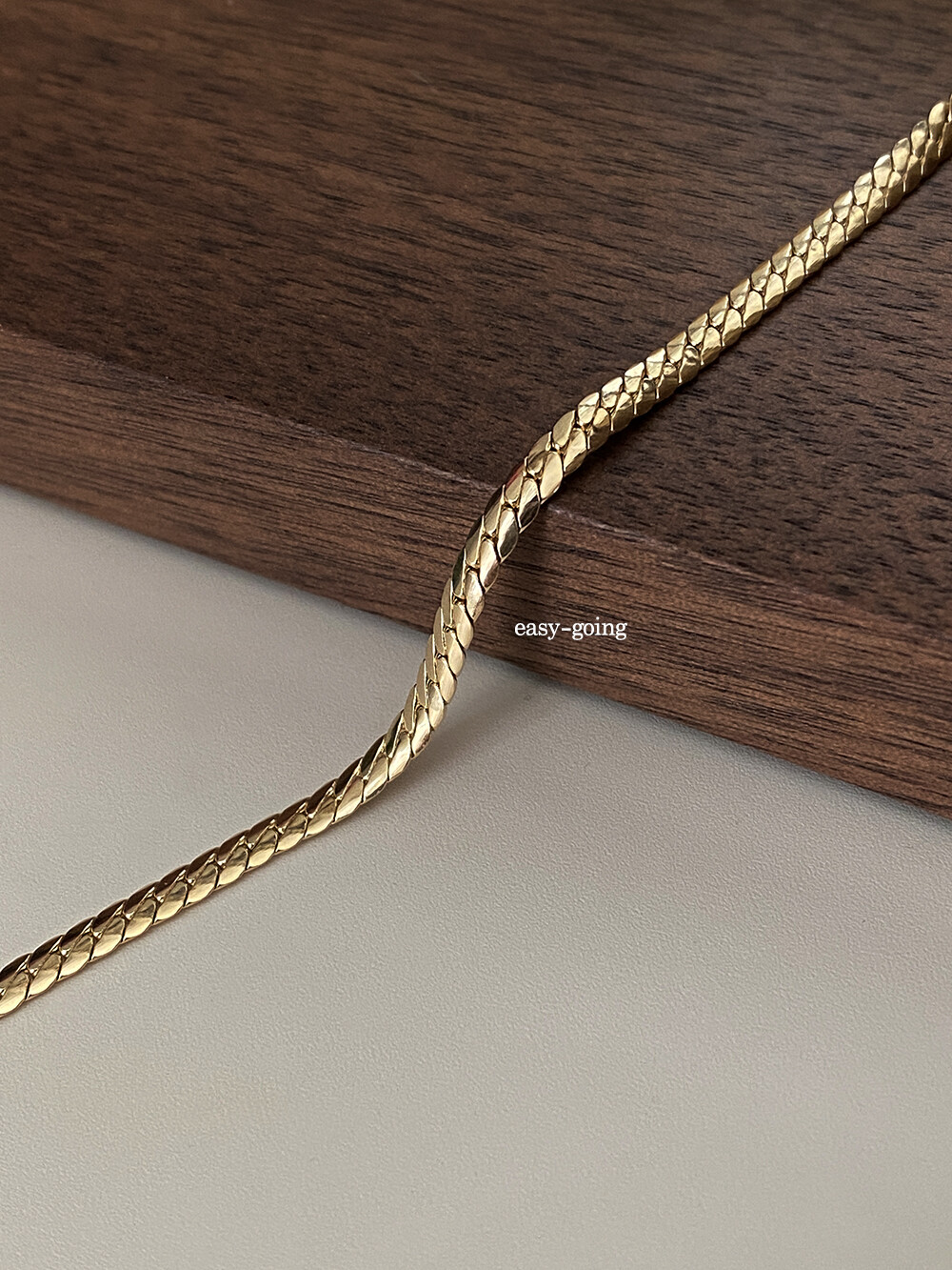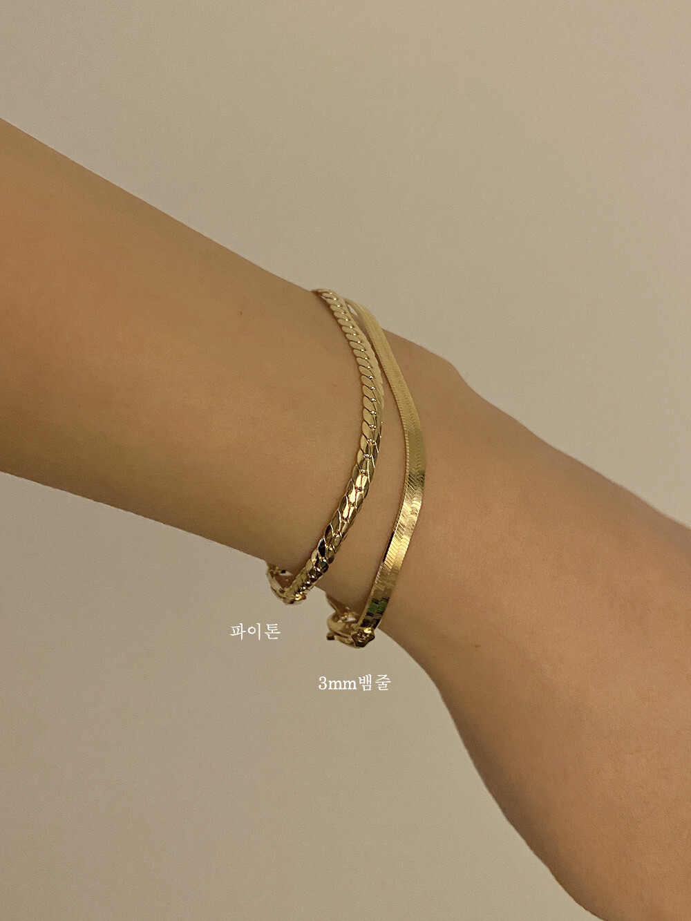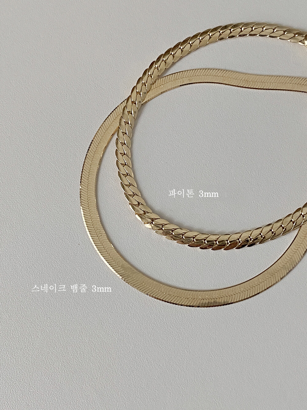 - 파이톤 디자인이 유니크하게 연출되는 제품입니다. 3mm폭이라 부담스럽지 않고 어떤룩이든 매치하기 좋았어요