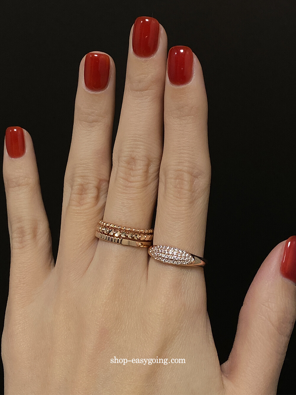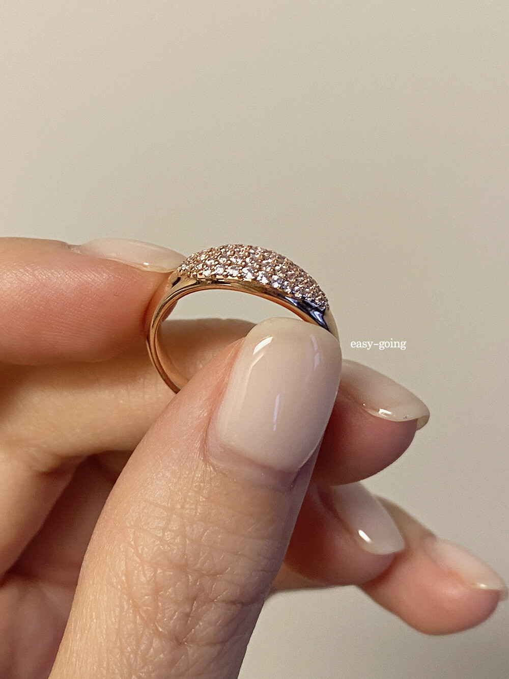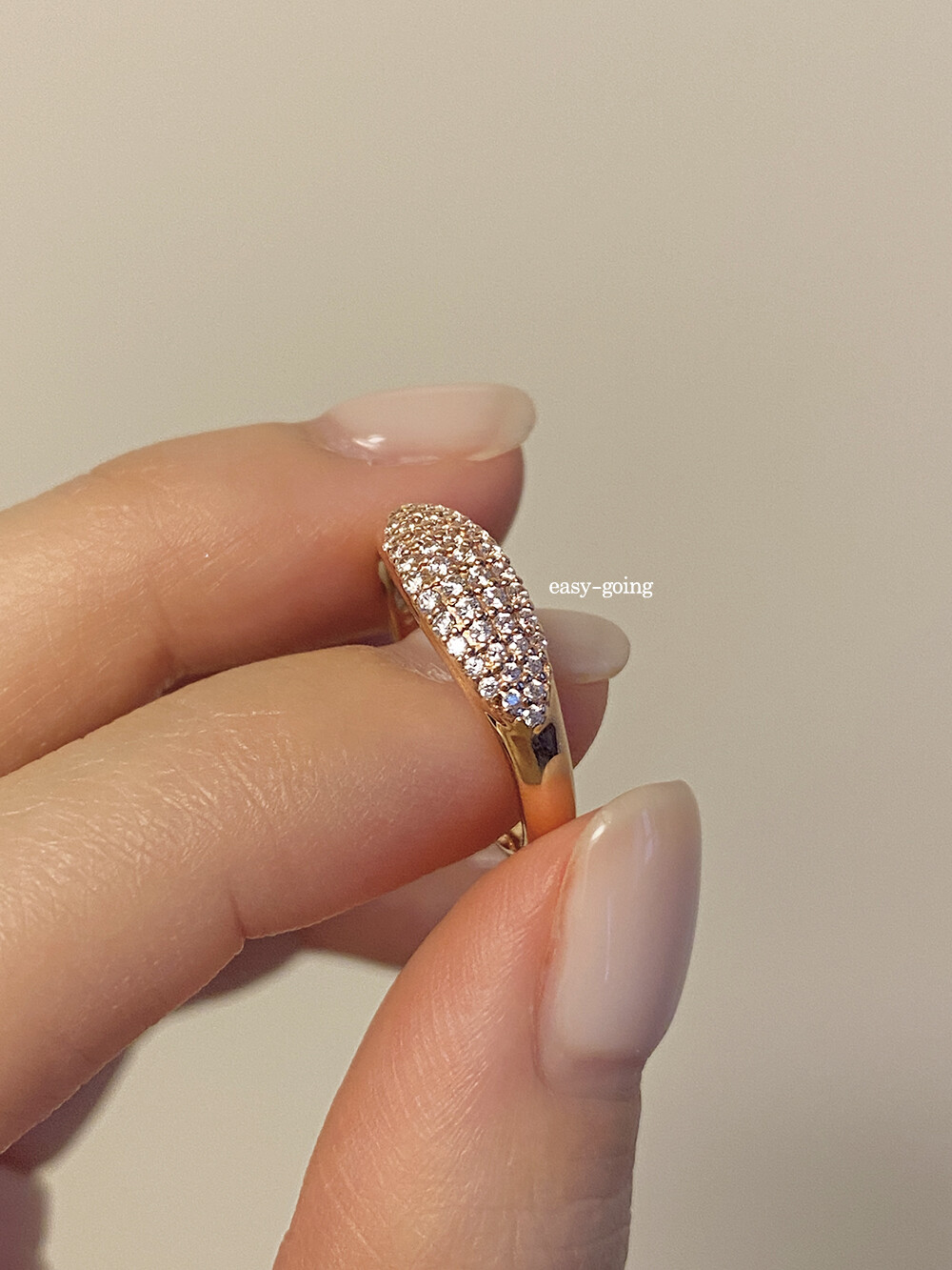 - 반짝이는 파베 세팅에 볼륨감이 더해져 우아하고 고급스러운 반지예요 단품으로 착용하여도 존재감 있는 제품 찾으신다면 추천드립니다-!