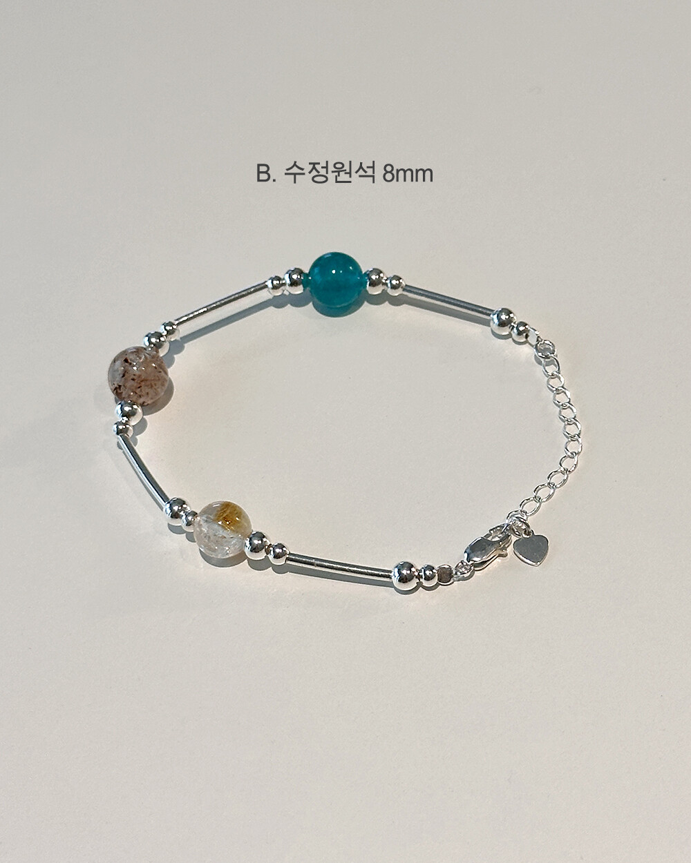 B. 수정원석 8mm : 15cm+여유체인 3cm