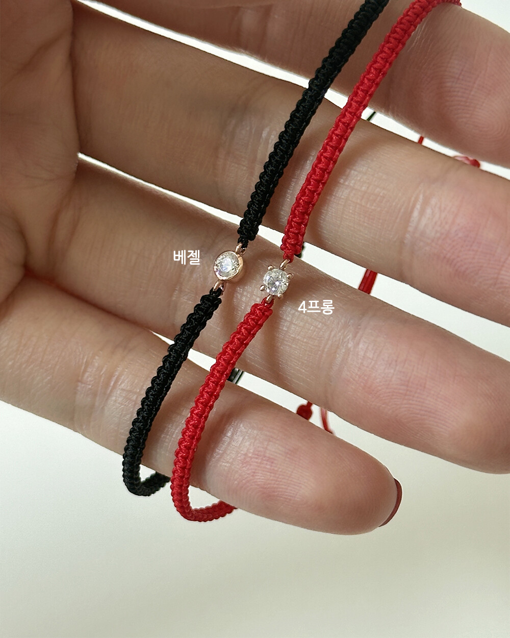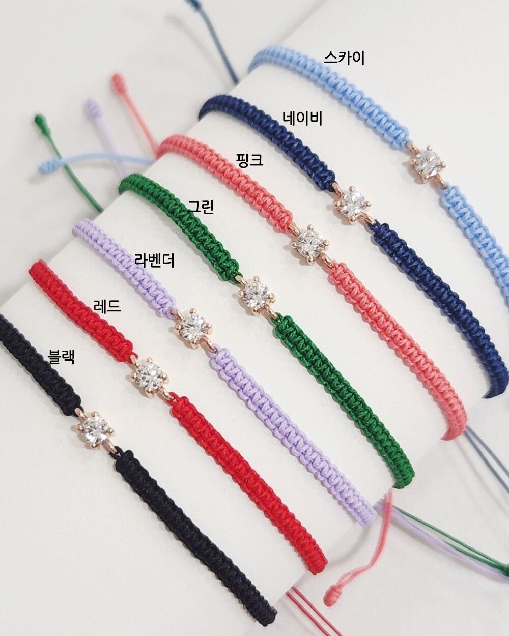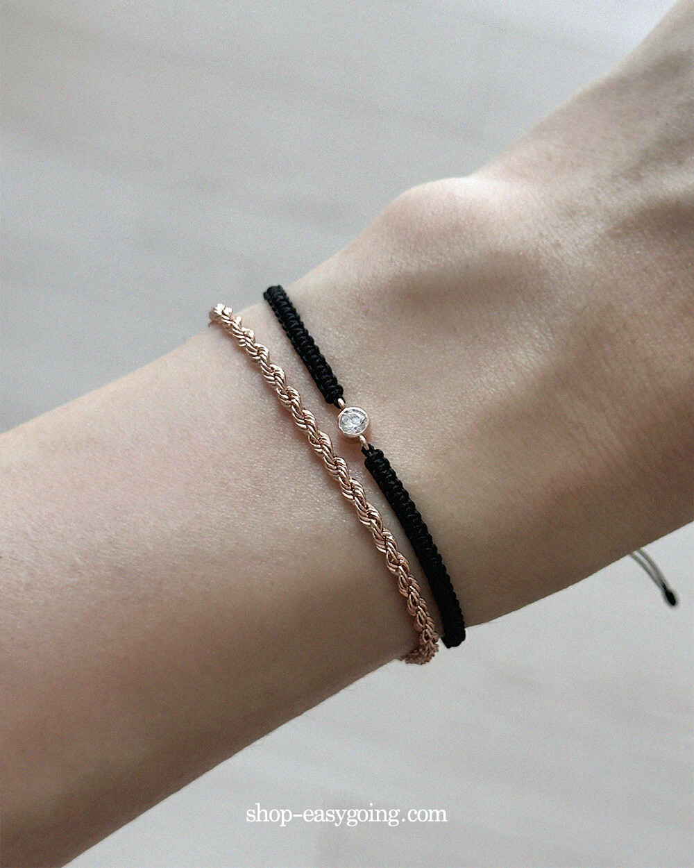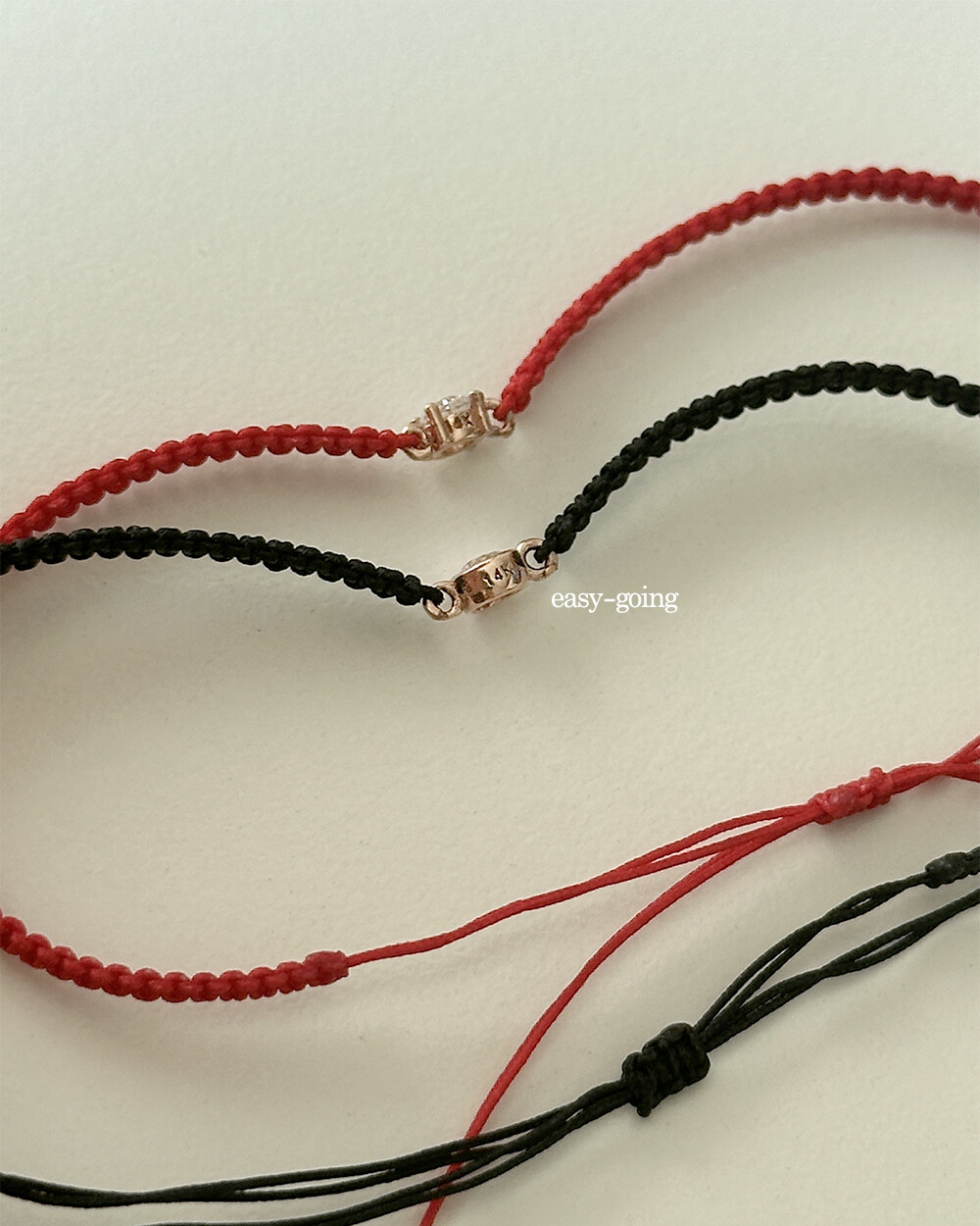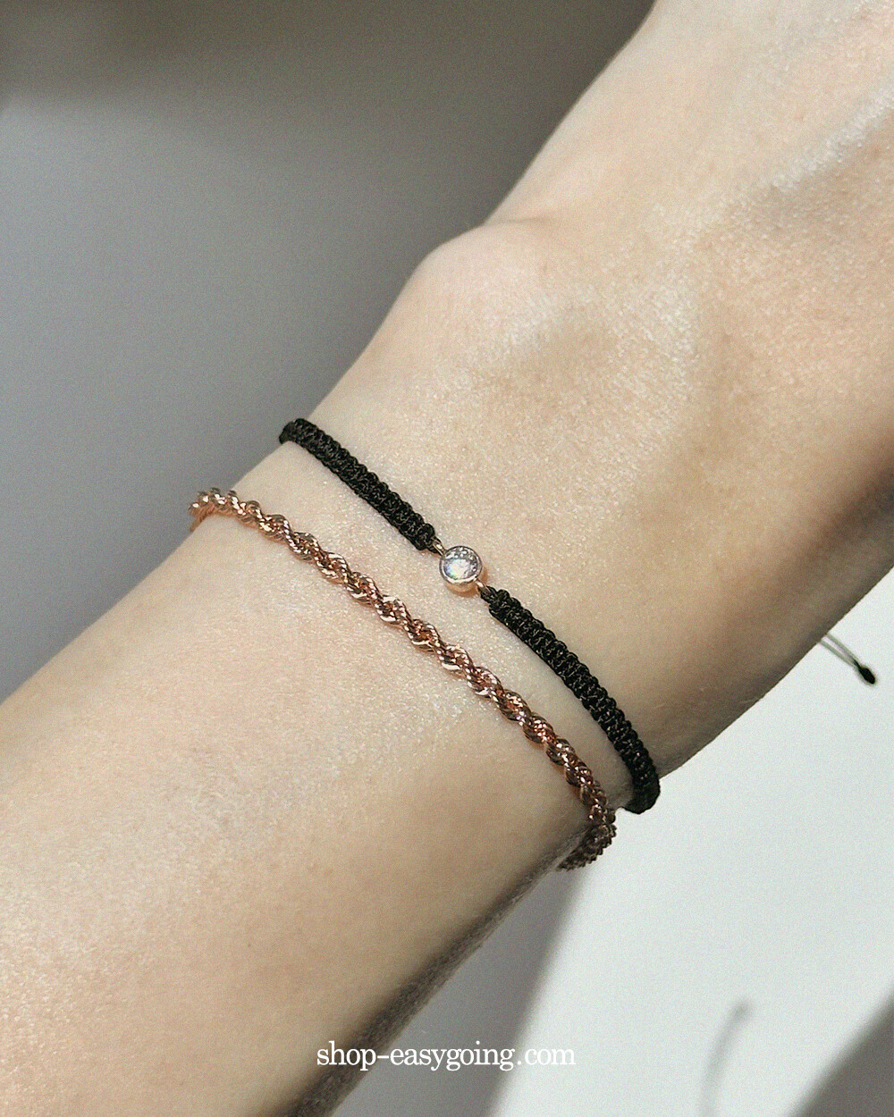 - 15cm~19cm 사이즈 착용하기 좋은 끈팔찌예요 탄탄한 짜임으로 퀄리티 좋게 제작되었고요 투박한 느낌 없이 슬림한 스타일이라 착용했을 때 더욱 예뻤답니다 다른 팔찌와 레이어드하기도 딱 좋았어요