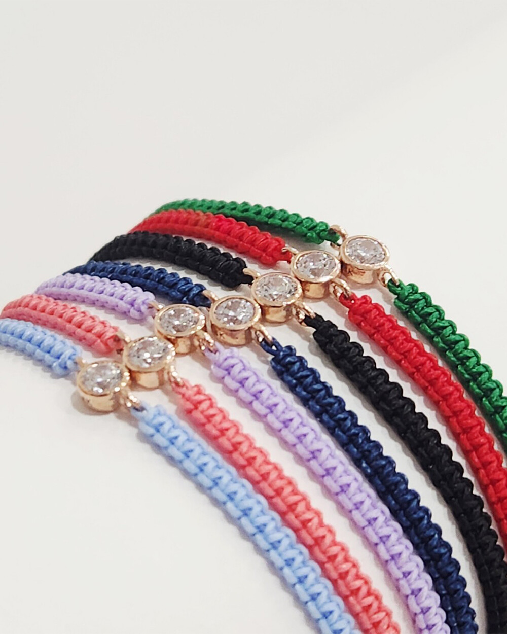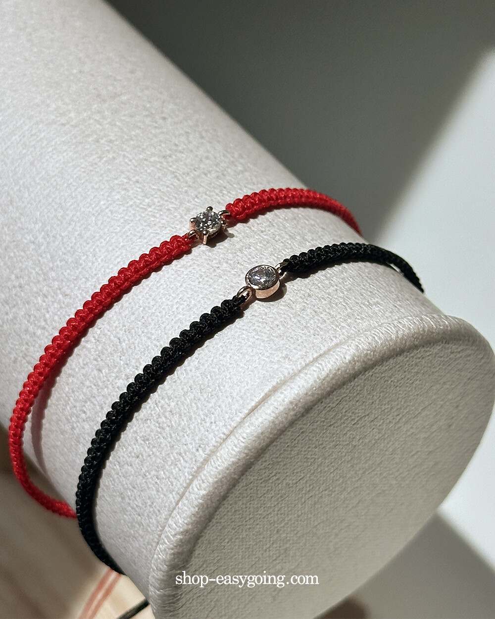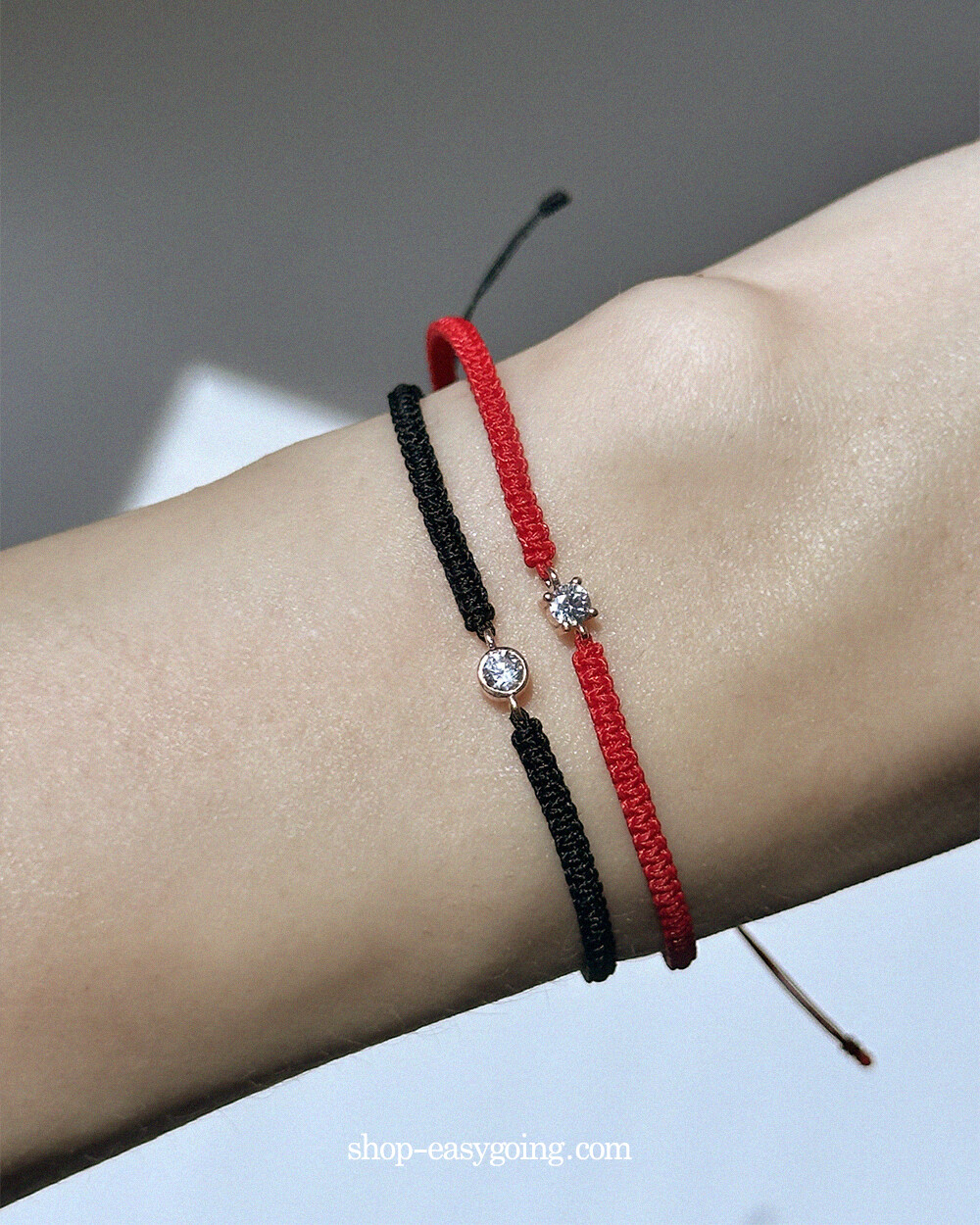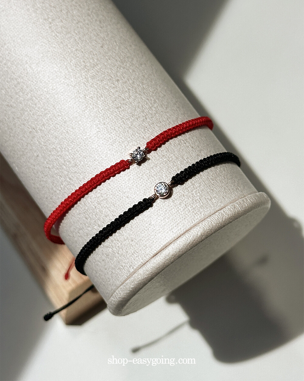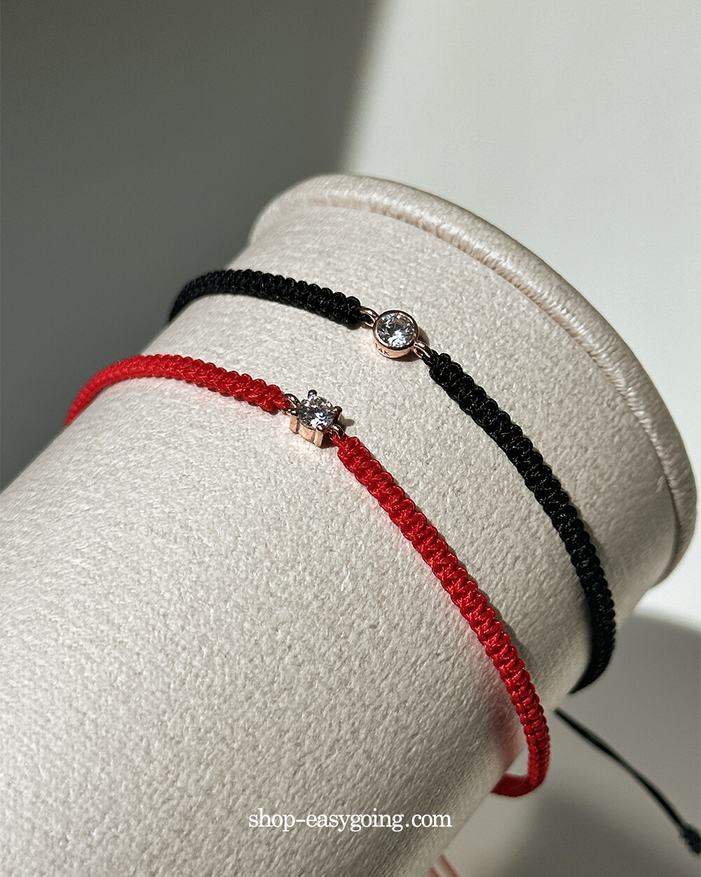 - 15cm~19cm 사이즈 착용하기 좋은 끈팔찌예요 탄탄한 짜임으로 퀄리티 좋게 제작되었고요 투박한 느낌 없이 슬림한 스타일이라 착용했을 때 더욱 예뻤답니다 다른 팔찌와 레이어드하기도 딱 좋았어요