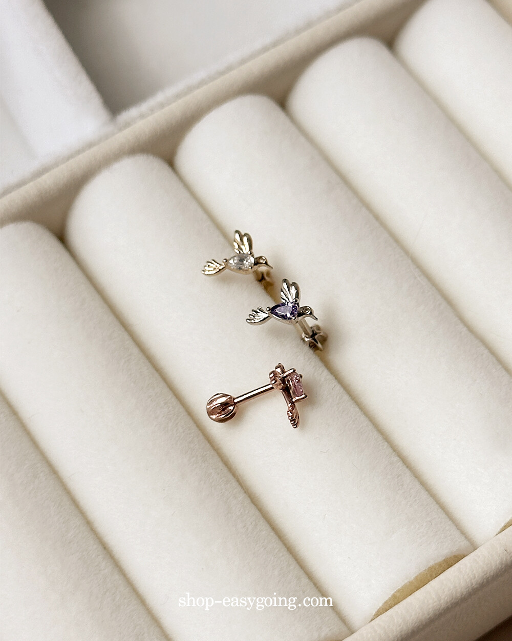 - 다양한 컬러큐빅 세팅으로 포인트 주기 좋은 새 피어싱이에요 아기자기한 사이즈라 부담스럽지 않게 연출된답니다.