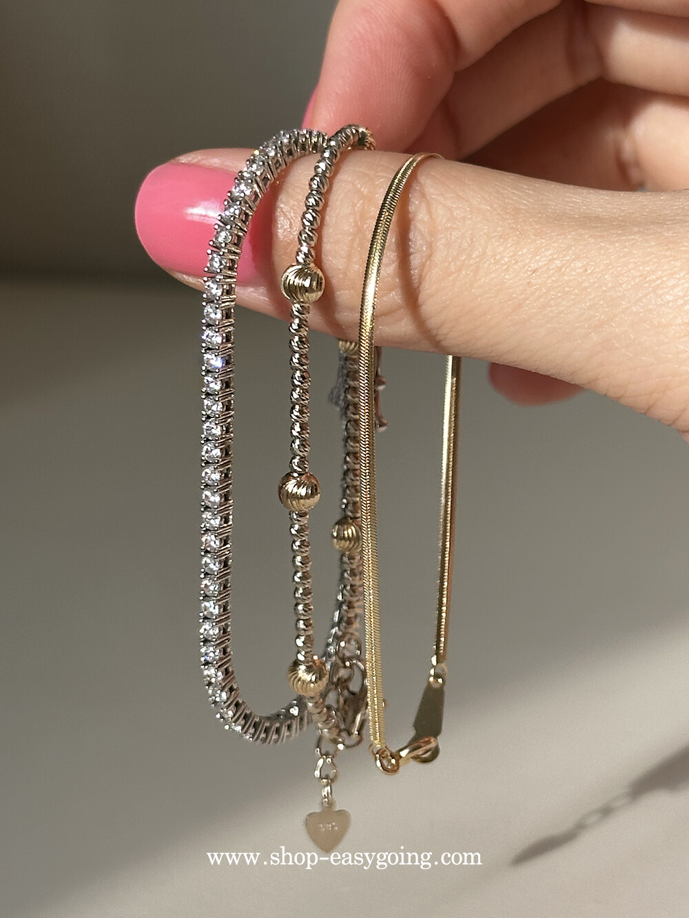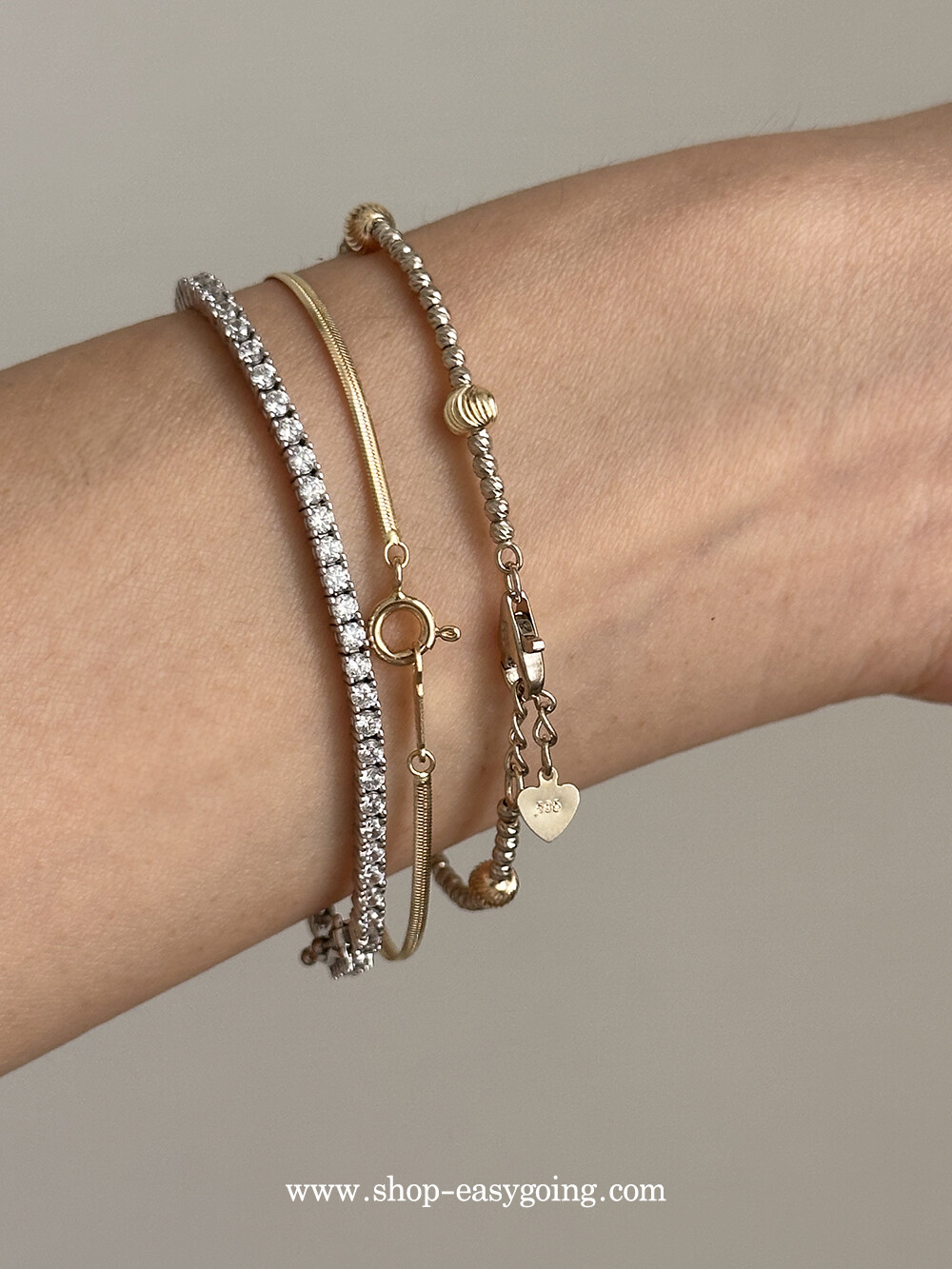 14k,18k gold 및 귀금속 : 금은 열에 약하고 무른편에 속하는 소재이므로 제품관리시 유의해 주세요. 특히 얇은 체인은 힘에 의해 끊어 질 수 있습니다 이 부분은 a/s가 불가하니 착용시 조심해 주세요. 또한 변함없이 착용이 가능한 소재이지만 겉면의 스크레치, 염소성분, 염분에 의해 광택이 사라지고 탁해질 수 있습니다. 초음파 세척이나 금세척으로 관리해주시면 광택을 오래 유지하실 수 있으며, 벗어 놓을 때는 마른 천으로 닦고 파우치에 담아 습하지 않은 곳에 보관하시는 게 좋습니다.