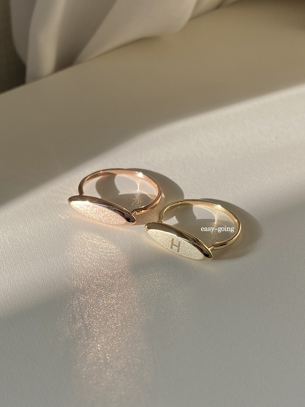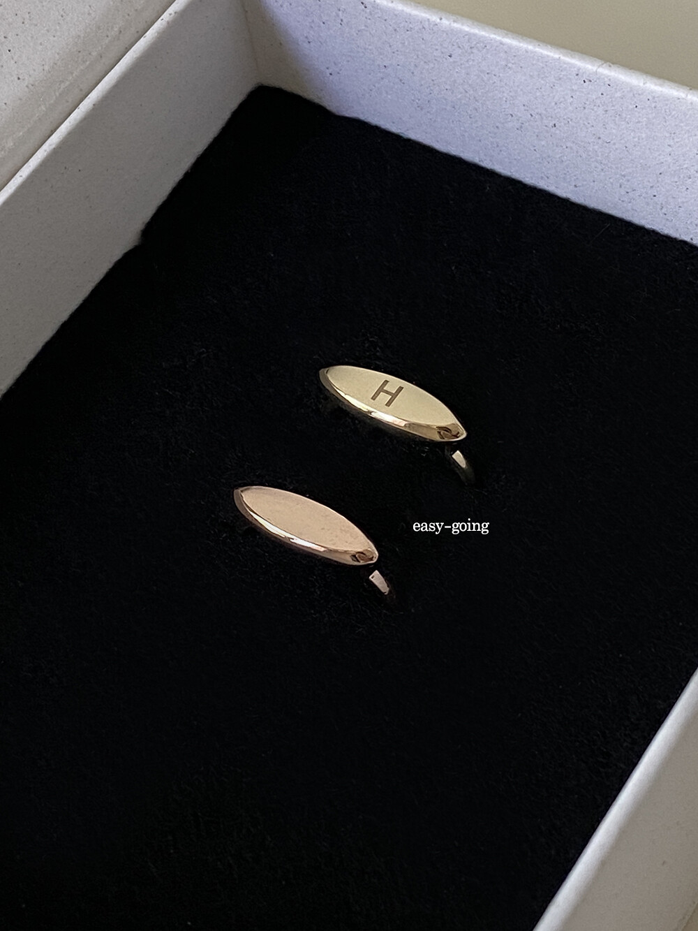 - 깔끔하면서 유니크한 디자인으로 소장가치가 있는 제품입니다. 이니셜 추가하여 커플링, 우정반지로 착용하셔도 좋을 반지예요