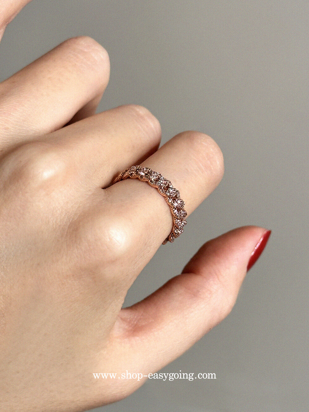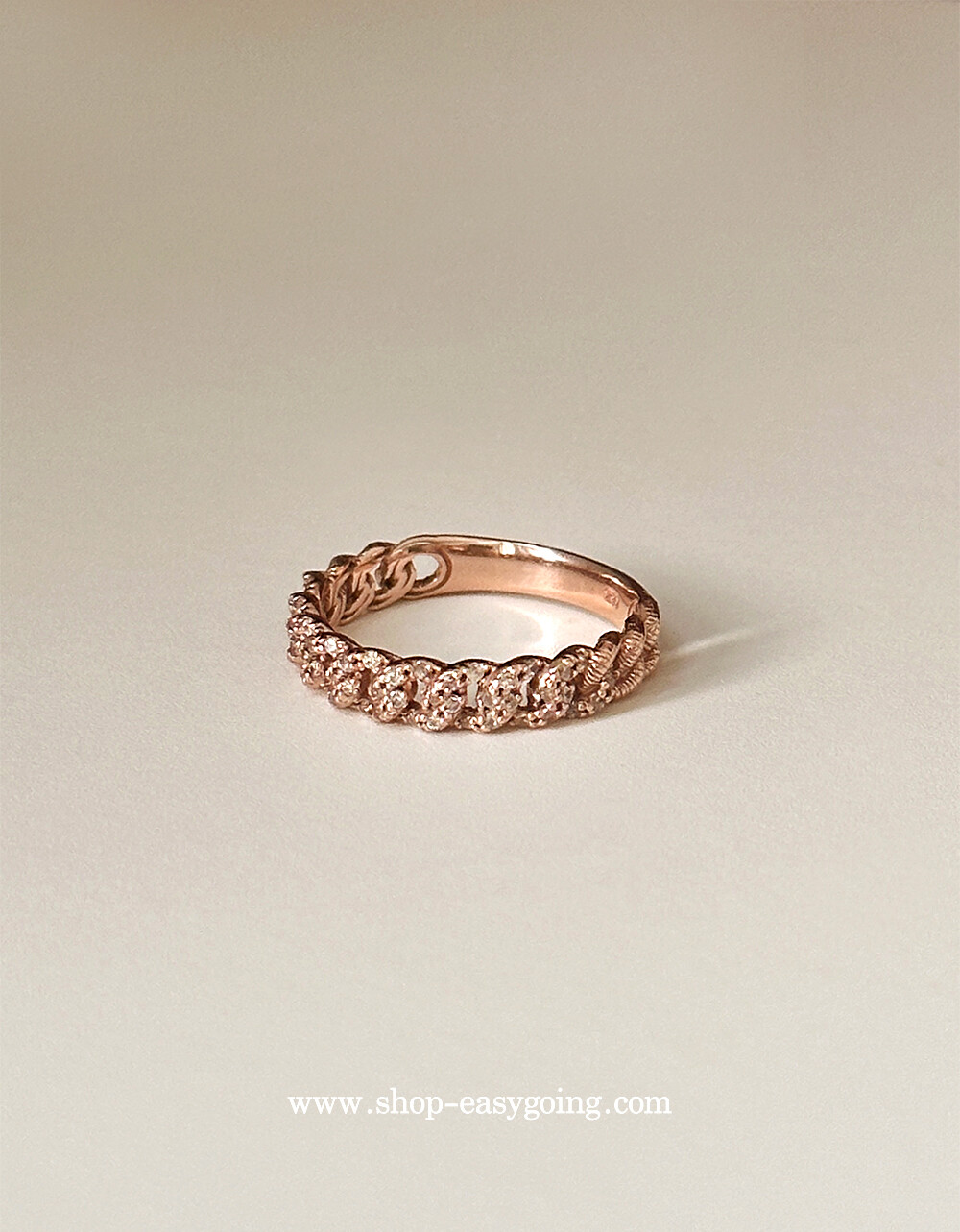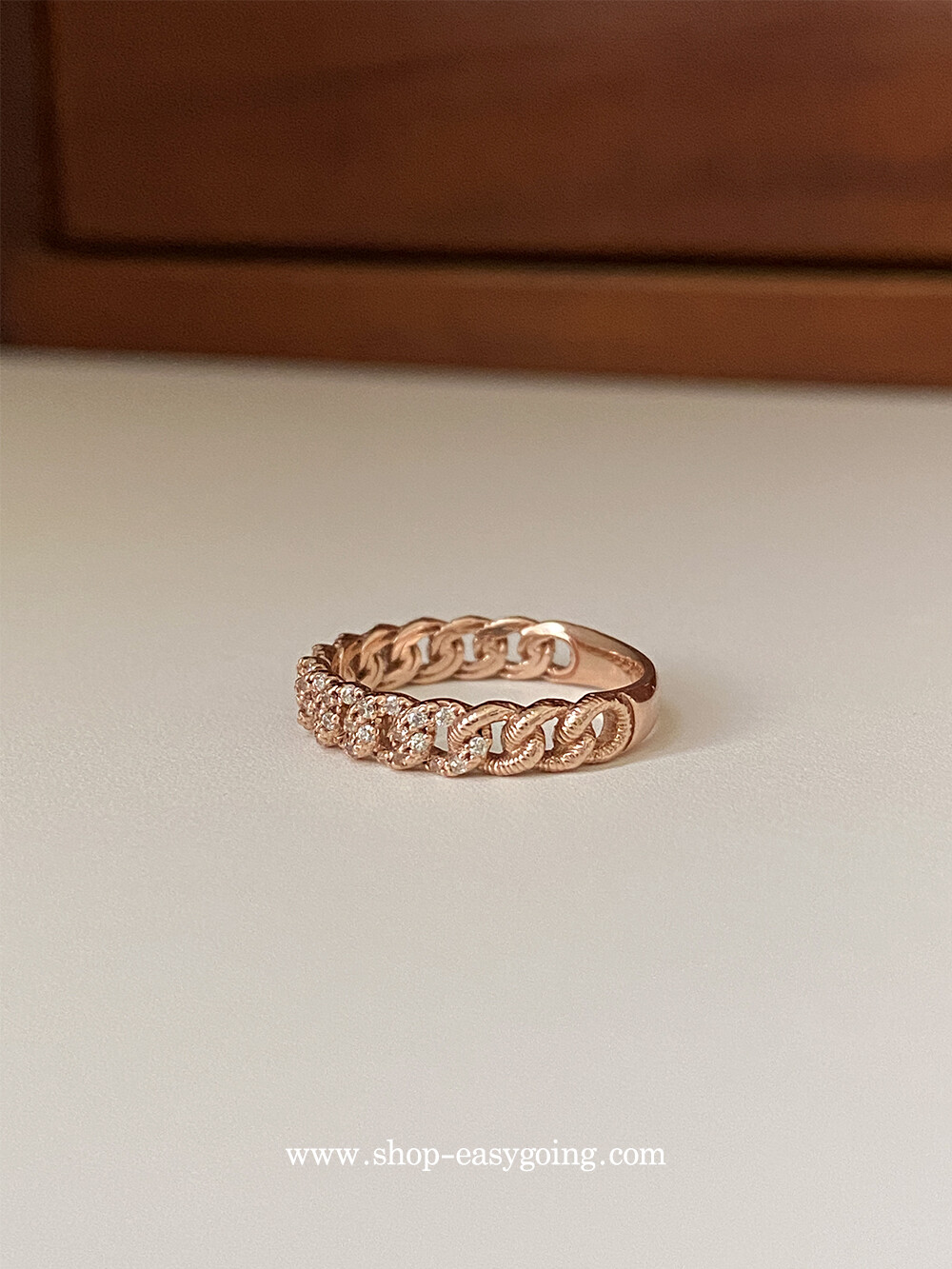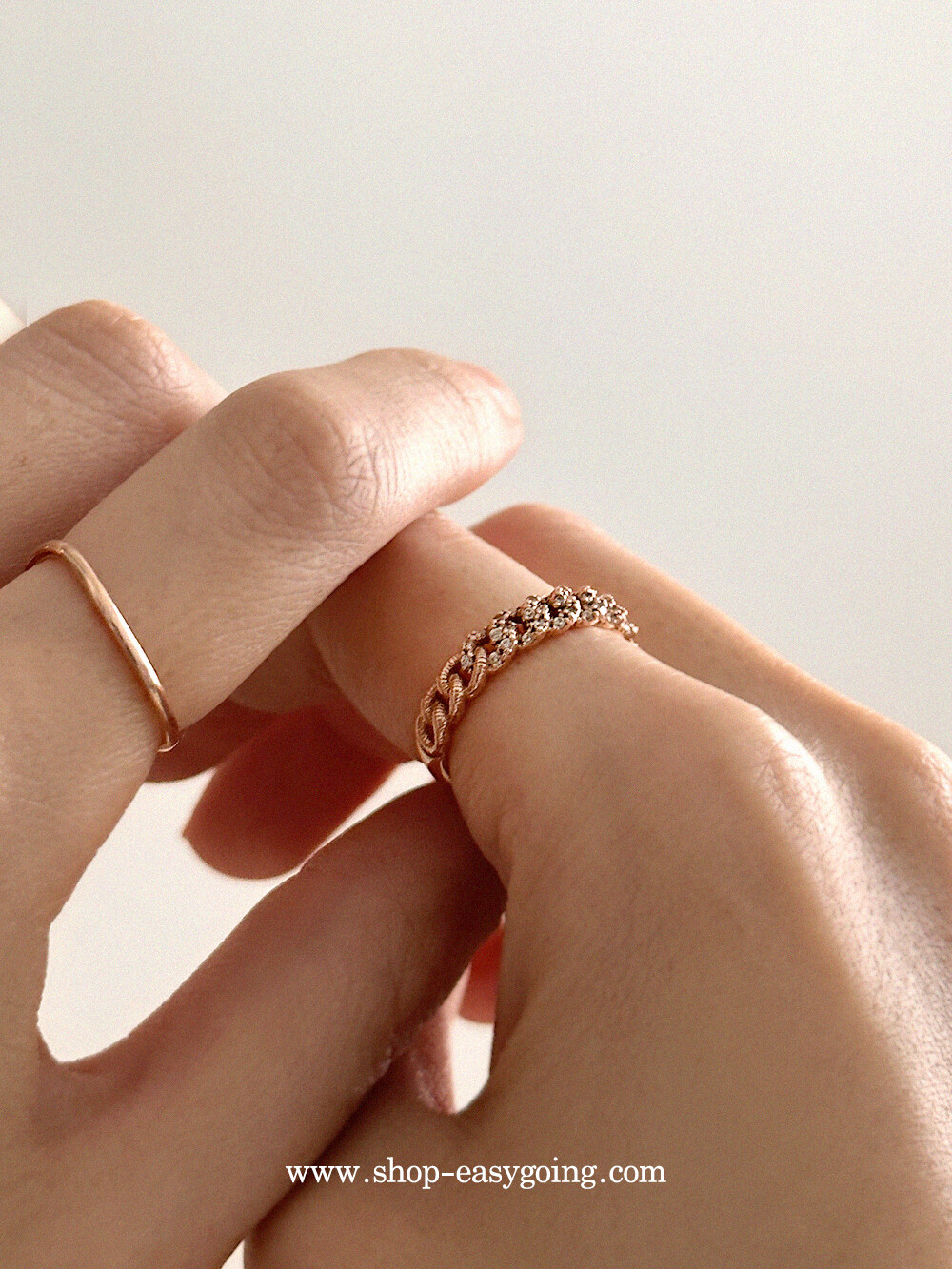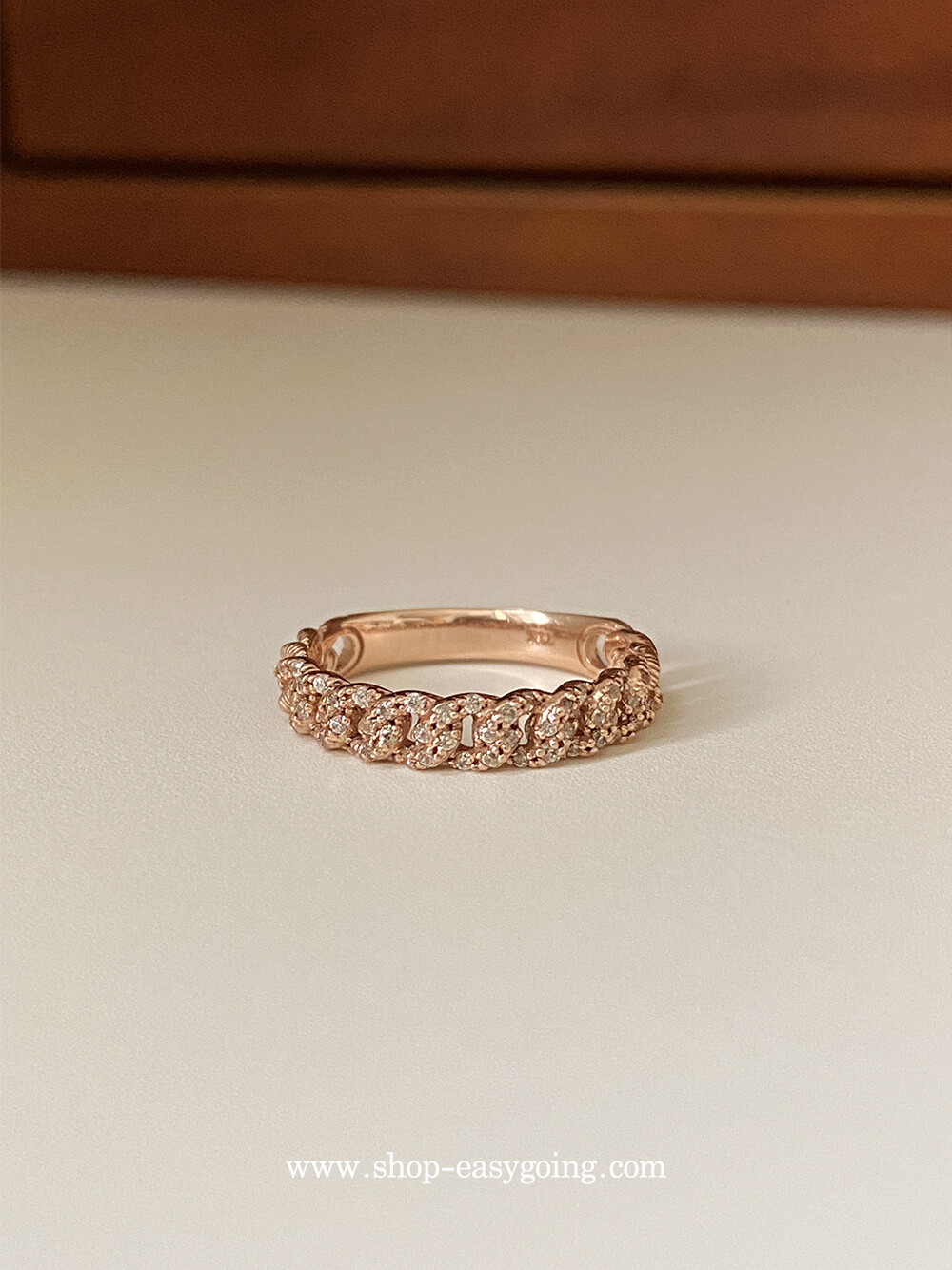 - 체인 디자인의 반지는 하나쯤 소장하신 분들이 많을텐데요 메인에 촘촘하게 큐빅을 세팅해주어 한층 더 고급스럽고 특별하게 제작된 제품입니다 은은한 라이트옐로우 큐빅이라 반짝임도 더욱 분위기 있어요 (화이트 큐빅보다 좀 더 차분한 느낌이에요!)