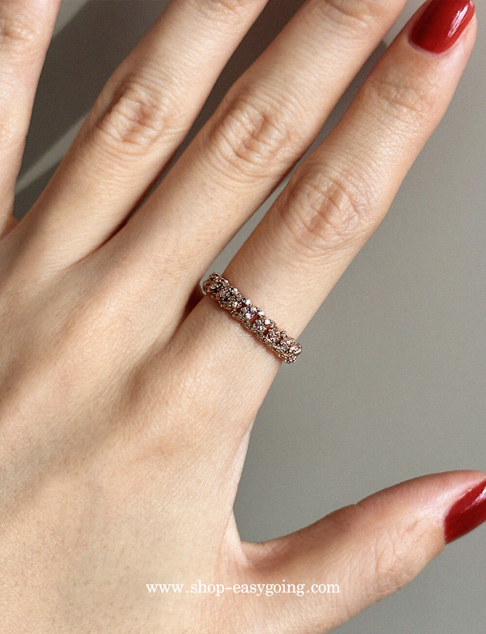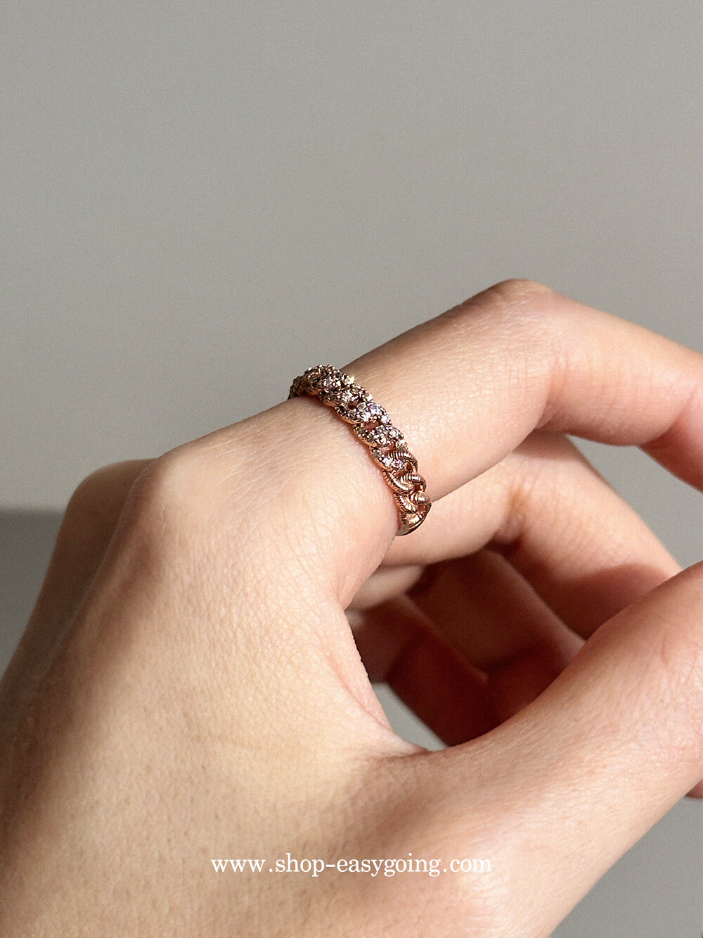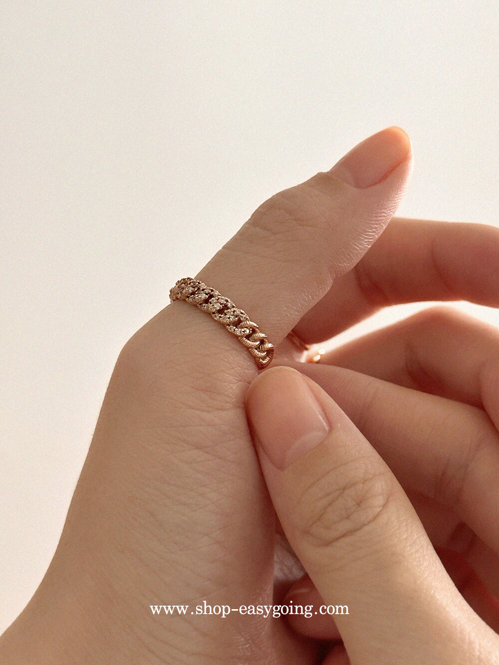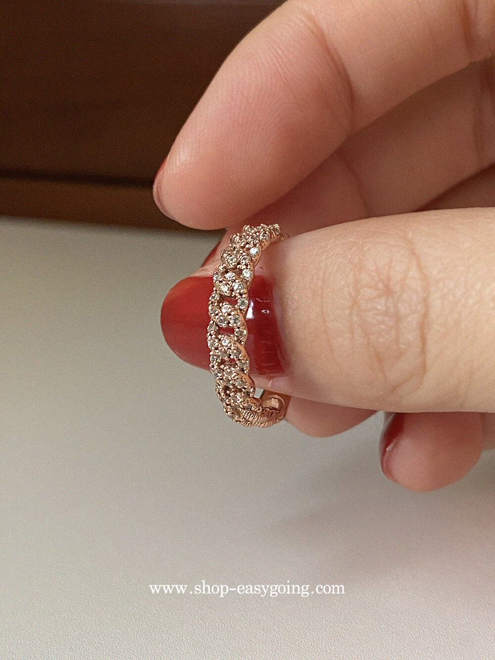 - 체인 디자인의 반지는 하나쯤 소장하신 분들이 많을텐데요 메인에 촘촘하게 큐빅을 세팅해주어 한층 더 고급스럽고 특별하게 제작된 제품입니다 은은한 라이트옐로우 큐빅이라 반짝임도 더욱 분위기 있어요 (화이트 큐빅보다 좀 더 차분한 느낌이에요!)
