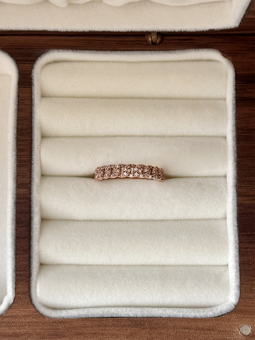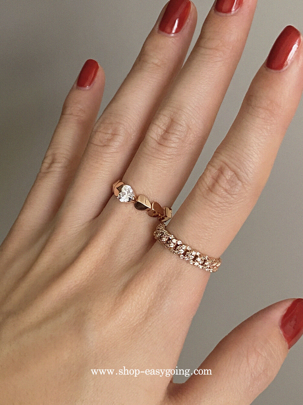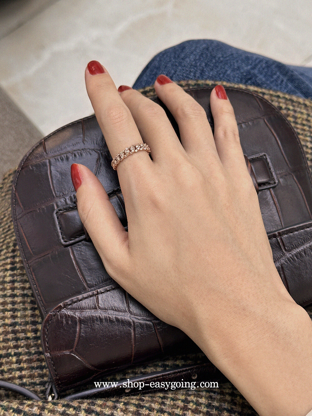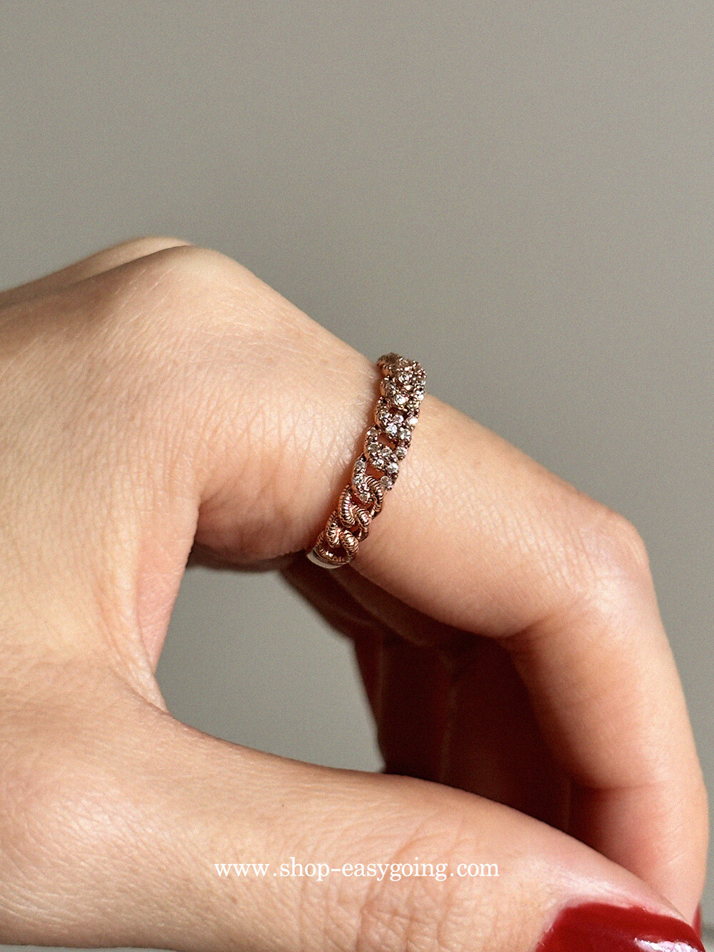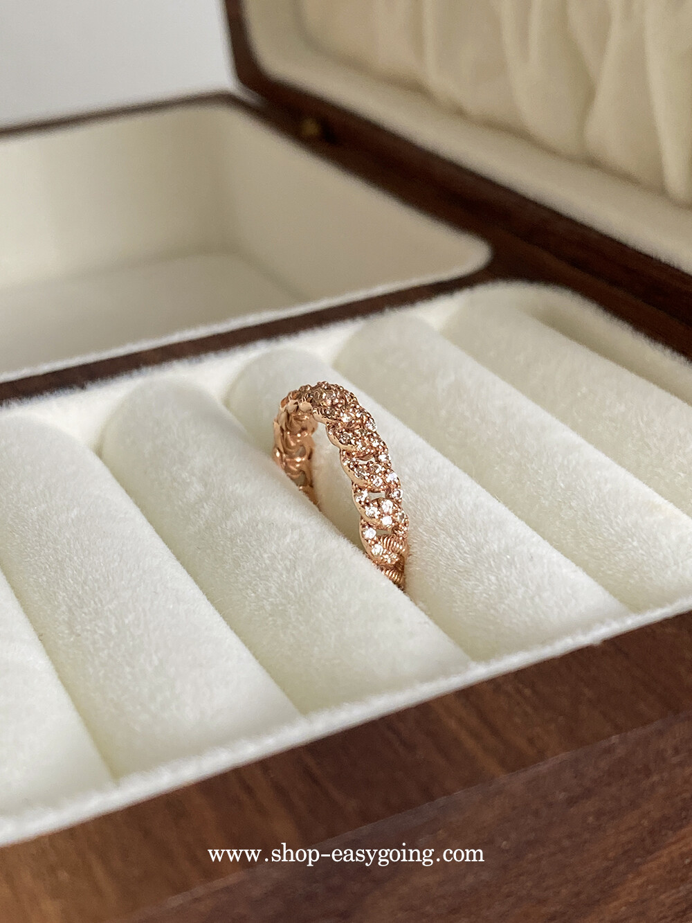 - 체인 디자인의 반지는 하나쯤 소장하신 분들이 많을텐데요 메인에 촘촘하게 큐빅을 세팅해주어 한층 더 고급스럽고 특별하게 제작된 제품입니다 은은한 라이트옐로우 큐빅이라 반짝임도 더욱 분위기 있어요 (화이트 큐빅보다 좀 더 차분한 느낌이에요!)