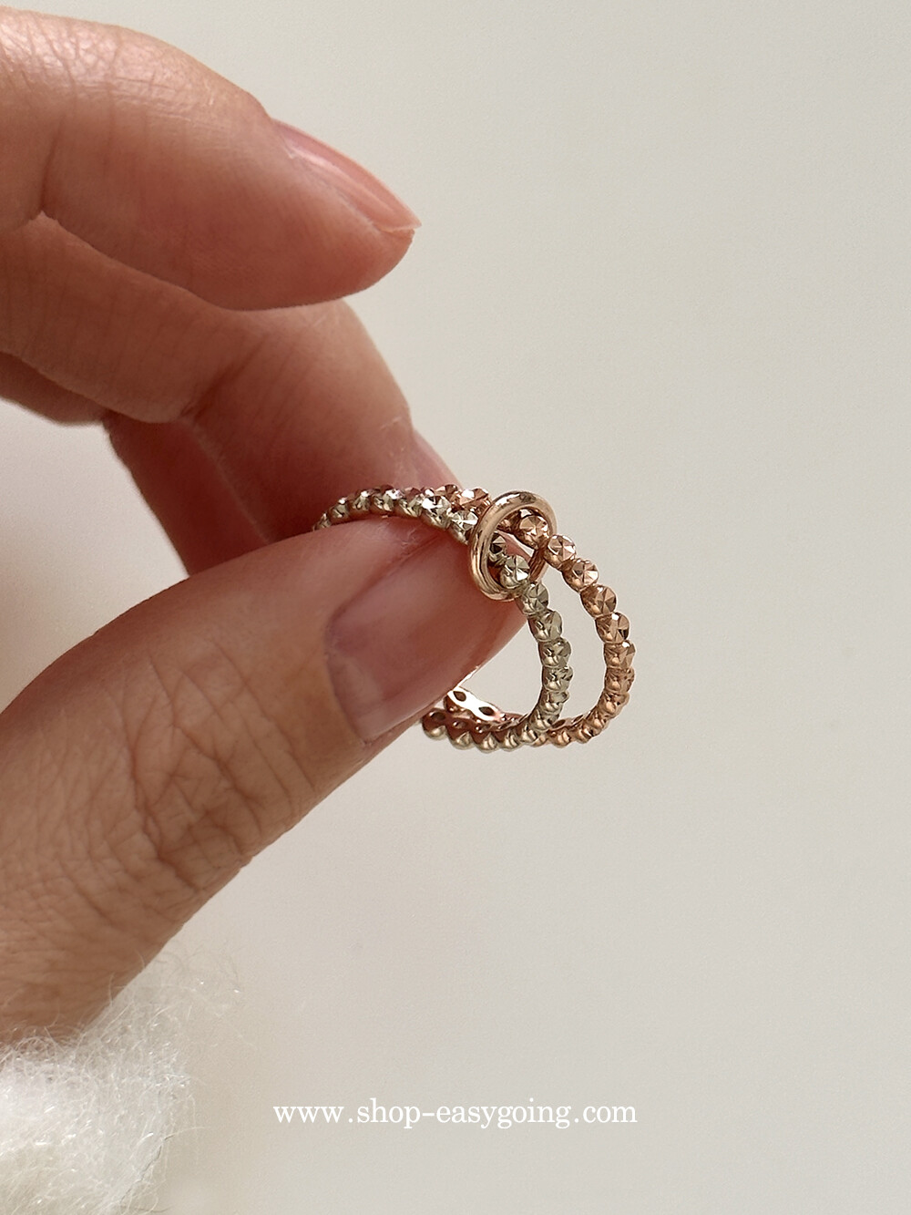 - 콤비 컬러로 제작되는 제품입니다 전체 컷팅볼링이 2개라 반짝임이 더욱 화사하고 고급스러웠는데요 실물이 훨씬 예뻤던 제품이라 자신있게 추천드립니다:)