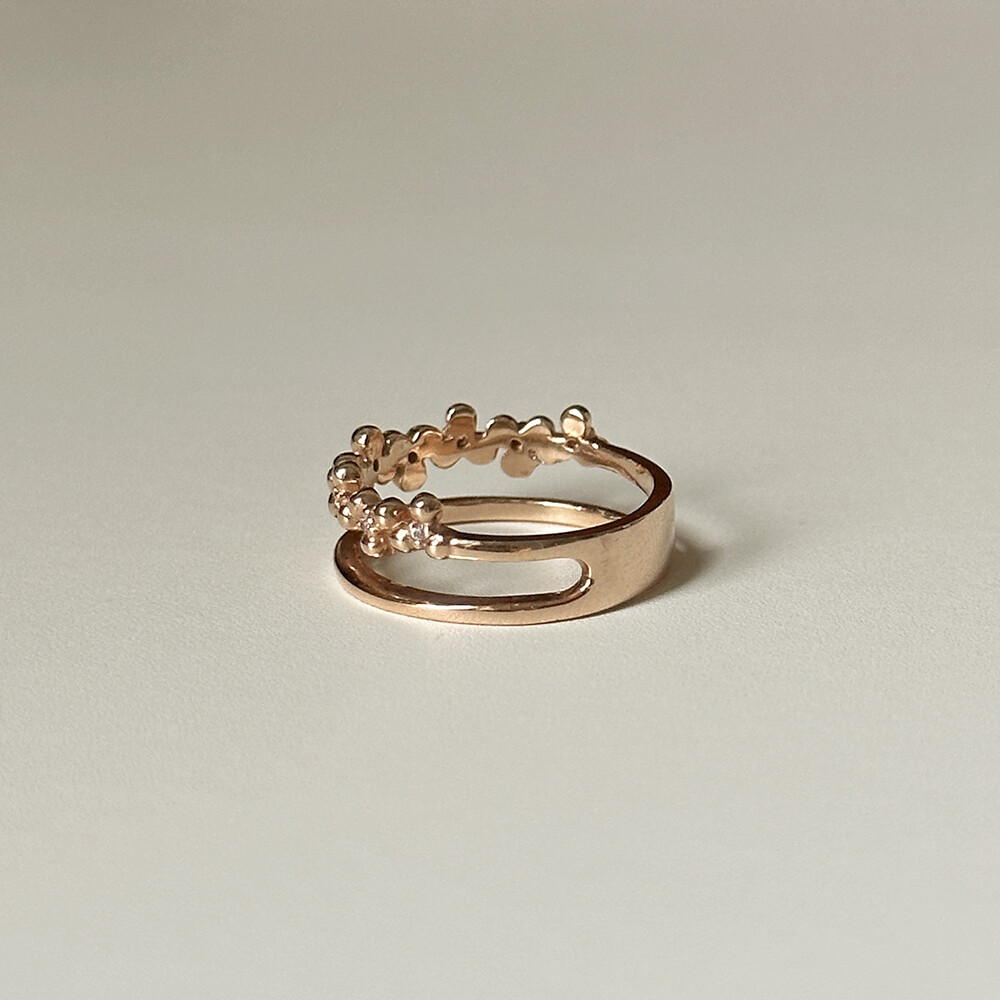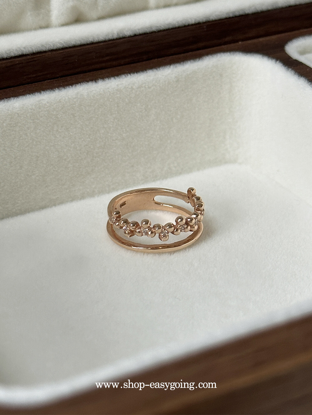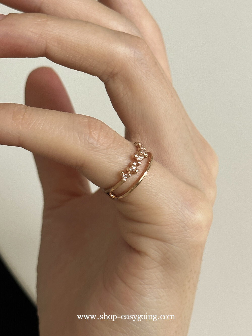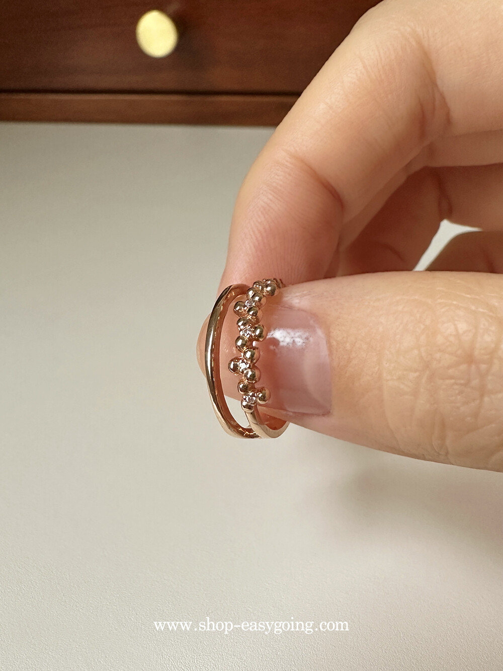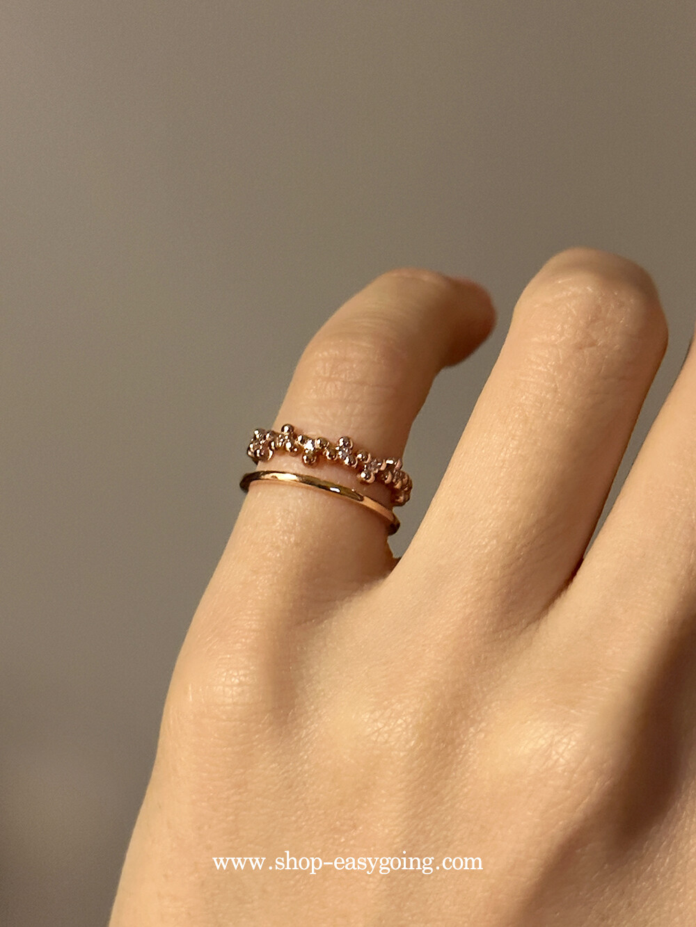 - 잔잔한 버블 디자인에 큐빅이 콕콕 박혀 반짝임도 놓치지 않은 제품이에요 두 줄 라인이라 더욱 입체적이고 애끼반지만 착용해도 포인트가 확실하게 되어주는 제품이랍니다:)