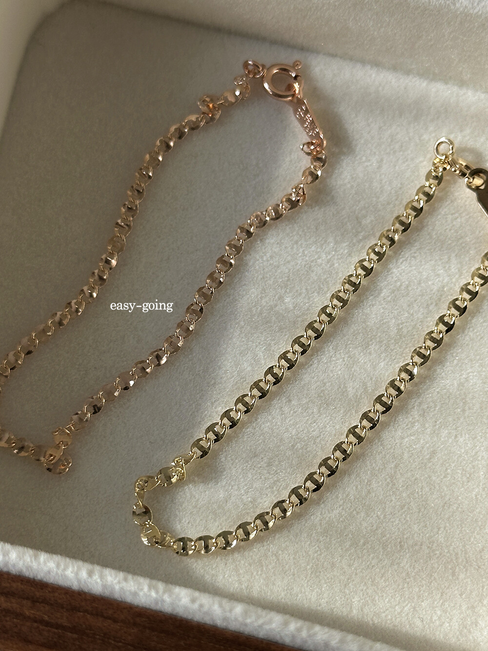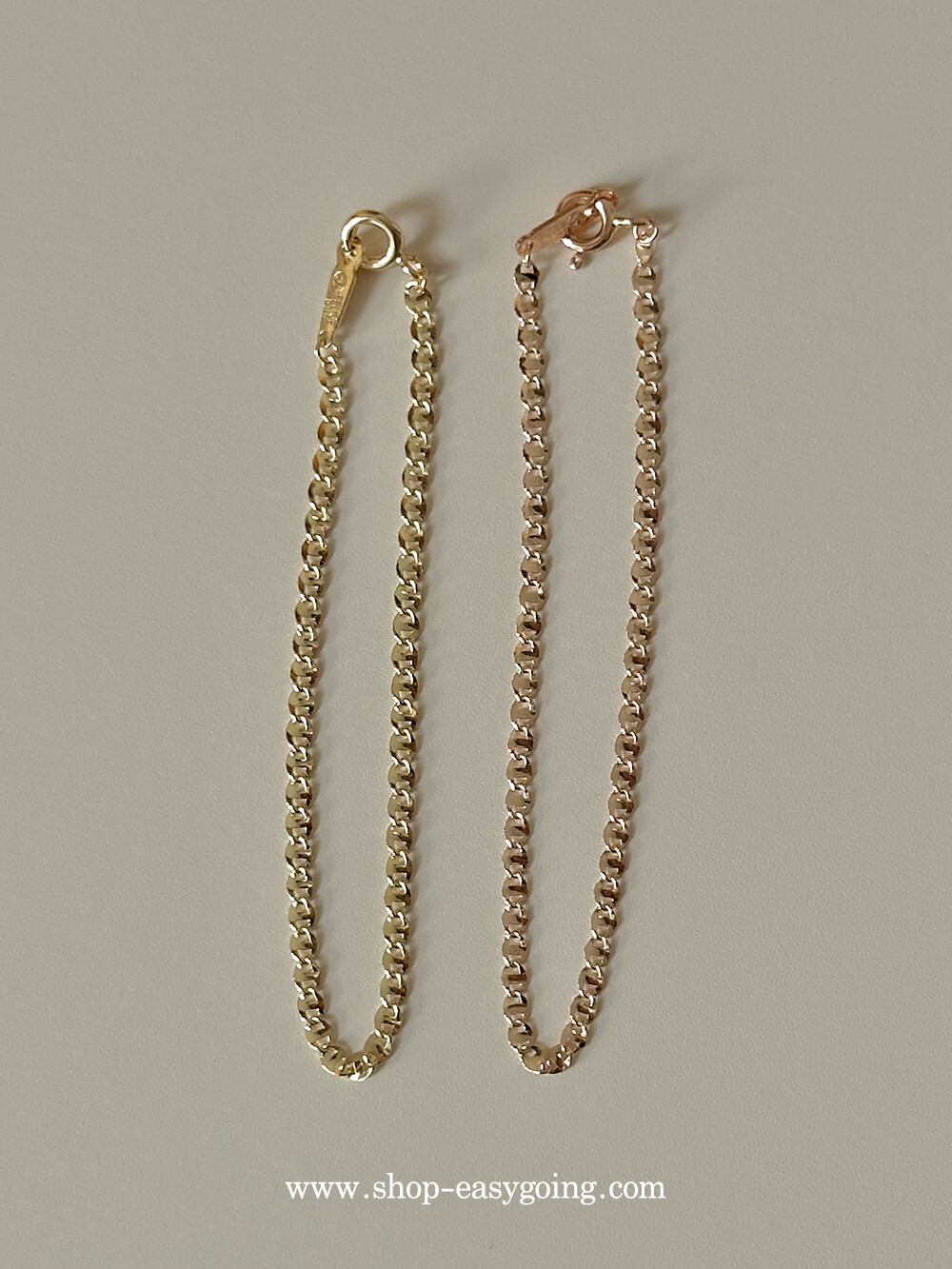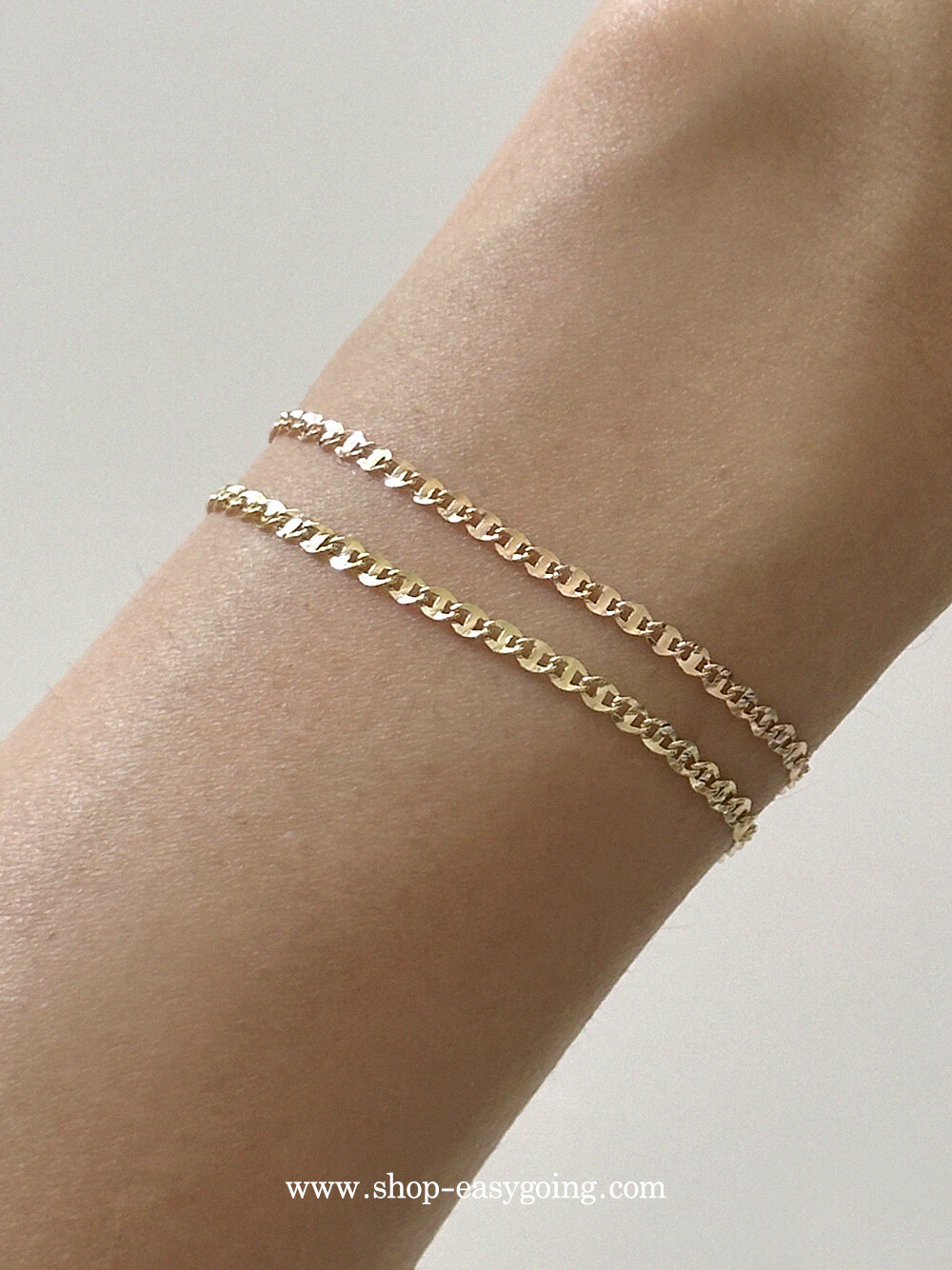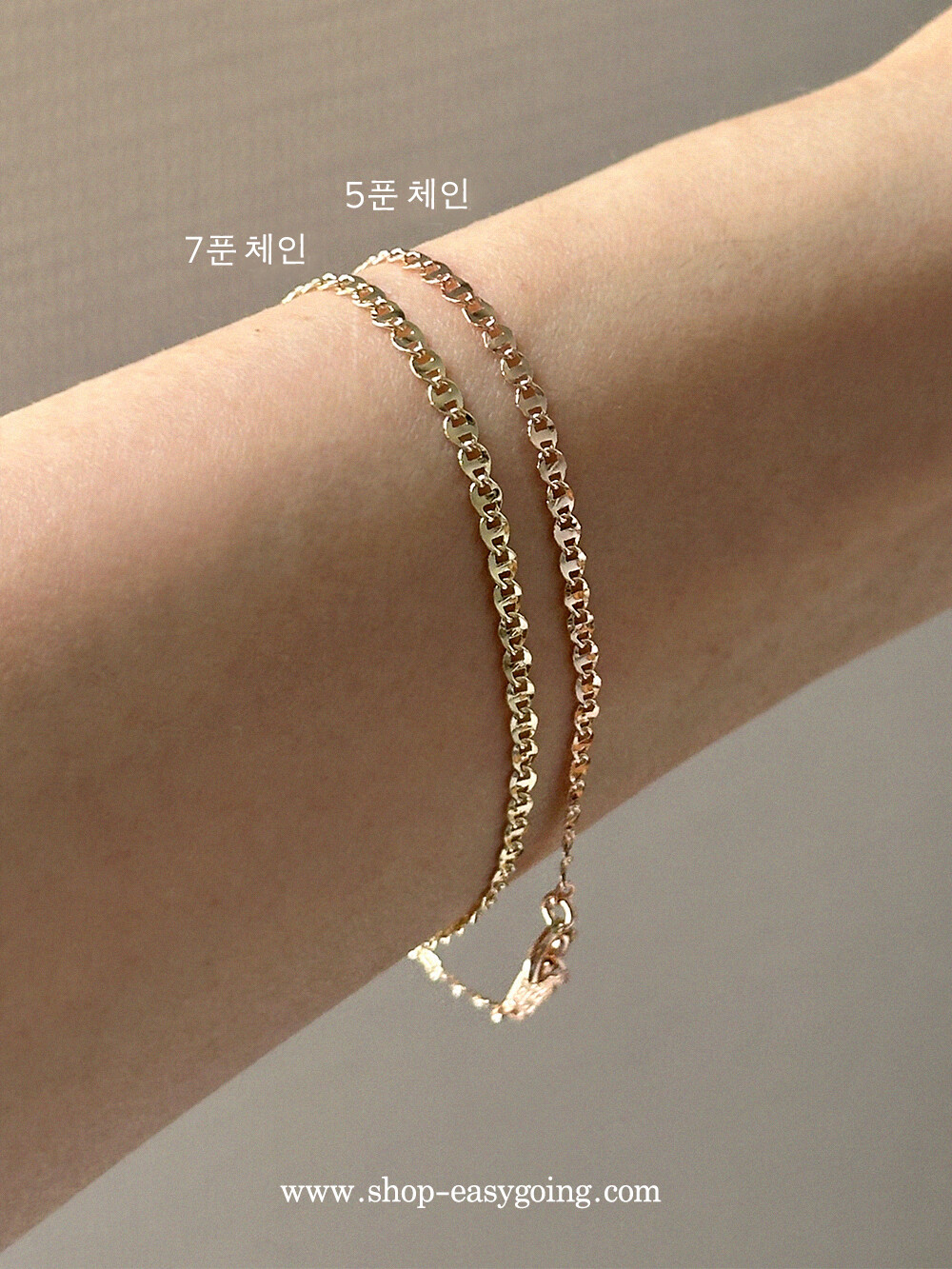- 플랫한 디자인으로 손목에 가볍게 감기는 체인팔찌예요 금값이 부담스러운 시기에 실용적인 가격으로 소장하기 좋은 제품이랍니다:)