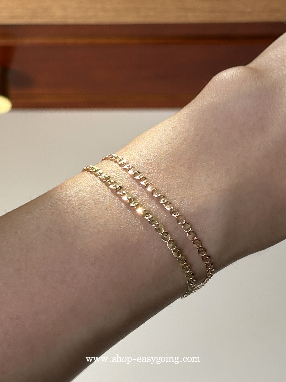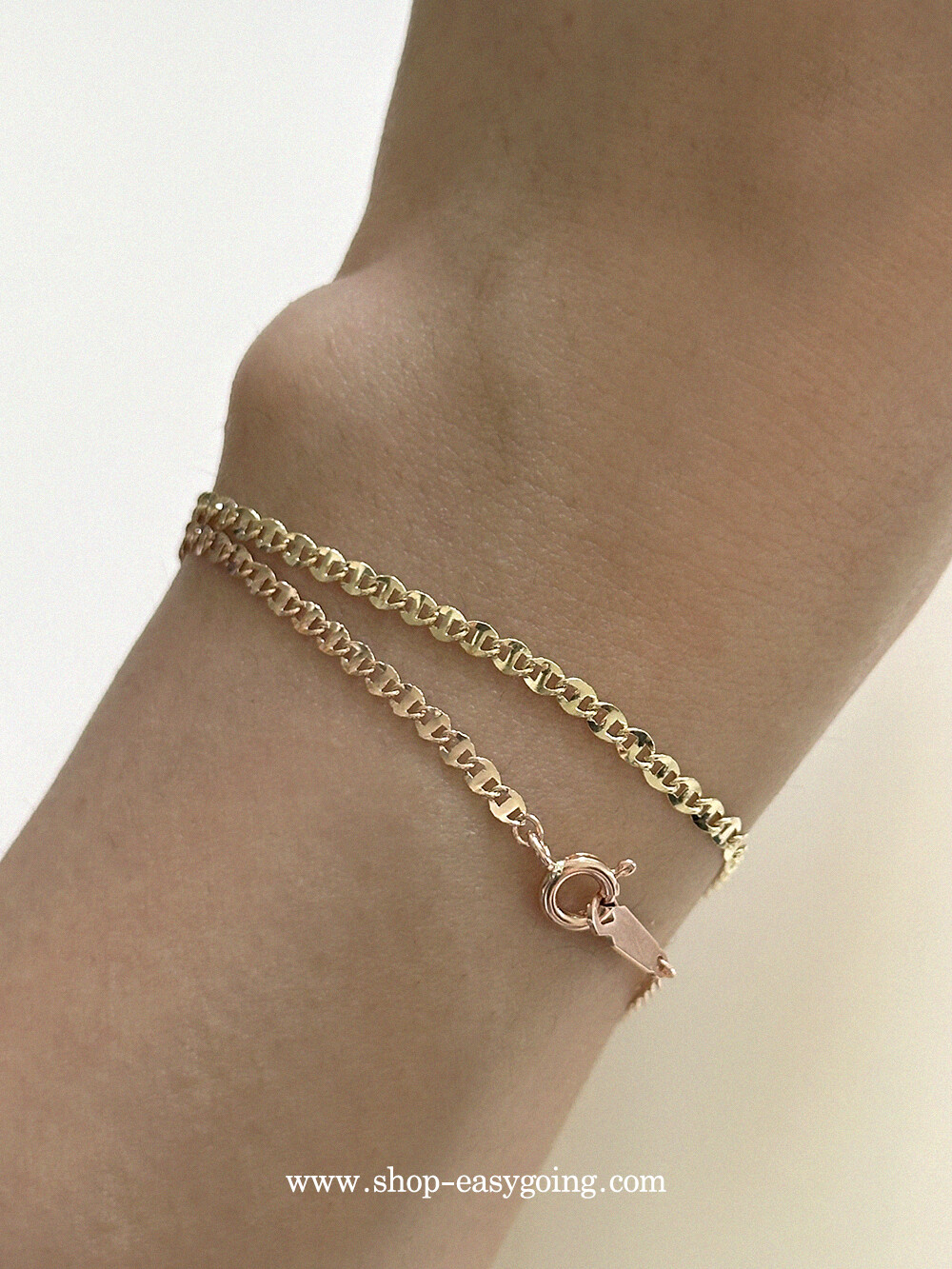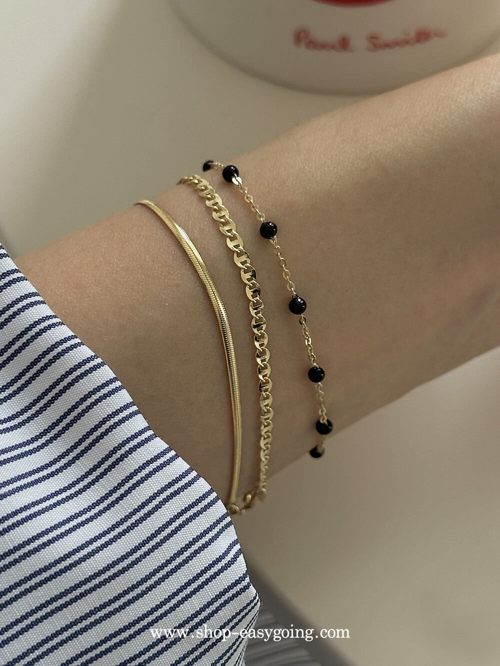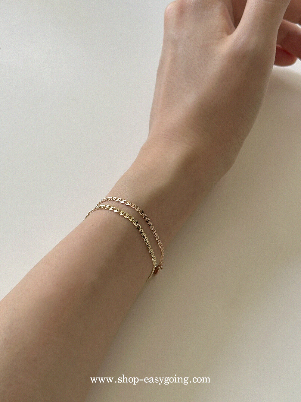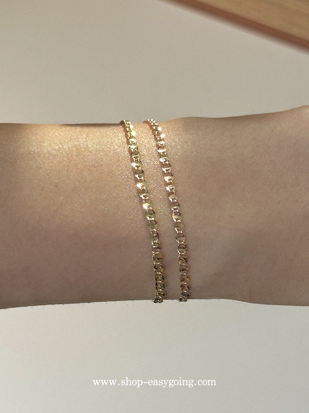 - 플랫한 디자인으로 손목에 가볍게 감기는 체인팔찌예요 금값이 부담스러운 시기에 실용적인 가격으로 소장하기 좋은 제품이랍니다:)