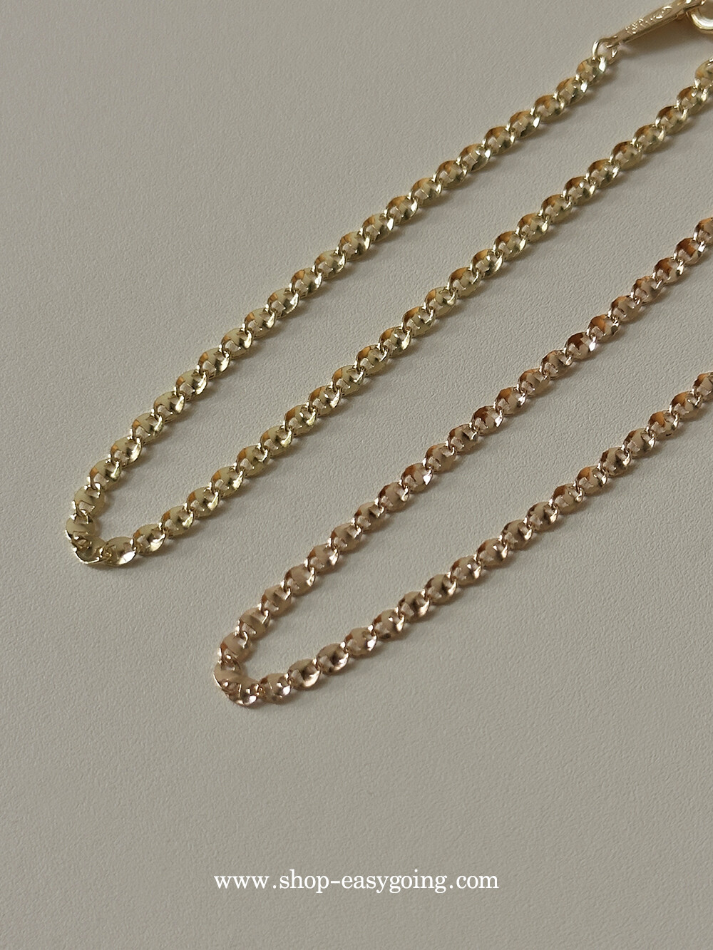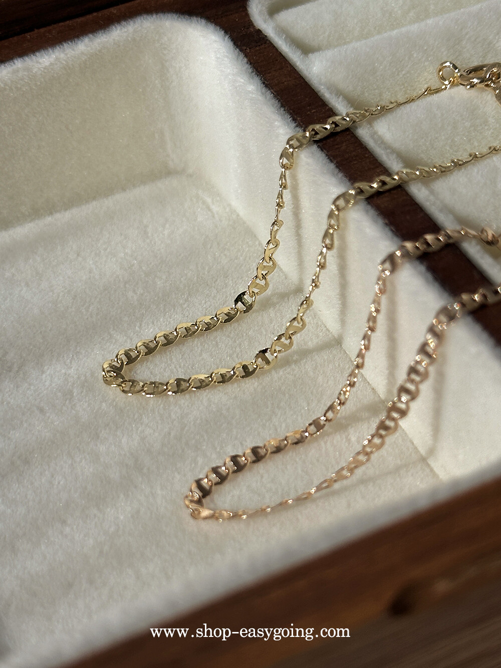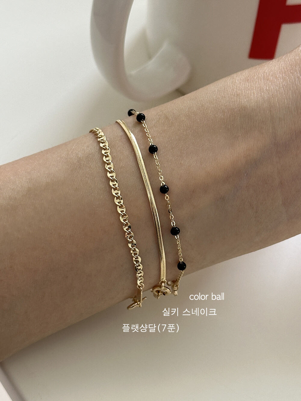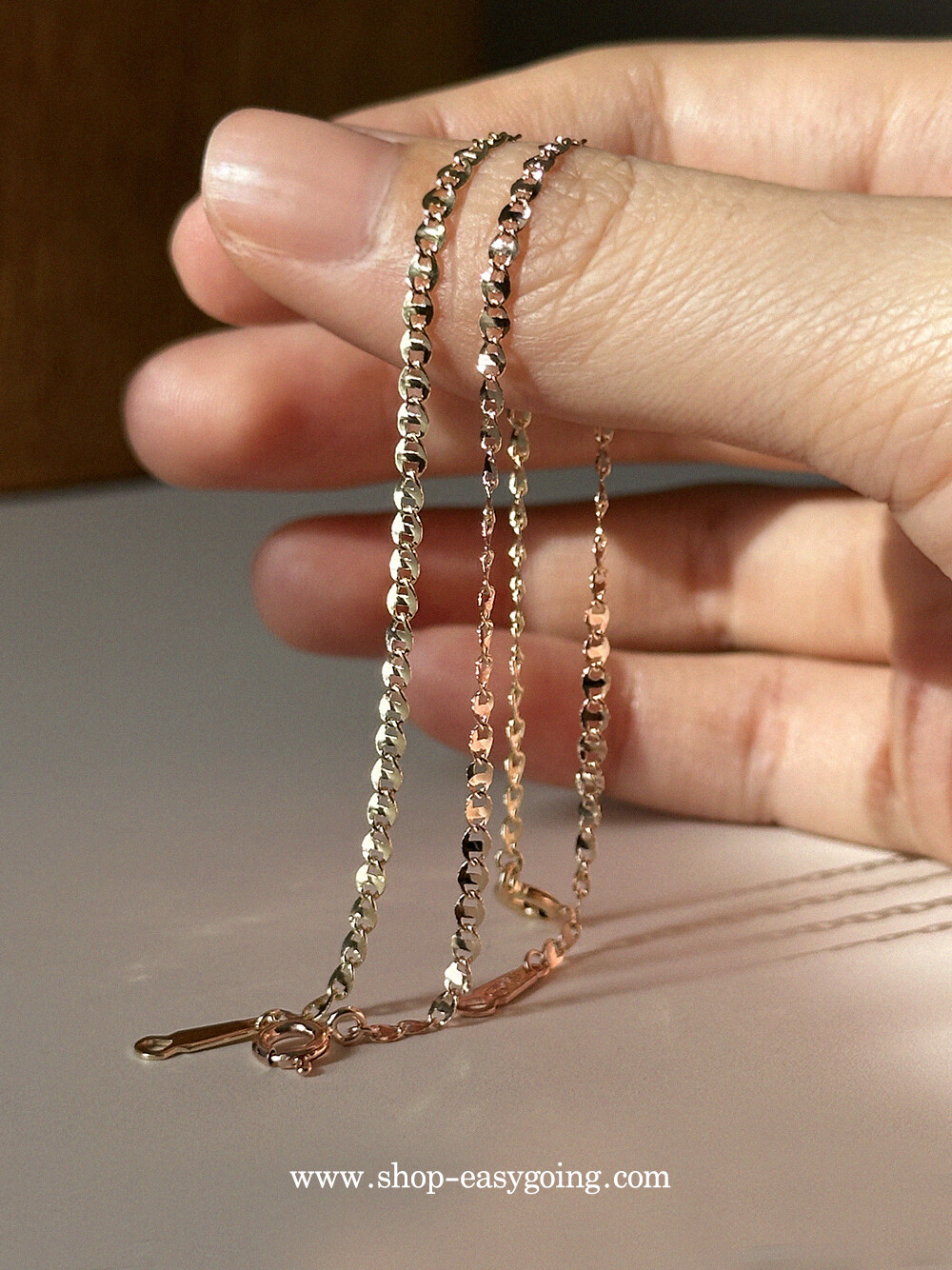 - 플랫한 디자인으로 손목에 가볍게 감기는 체인팔찌예요 금값이 부담스러운 시기에 실용적인 가격으로 소장하기 좋은 제품이랍니다:)