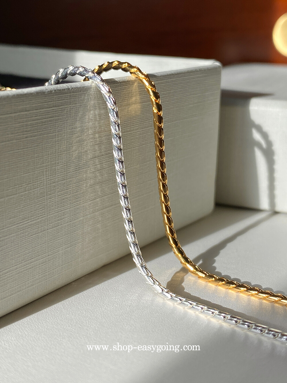 14k,18k gold 및 귀금속 : 금은 열에 약하고 무른편에 속하는 소재이므로 제품관리시 유의해 주세요. 특히 얇은 체인은 힘에 의해 끊어 질 수 있습니다 이 부분은 a/s가 불가하니 착용시 조심해 주세요. 또한 변함없이 착용이 가능한 소재이지만 겉면의 스크레치, 염소성분, 염분에 의해 광택이 사라지고 탁해질 수 있습니다. 초음파 세척이나 금세척으로 관리해주시면 광택을 오래 유지하실 수 있으며, 벗어 놓을 때는 마른 천으로 닦고 파우치에 담아 습하지 않은 곳에 보관하시는 게 좋습니다.