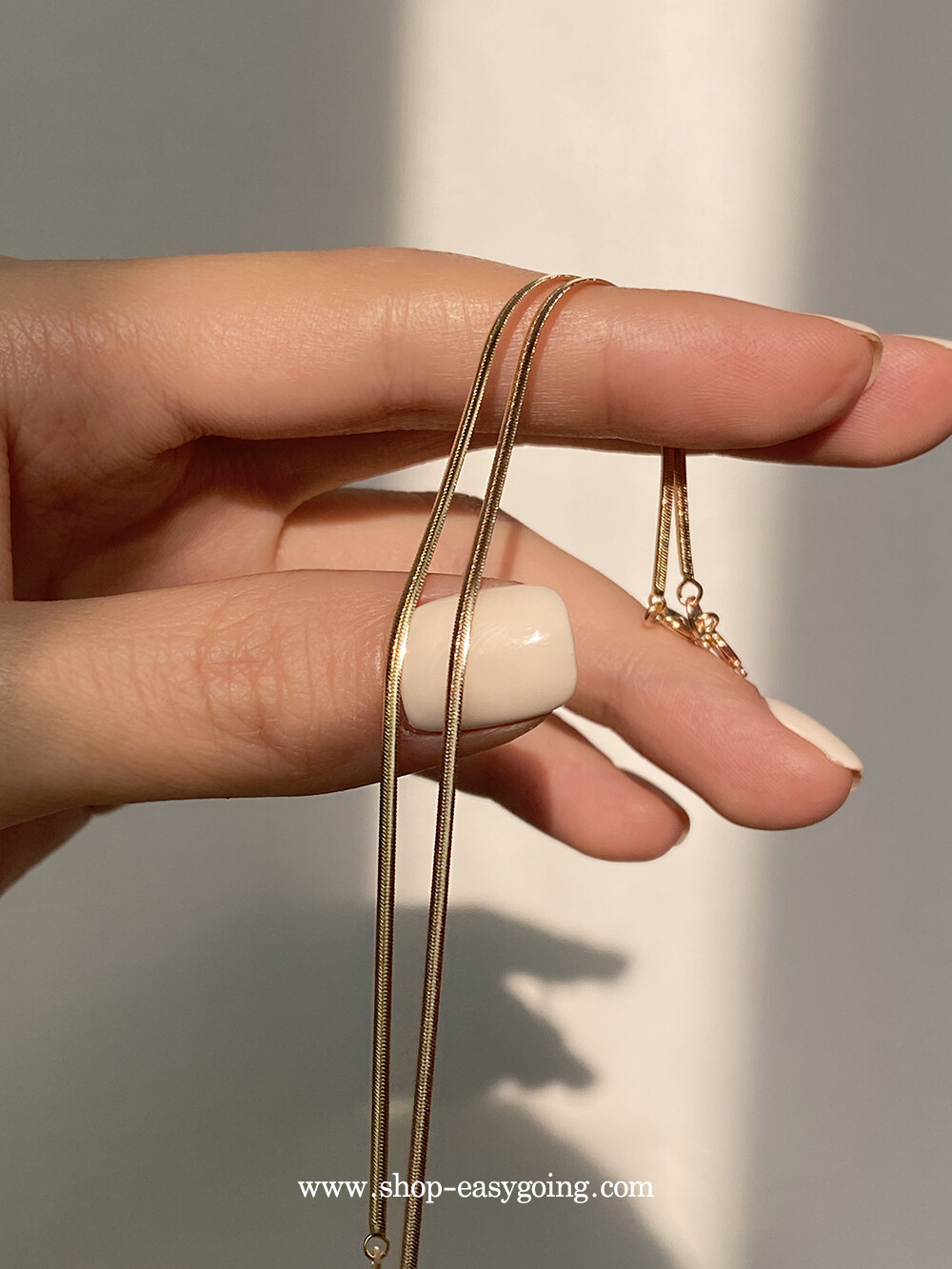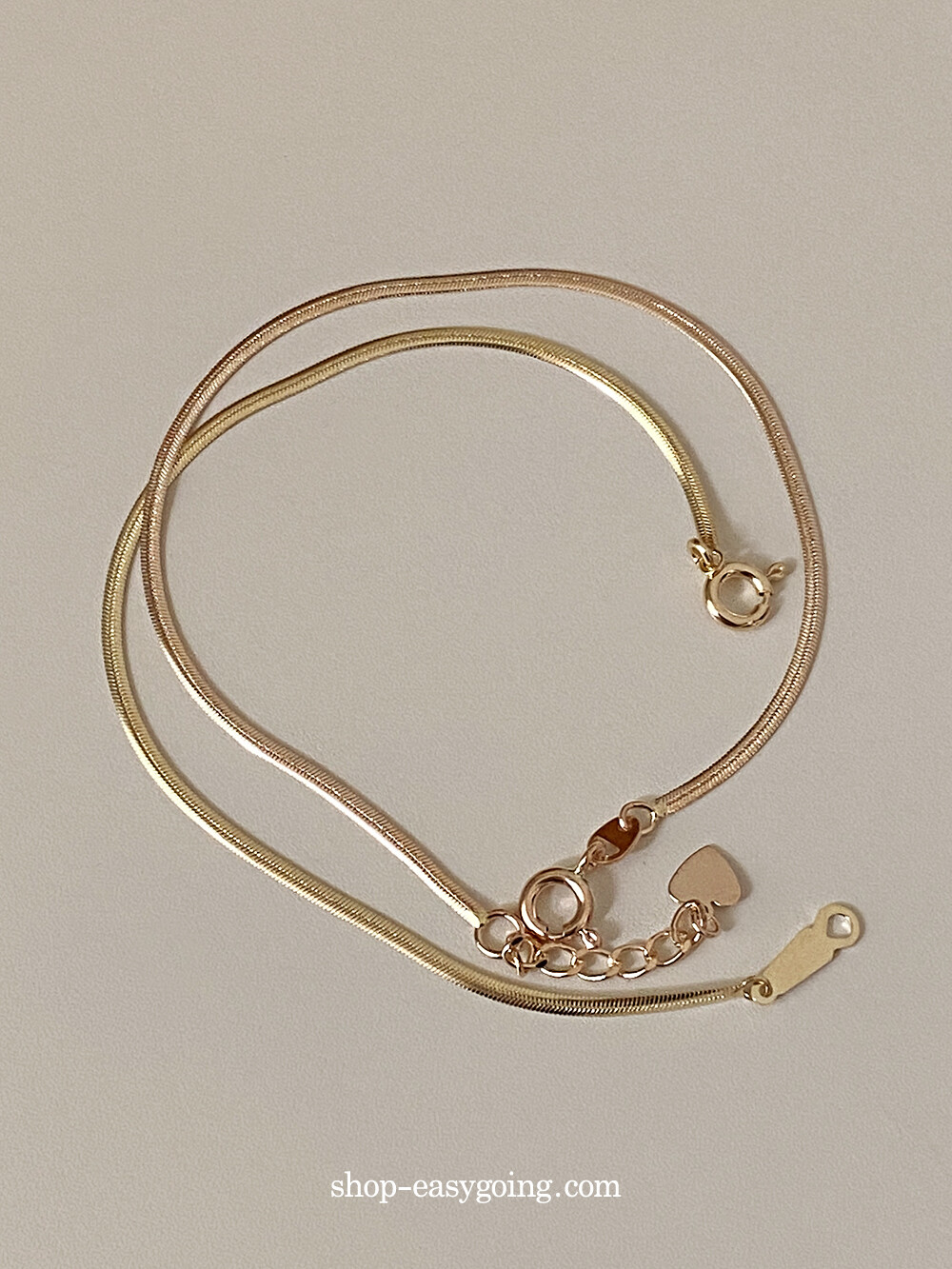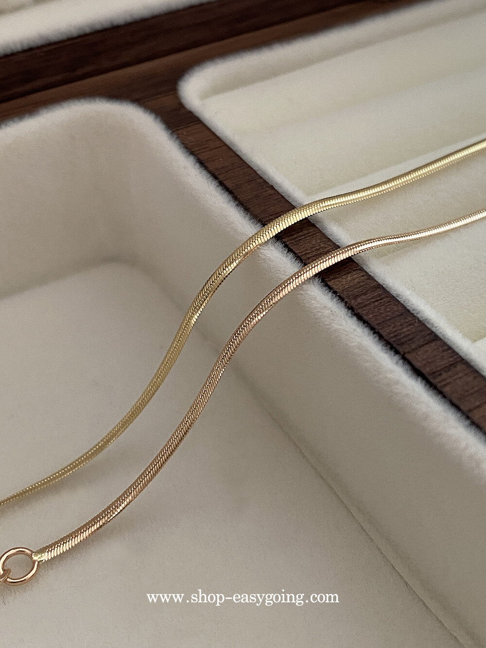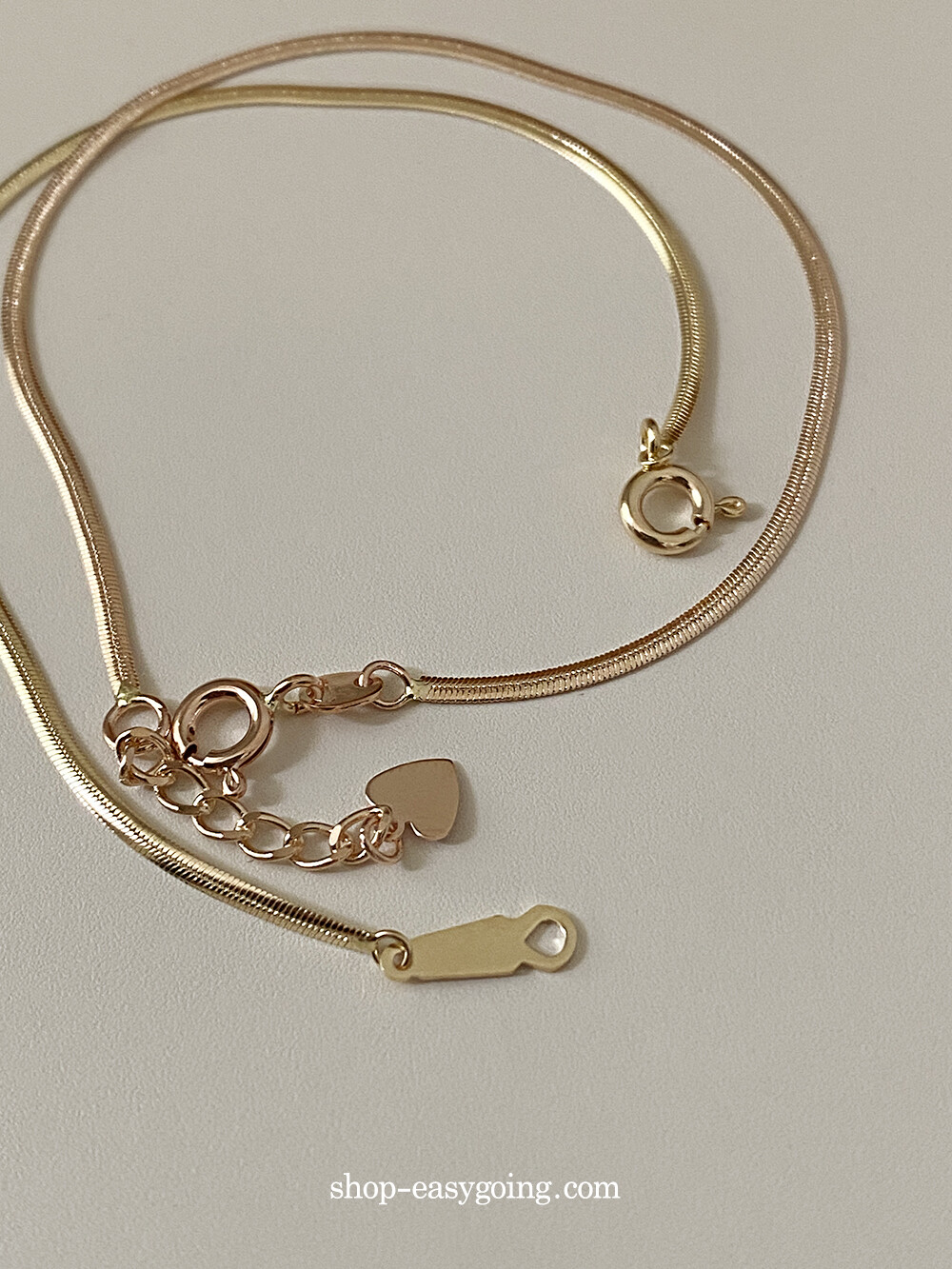 - 매끈하게 부드러운 착용감의 실키 스네이크 체인이에요 7푼 굵기 체인이라 너무 얇지도 두껍지도 않게 데일리로 딱 적당한 사이즈라 마음에 들었어요:)