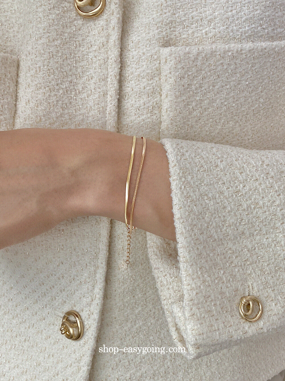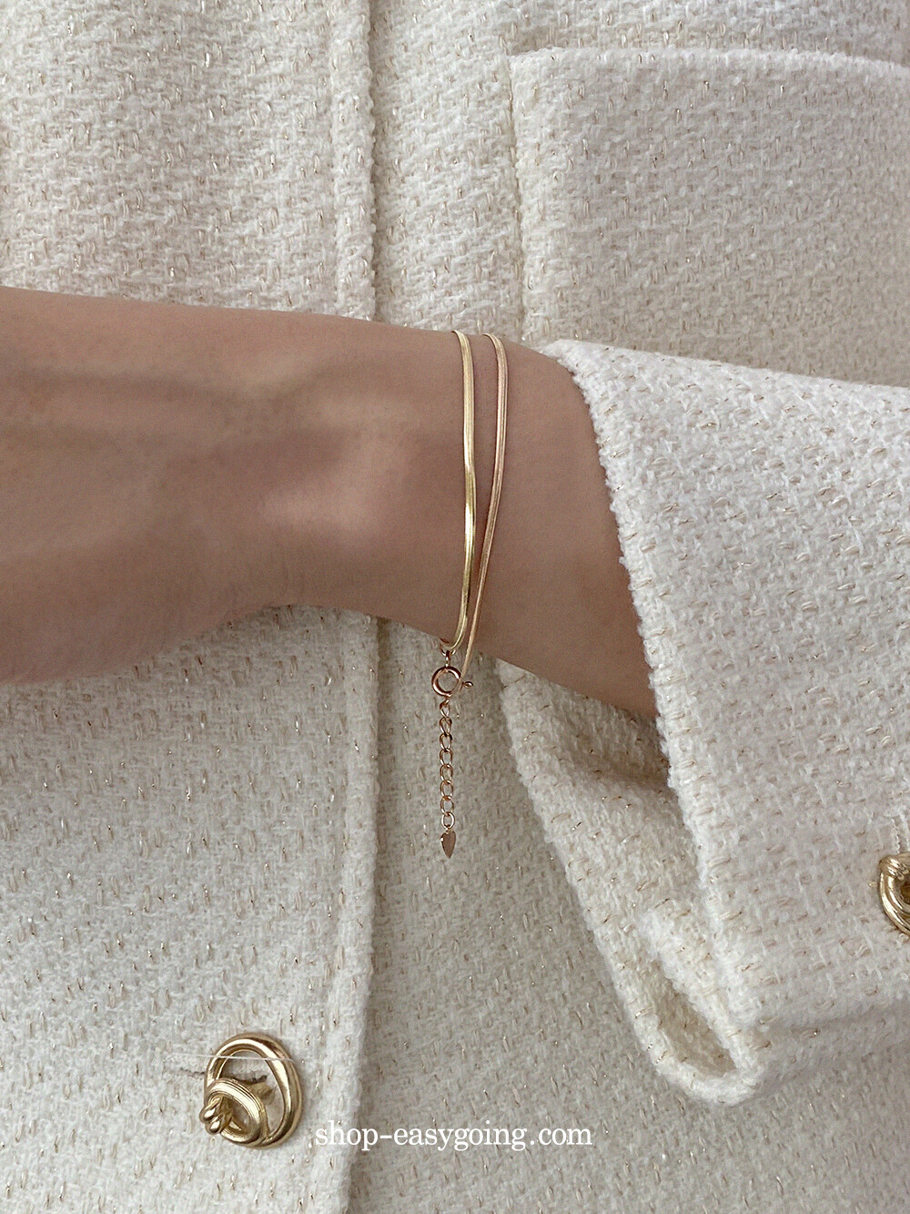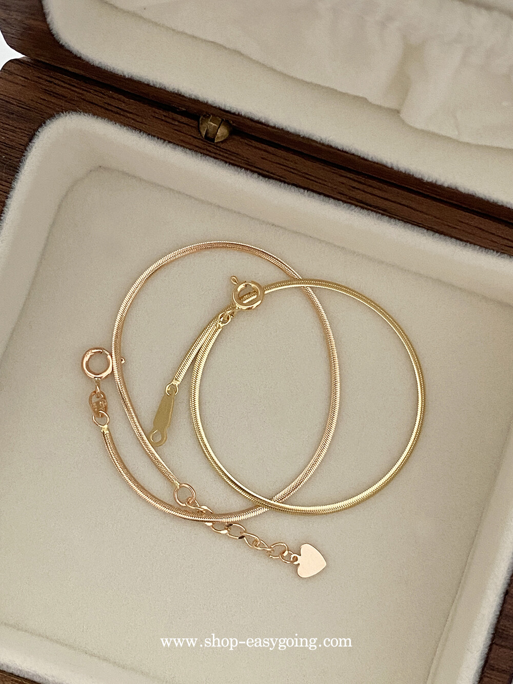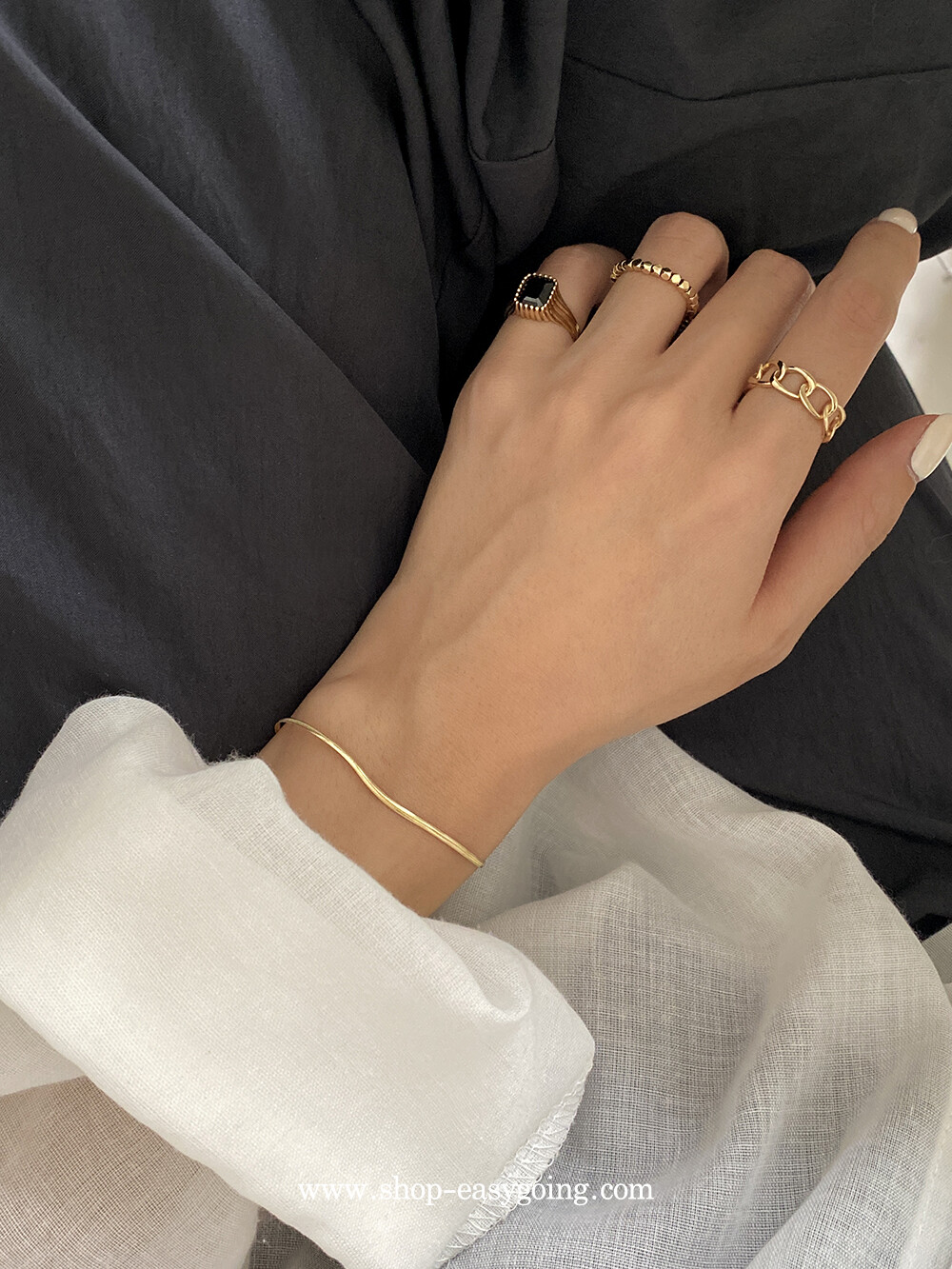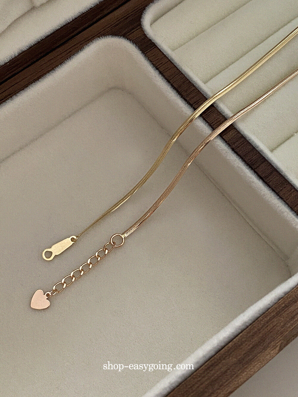 - 매끈하게 부드러운 착용감의 실키 스네이크 체인이에요 7푼 굵기 체인이라 너무 얇지도 두껍지도 않게 데일리로 딱 적당한 사이즈라 마음에 들었어요:)