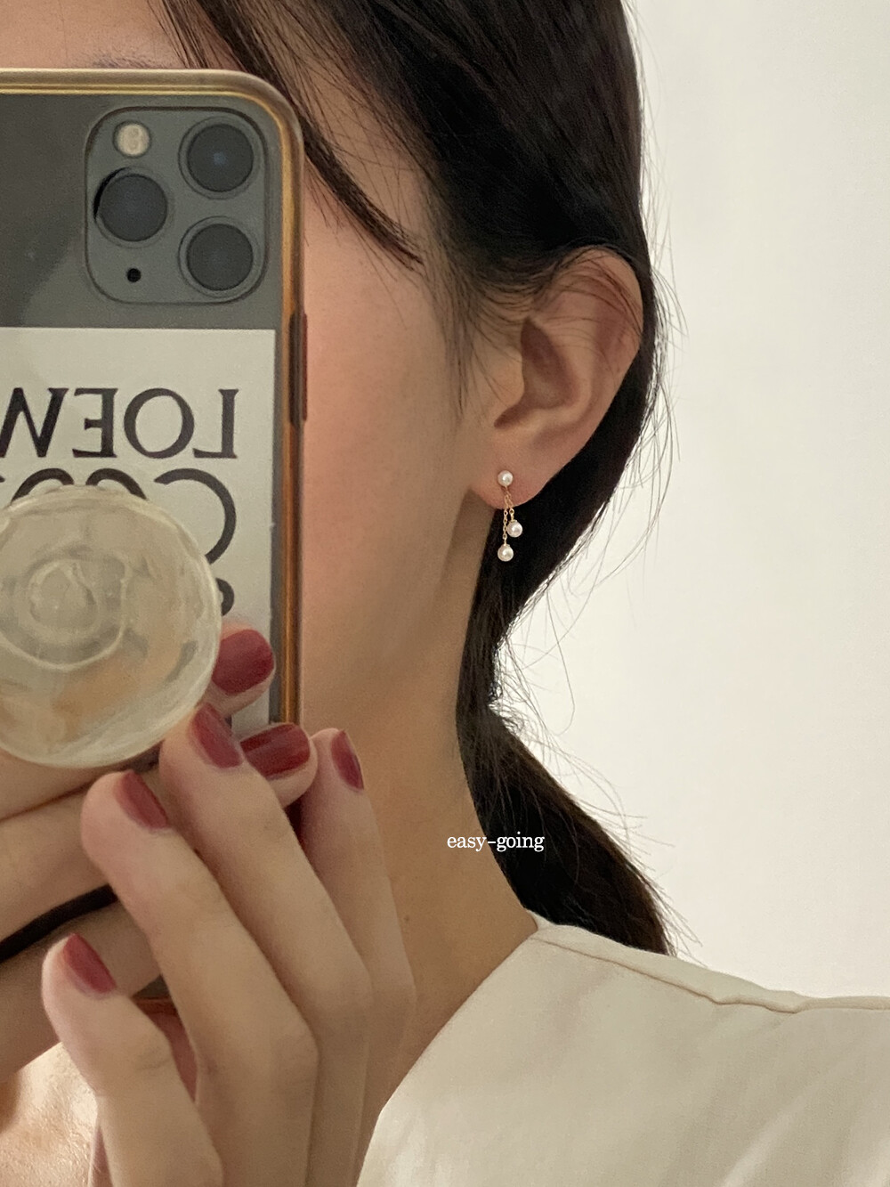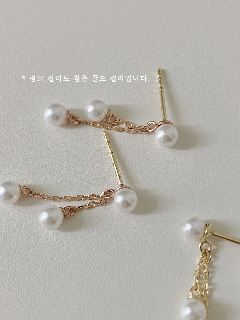 제품 공정상 어쩔 수 없는 부분 (미세한 스크레치와 얼룩, 925silver와 14k 제품의 살짝 휘어진 침, 담수 진주의 스크레치와 형태차이 등등 )에 의한 교환/반품은 불가함.