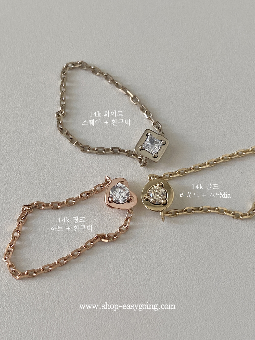 - 착용제품은 하트:14k핑크+큐빅/ 라운드(원형):14k골드+꼬냑DIA/ 스퀘어(사각):14k화이트+큐빅