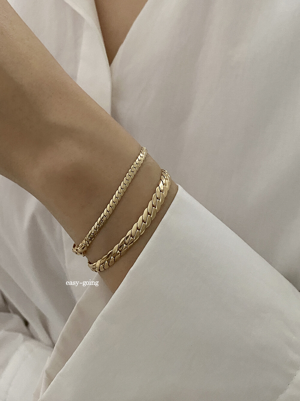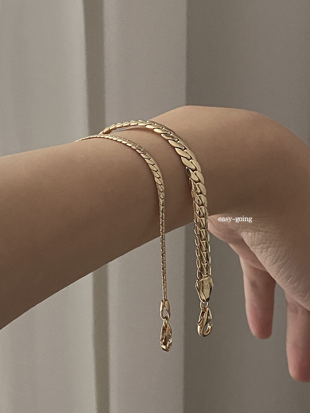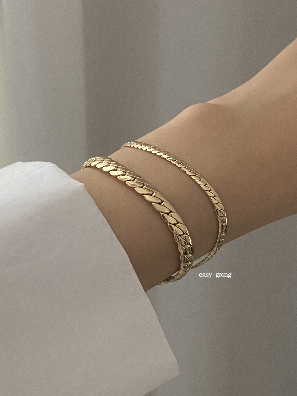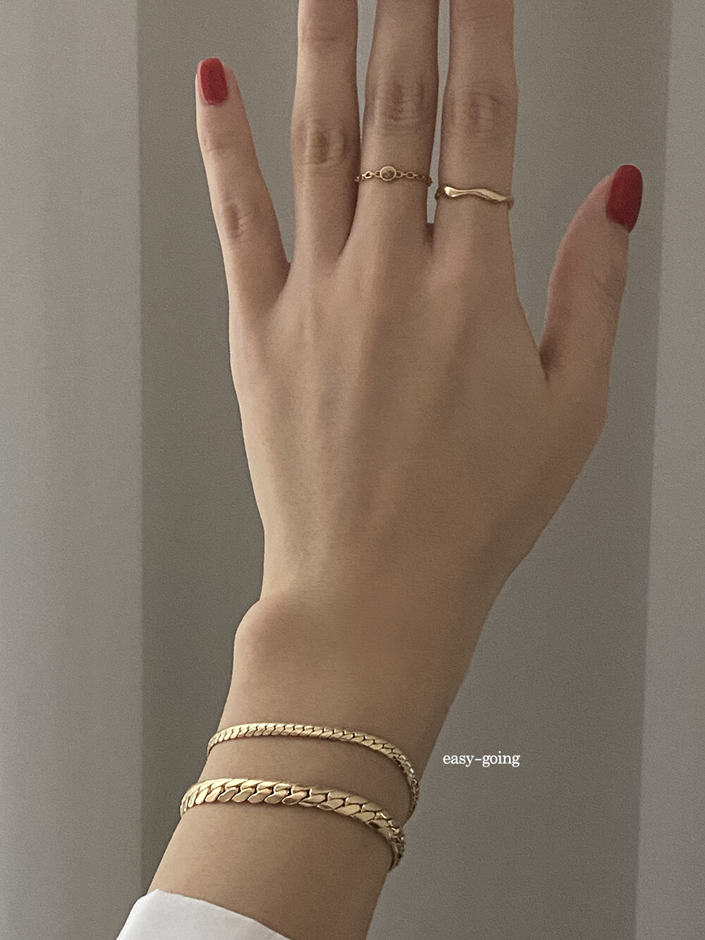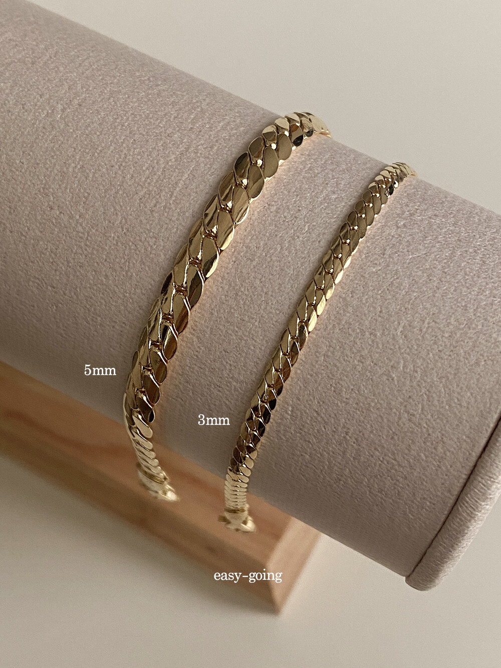 - 3mm 제품은 유연한 느낌으로 부드럽게 손목에 감기는 착용감이라면, 5mm는 유연함이 적고 작은 사이즈의 경우 뱅글처럼 형태가 고정된 느낌으로 착용이 되었어요. 기존 착용하시는 제품보다는 사이즈 여유있게 주문하시는 걸 추천드립니다.(사이즈가 작을 수록 뻣뻣하고 착용하시다 보면 조금씩 유연해집니다)