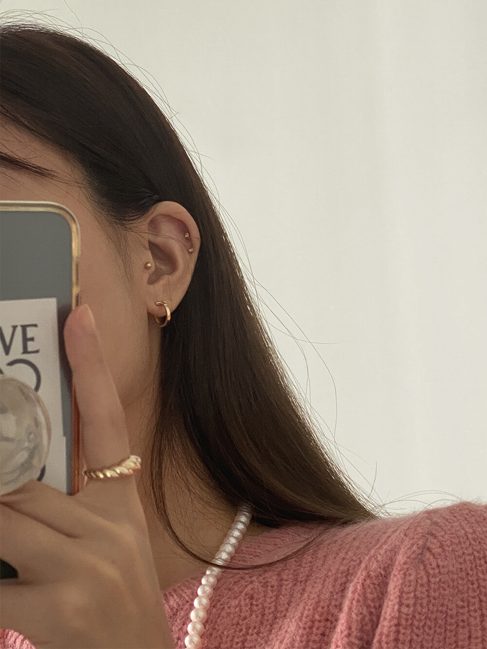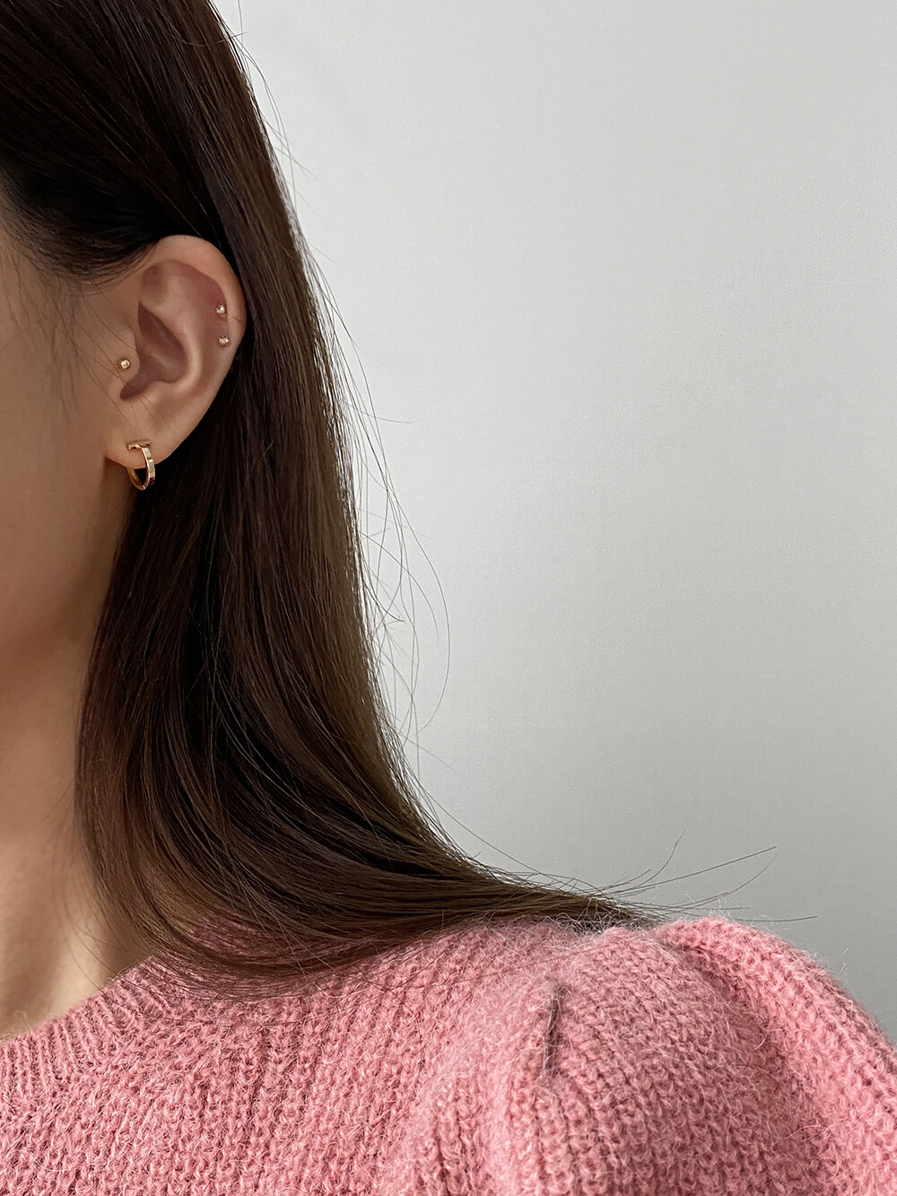 14k 금의 특성상 강하게 힘을 가하면 침 부분이 구부러 질 수 있으므로 위치를 잘 맞춘 후 가볍게 눌러 착용해주세요.