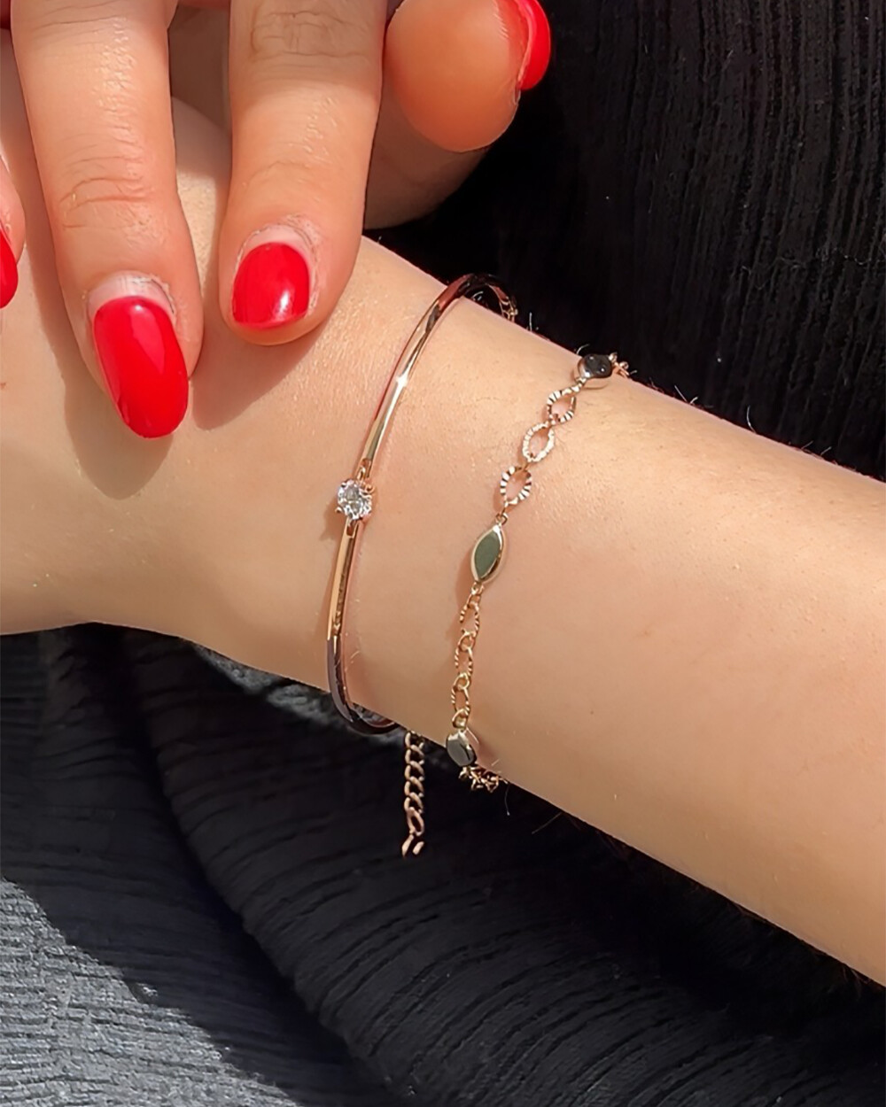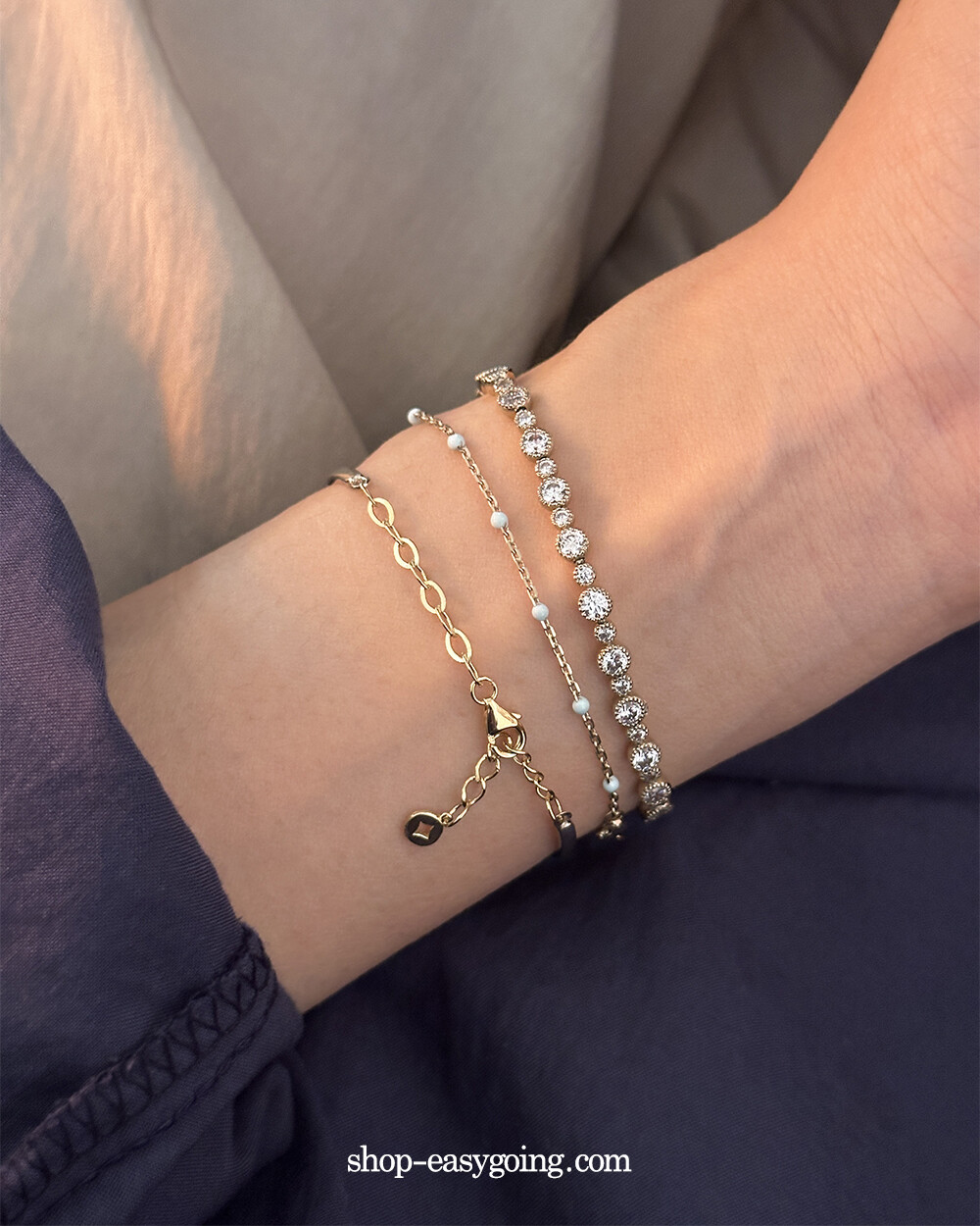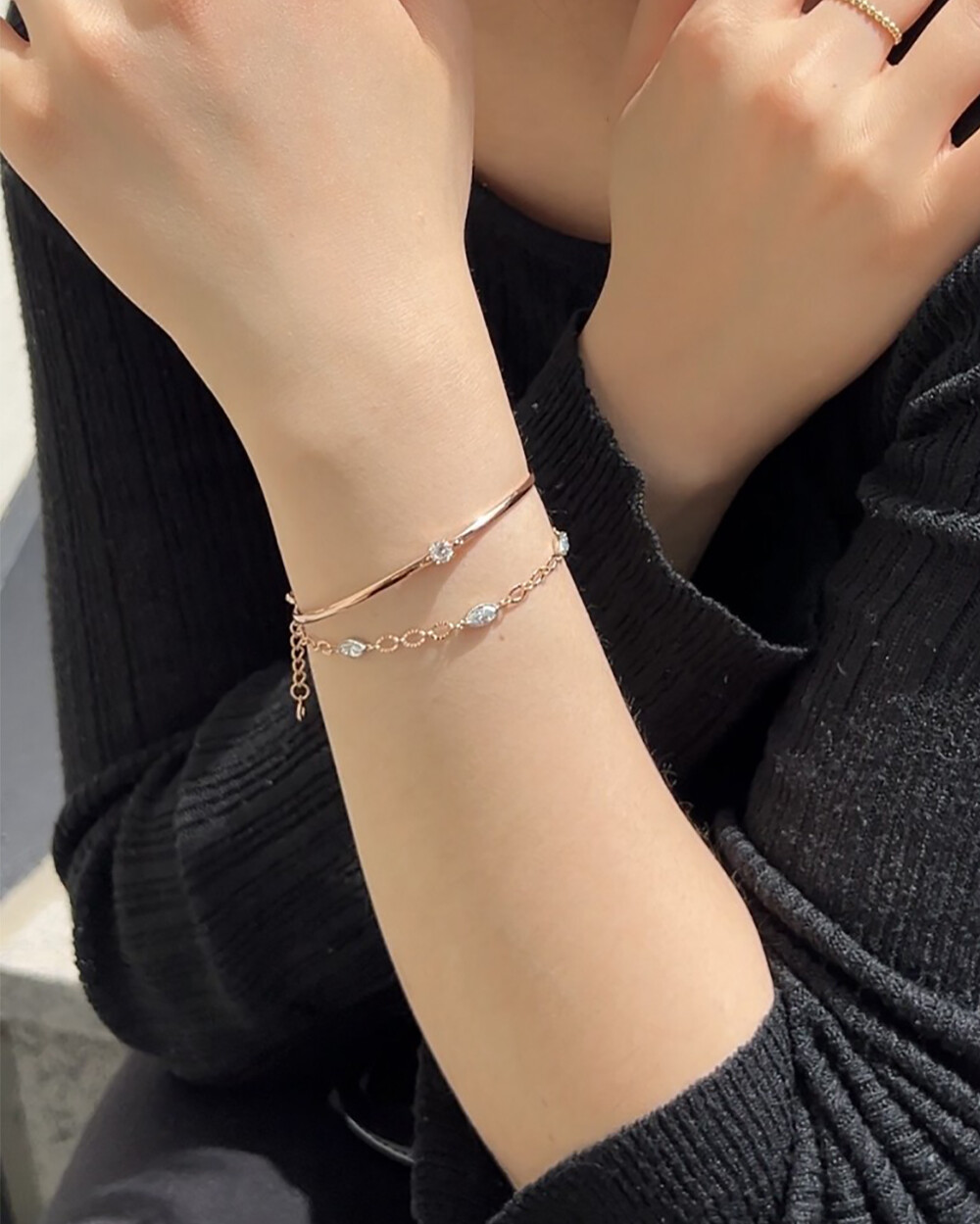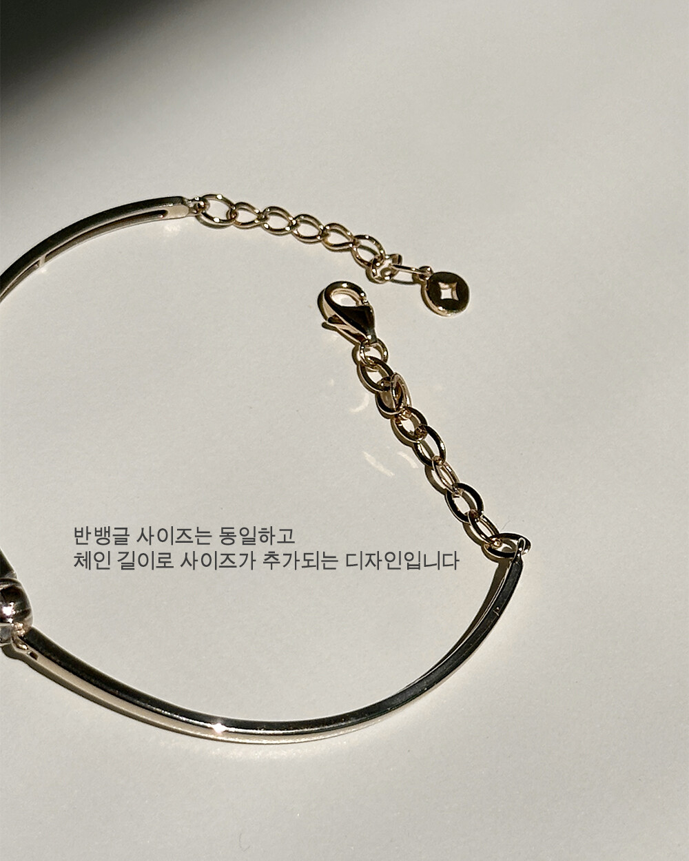 - 뱅글은 사이즈 변경이 자유롭지 않은데 이 제품은 체인으로 조절이 가능해서 뱅글 사이즈 애매하신 분들도 편안하게 착용하실 거예요