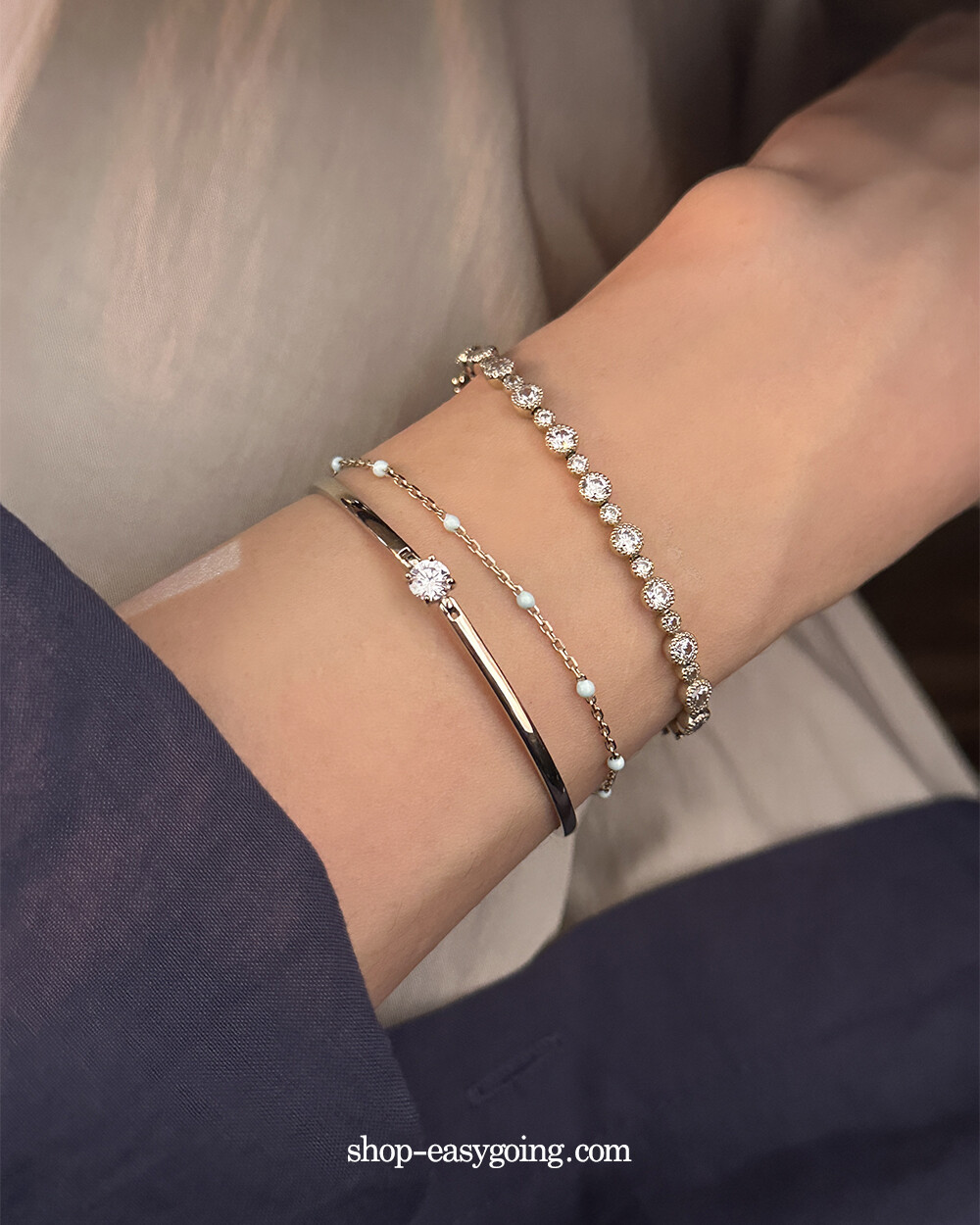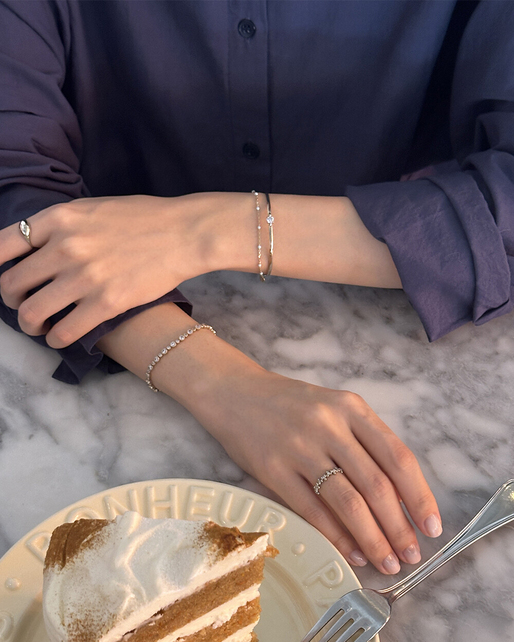 - 깔끔하게 연출되는 반뱅글 팔찌예요 4mm 큐가 화사하게 포인트가 되어주는데요 랩다이아로 변경도 가능해서 좀 더 퀄리티 있게 소장하실 수 있답니다