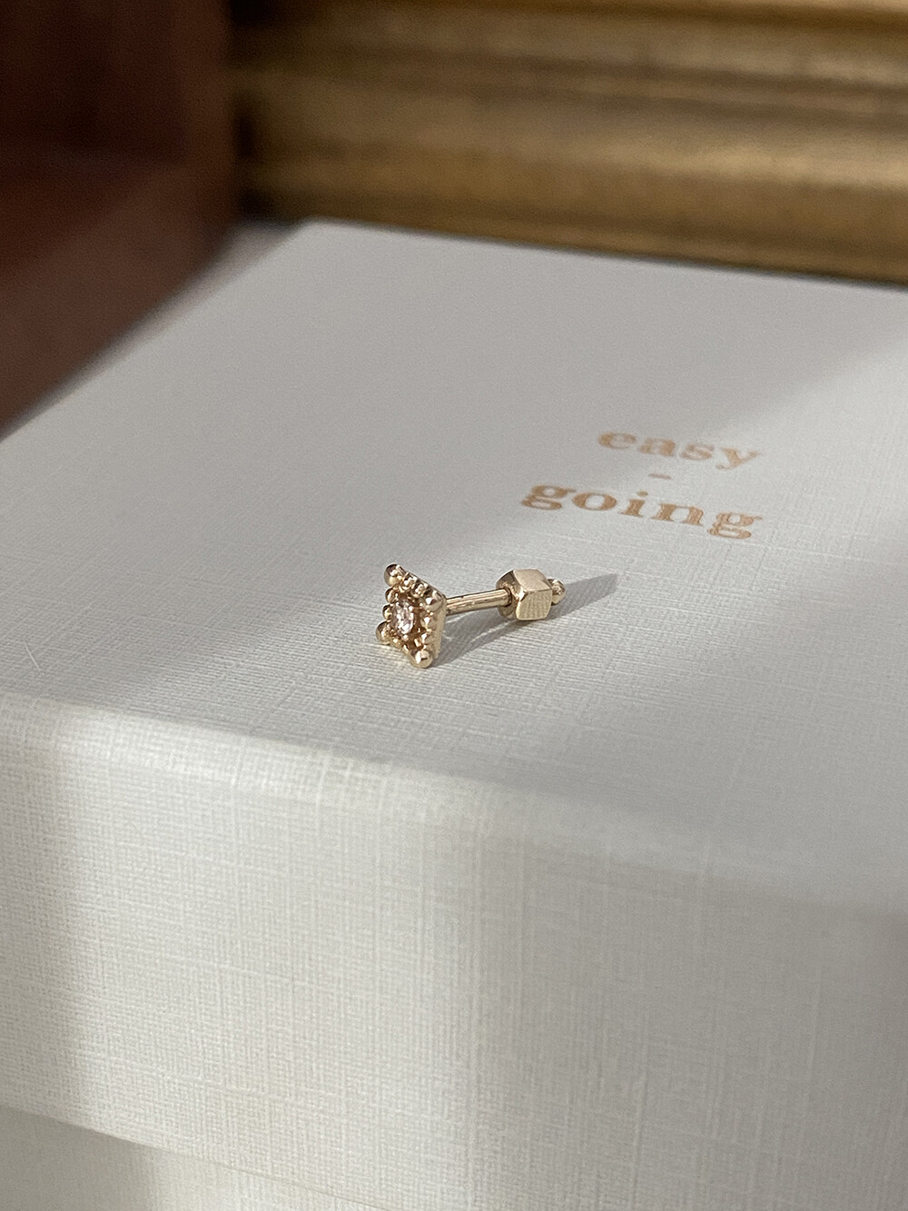 4mm 사각틀에 2mm 꼬냑다이아가 콕 박혀 반짝임이 좋았던 제품입니다.