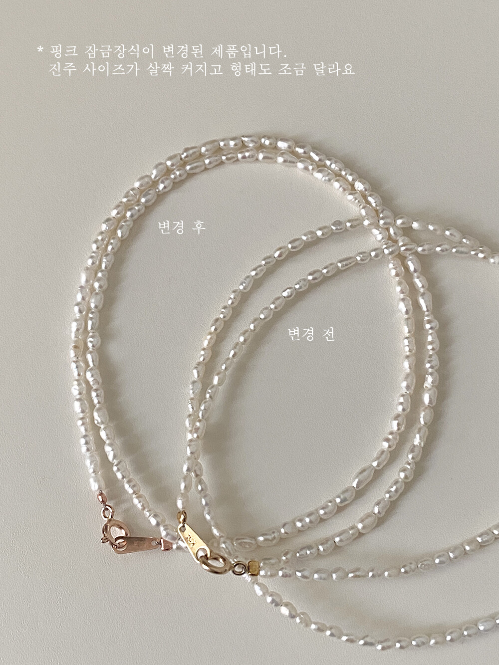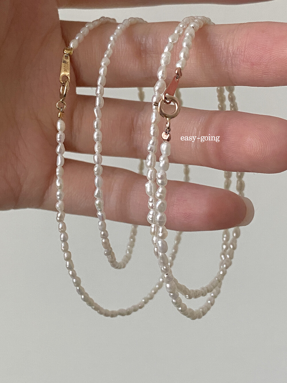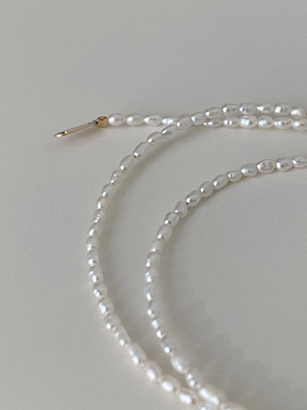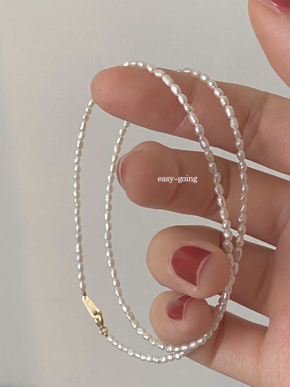 - 2mm사이즈의 밥풀 진주로 엮은 목걸이입니다. 아주 얇고 가볍게 착용하기 좋은 실용적인 제품이에요