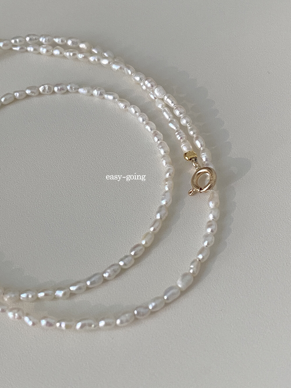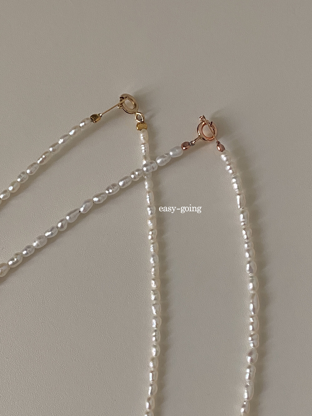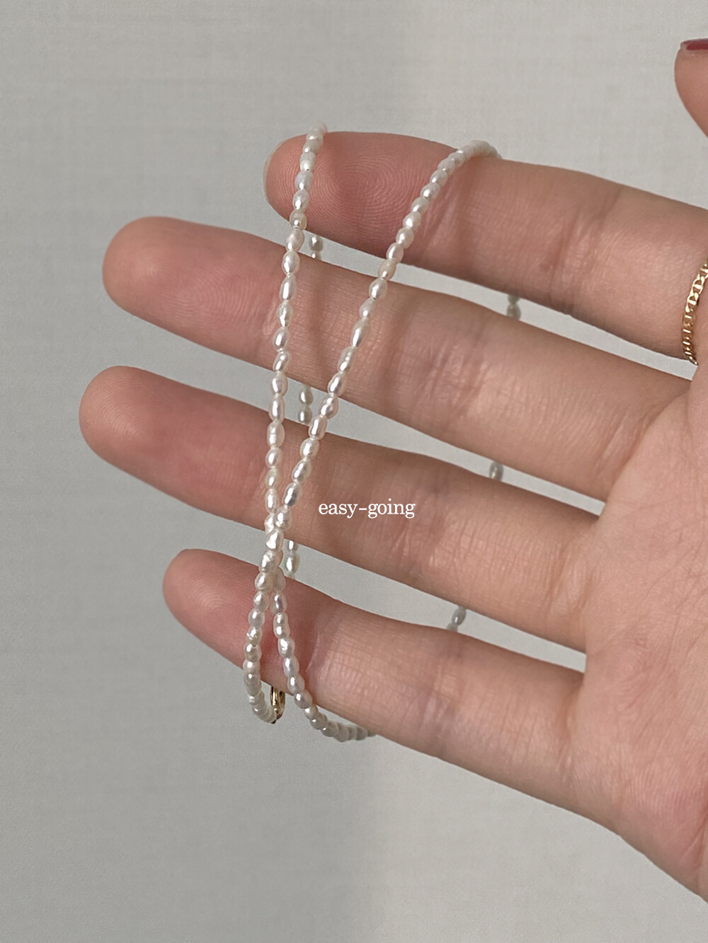 - 2mm사이즈의 밥풀 진주로 엮은 목걸이입니다. 아주 얇고 가볍게 착용하기 좋은 실용적인 제품이에요