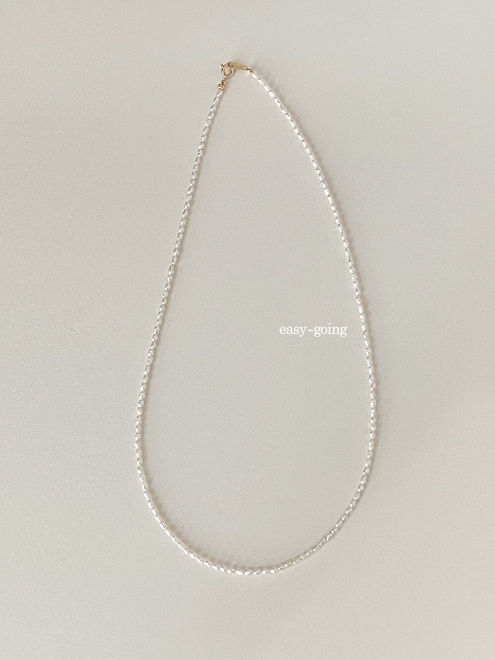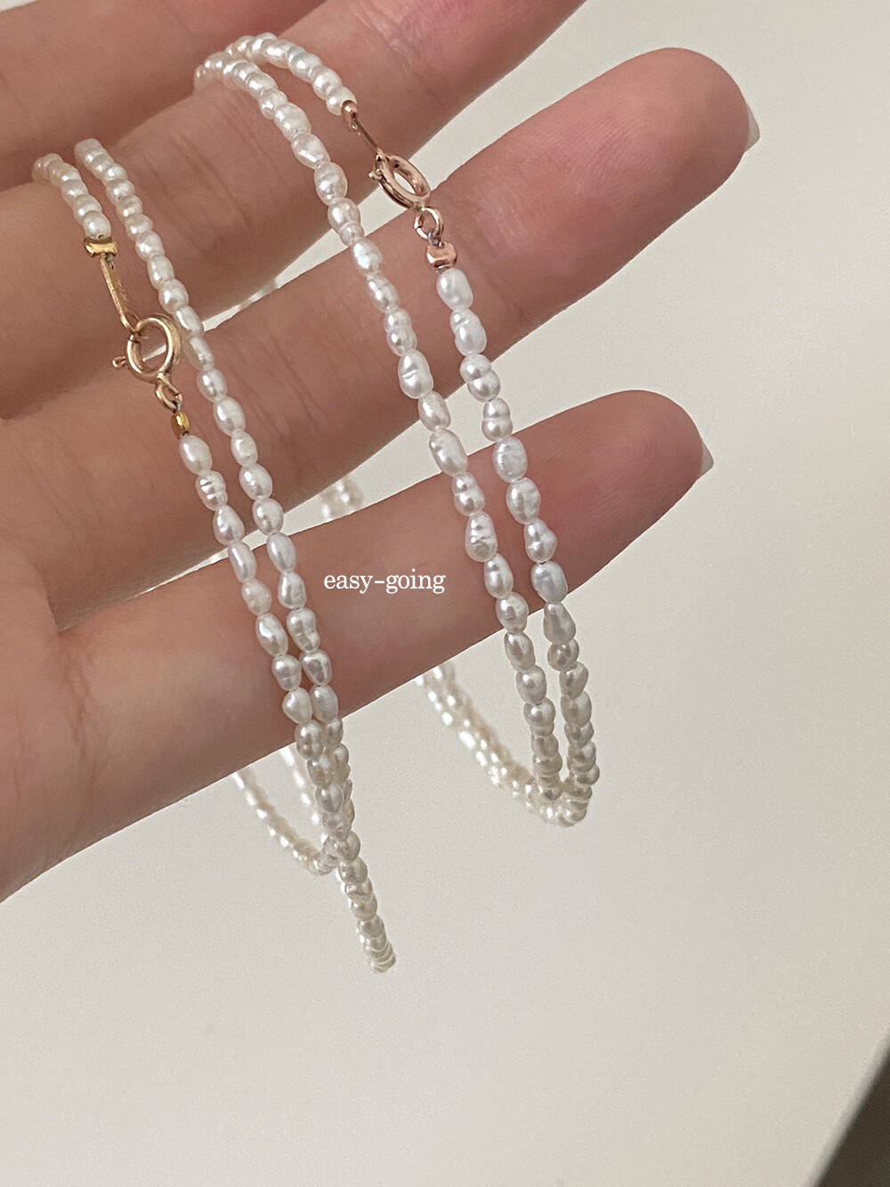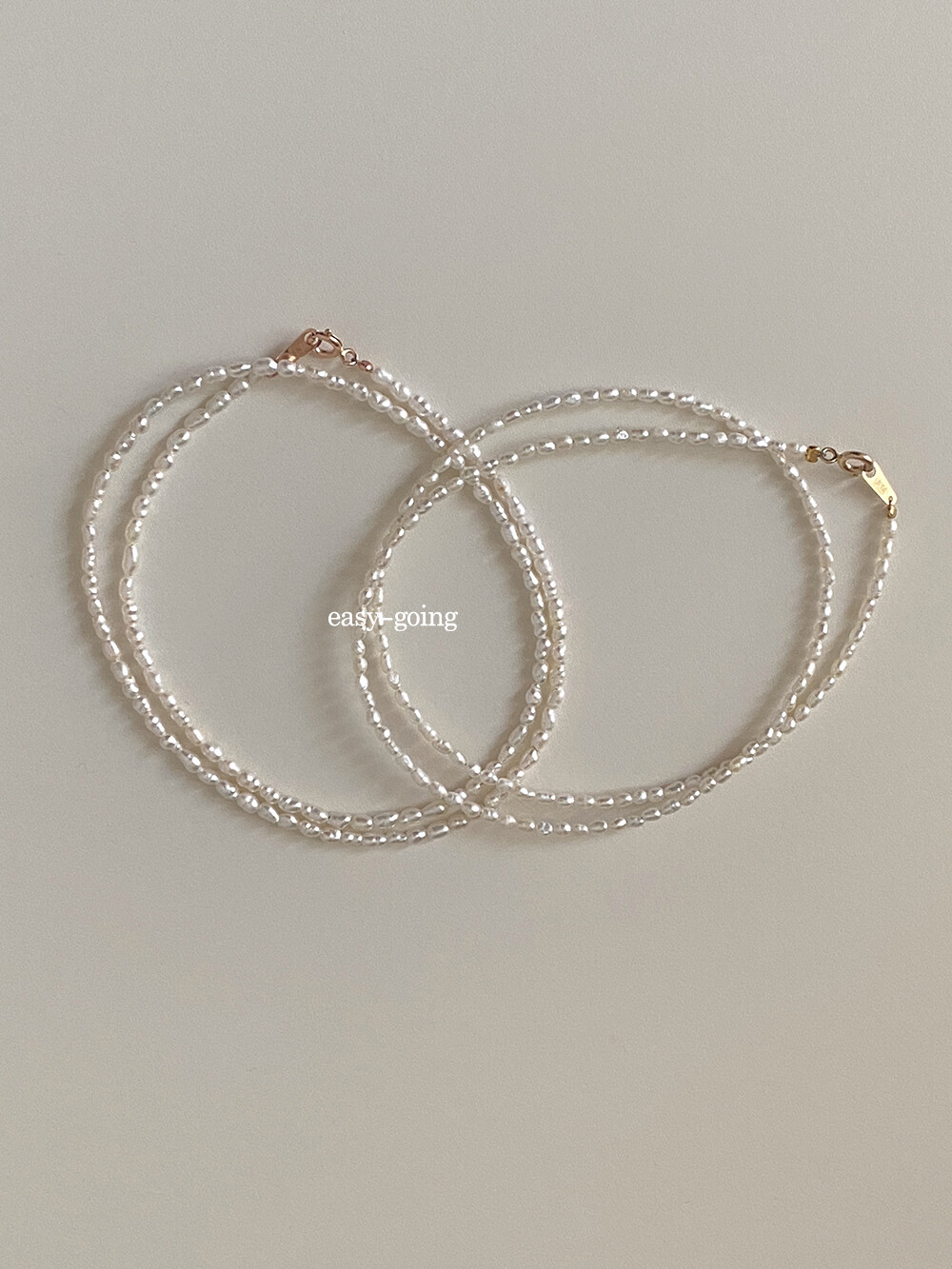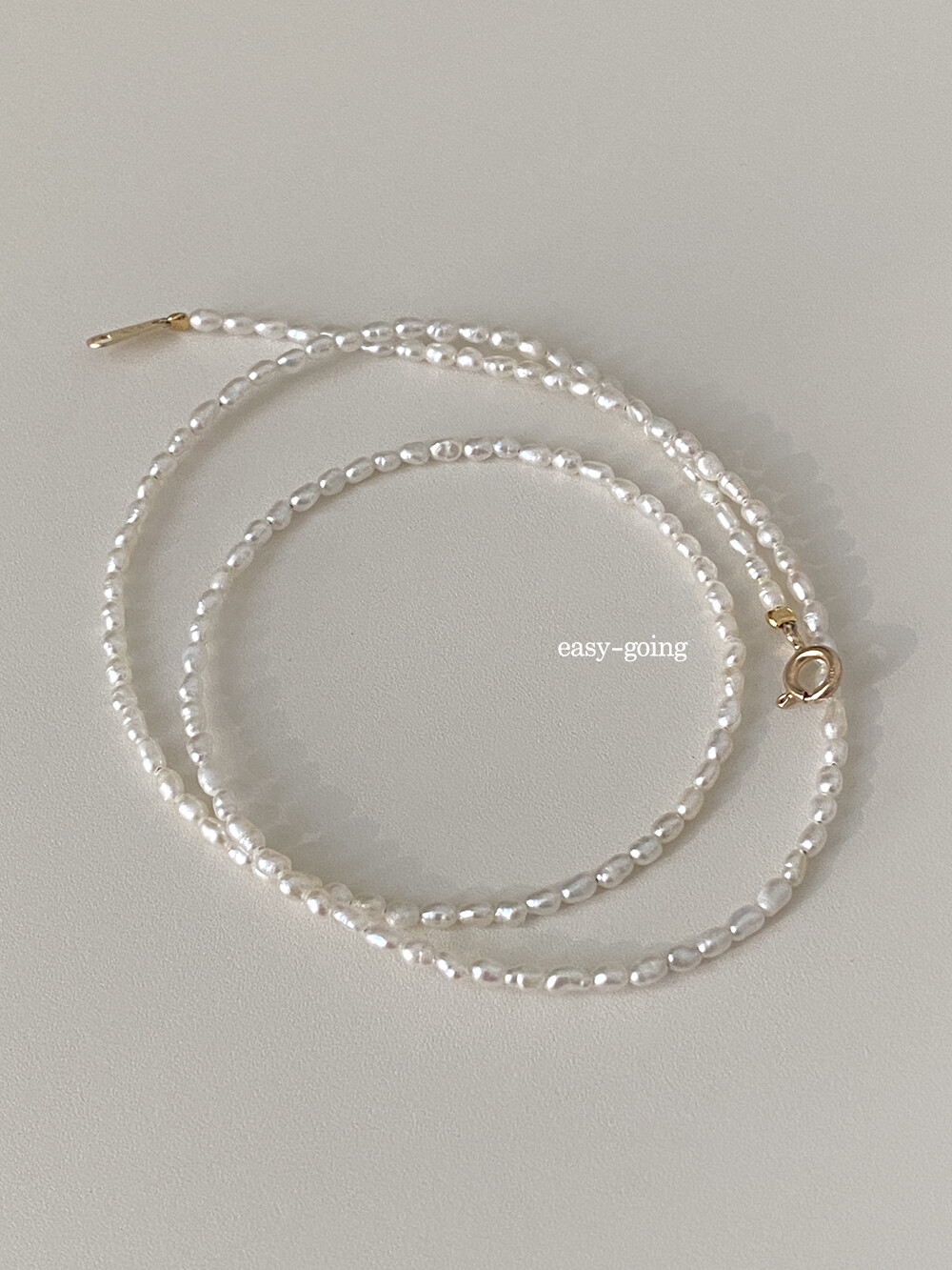 - 2mm사이즈의 밥풀 진주로 엮은 목걸이입니다. 아주 얇고 가볍게 착용하기 좋은 실용적인 제품이에요