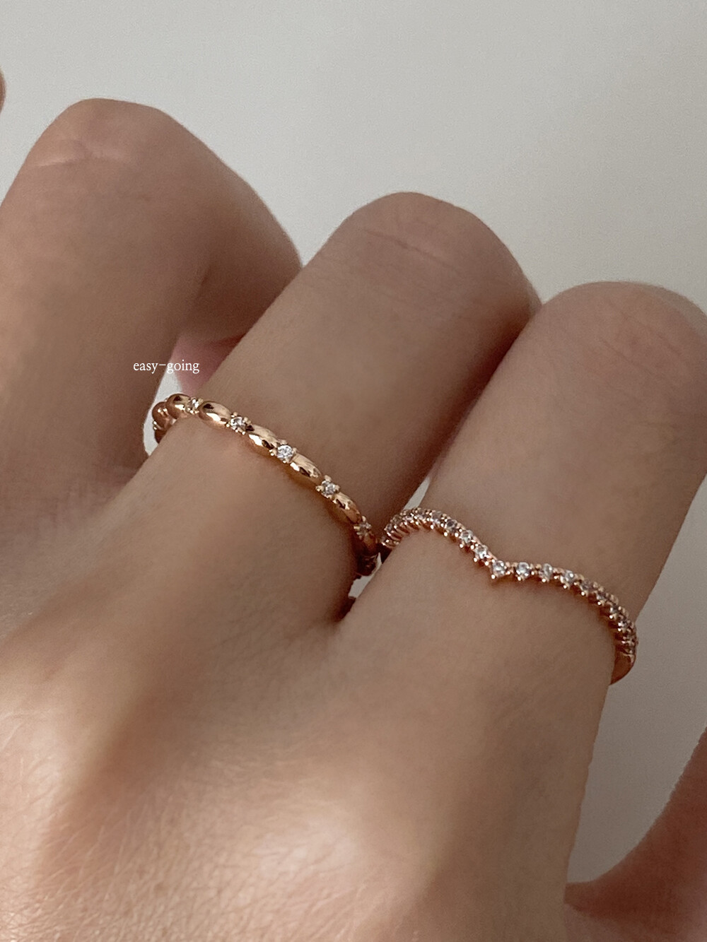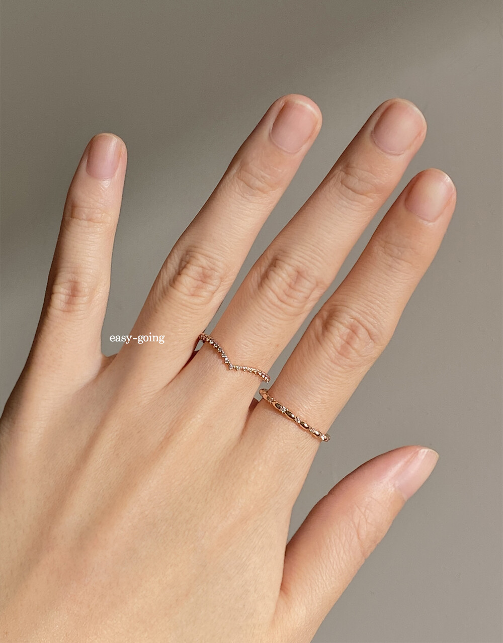 - 가볍고 편안한 착용감으로 데일리 반지로도 추천드리고, 다른 제품들과 두루두루 레이어드하기도 좋은 실용적입니다.