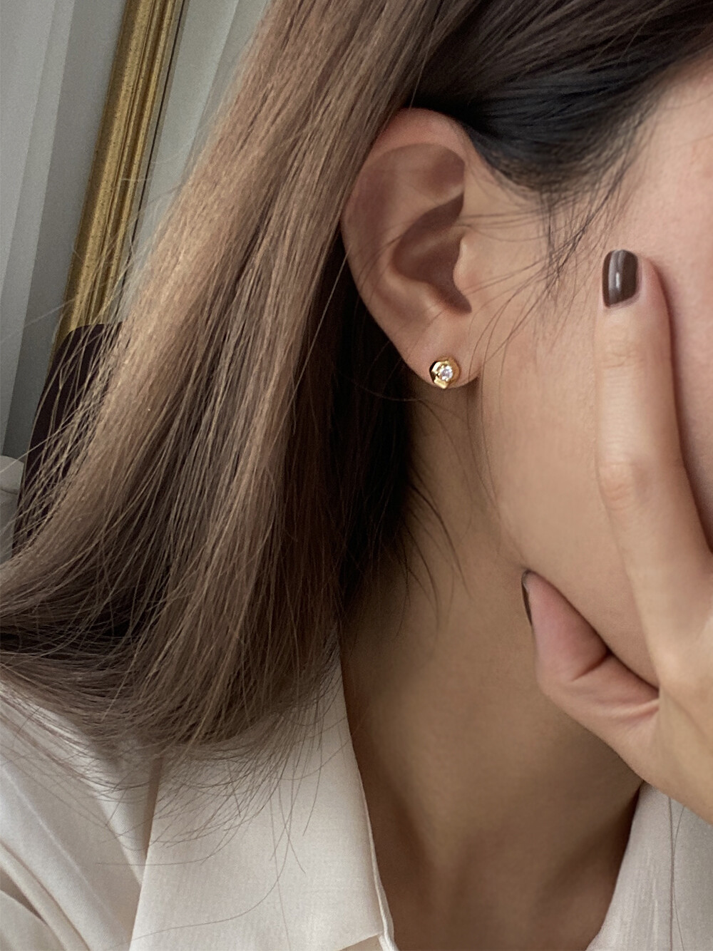 제품 공정상 어쩔 수 없는 부분 (미세한 스크레치와 얼룩, 925silver와 14k 제품의 살짝 휘어진 침, 담수 진주의 스크레치와 형태차이 등등 )에 의한 교환/반품은 불가함.
