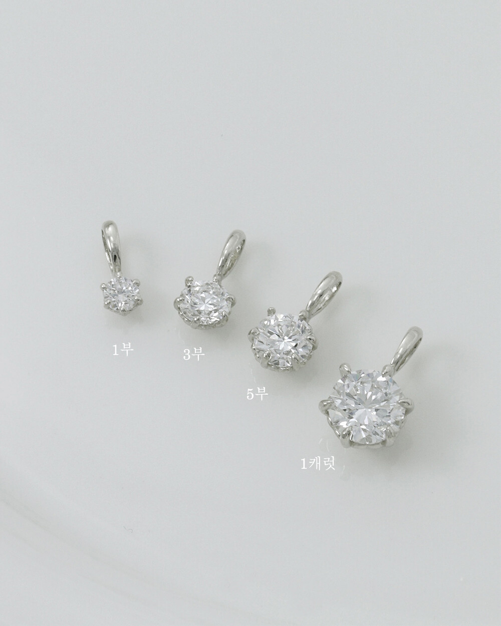 - 1부(~3mm), 3부(~4.5mm), 5부(~5mm), 1캐럿(~6.5mm) 사이즈로 다양하게 소장하실 수 있답니다 튼튼한 6프롱 물림으로 깔끔하게 착용하기 좋으실 거예요