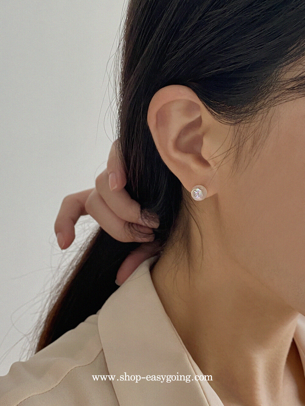 제품 공정상 어쩔 수 없는 부분 (미세한 스크레치와 얼룩, 925silver와 14k 제품의 살짝 휘어진 침, 담수 진주의 스크레치와 형태차이 등등 )에 의한 교환/반품은 불가함.