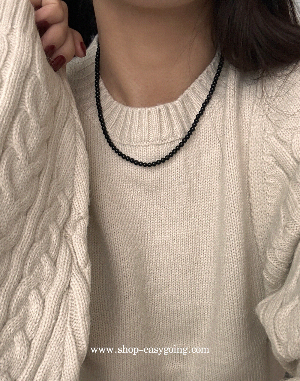 천연석, 진주 : 소재 특성상 미세한 스크래치, 형태의 차이가 있을 수 있습니다. 세척액을 사용하지 마시고(진주:진주전용세척액 제외) 열과 염소성분에 노출되지 않도록 주의해주세요. 직사광선에 오랜시간 노출되면 손상될 수 있습니다 (사우나, 샤워시 절대 착용하지 마시고 제품 착용 후에는 마른 천으로 닦아 보관해주세요) / 진주 비드, 원석 비드 목걸이 중 와이어로 제작한 제품들의 와이어 마감 부속품은 14k gold 가 아닙니다.(공장에 따라 9k, 혹은 신주에 도금 / SR잠금+에이바+오링 = 14k gold)