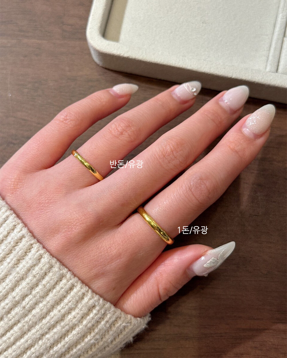 - 1돈 중량으로 제작되는 순금반지예요 정해진 중량으로 제작하기 때문에 사이즈에 따라 두께 차이가 발생할 수 있습니다