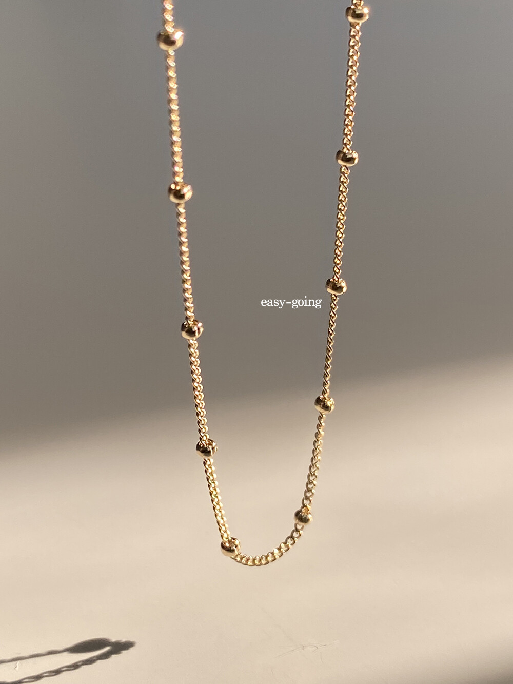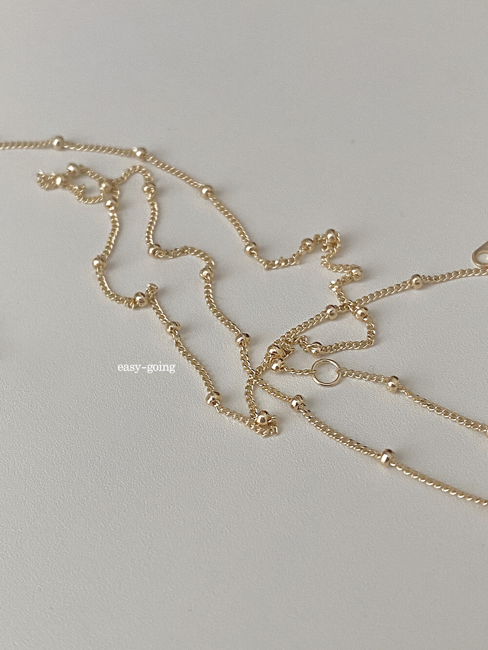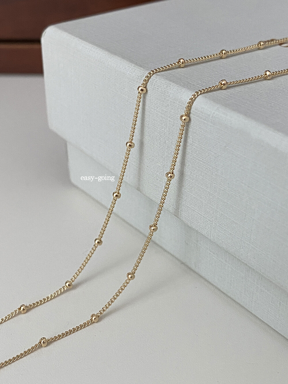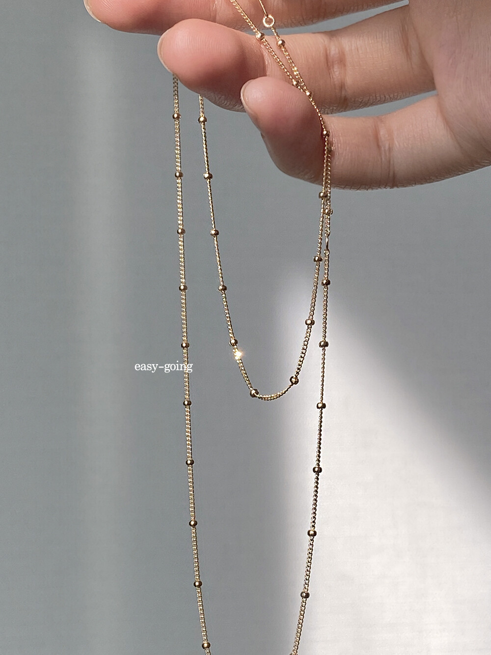 - 활용도 높은 에센셜한 5푼 목걸이 체인입니다. 약 1.8mm 정도의 작은 볼이 들어가 은은한 포인트가 되어 주었어요